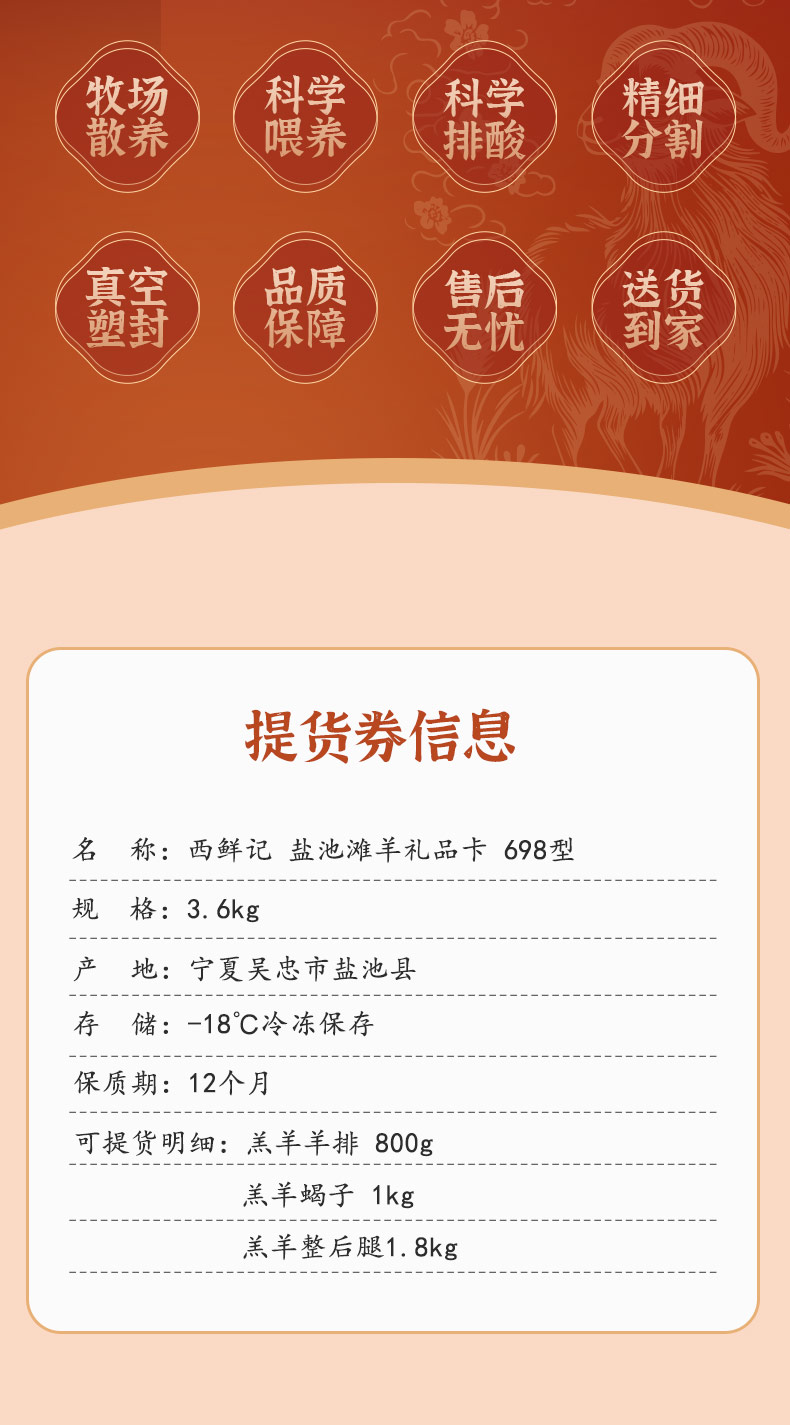 西鲜记 盐池滩羊 礼品卡698型 节日送礼 在线提货