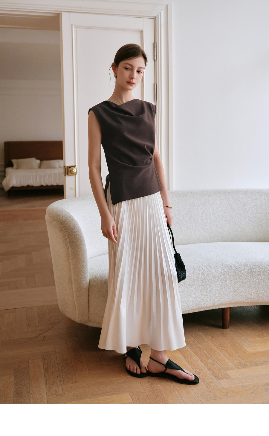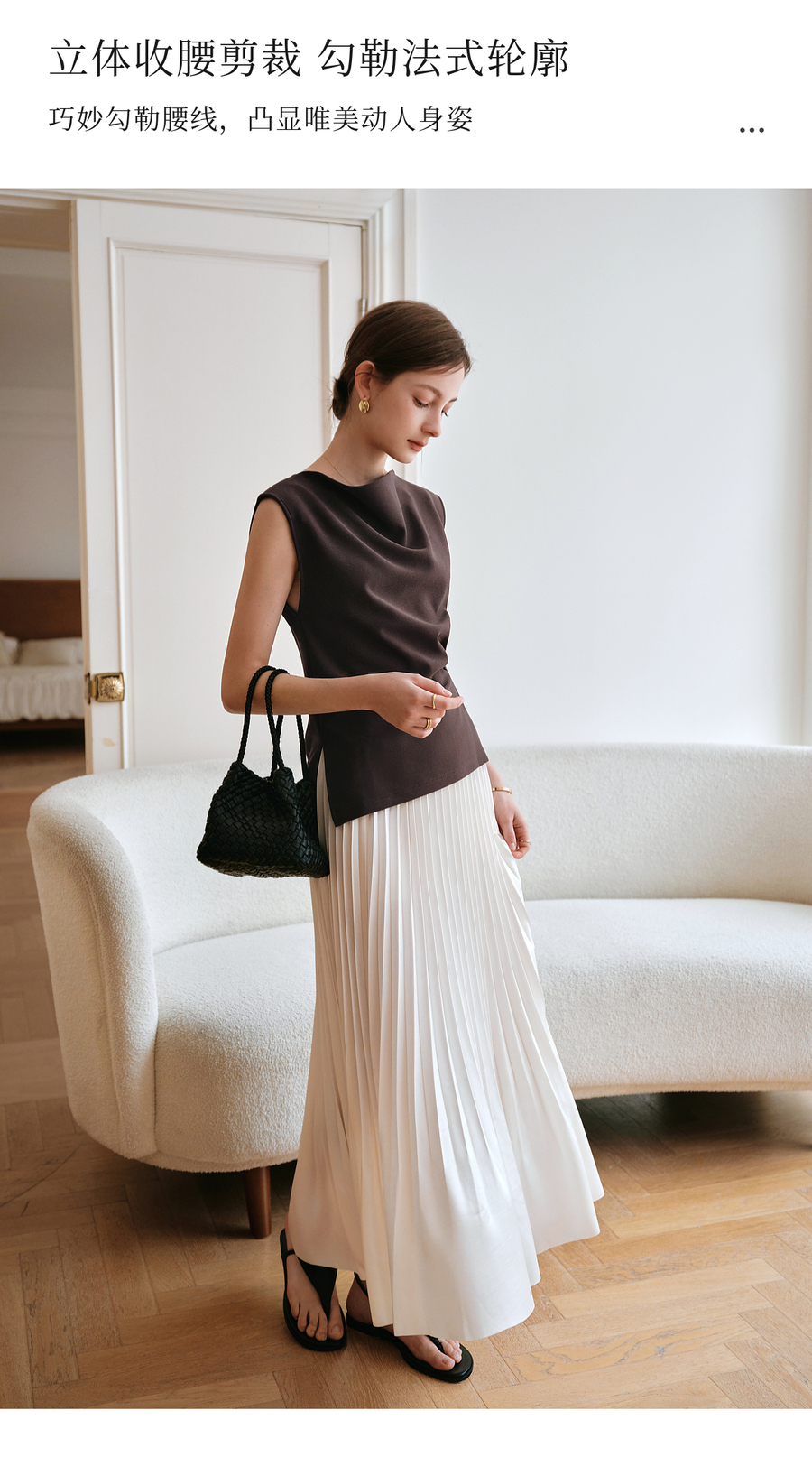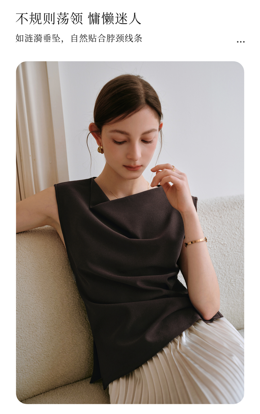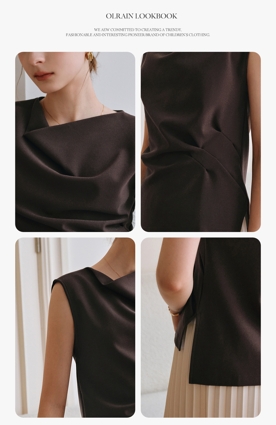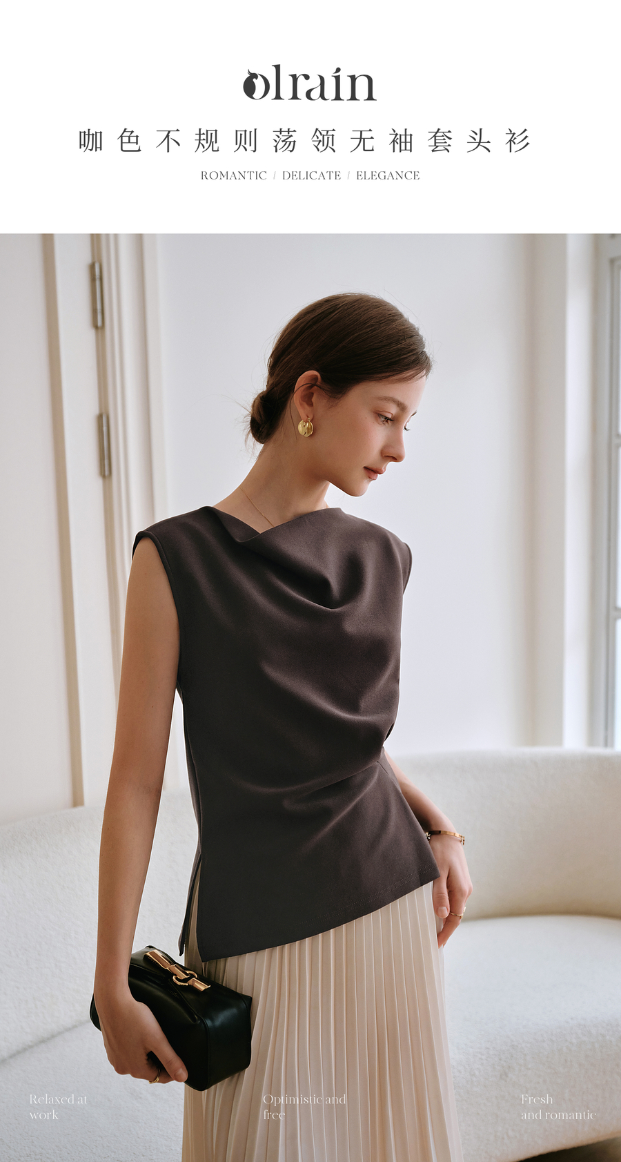 OLrain欧芮儿咖色不规则荡领无袖套头衫女夏季2025新款高级感上衣
