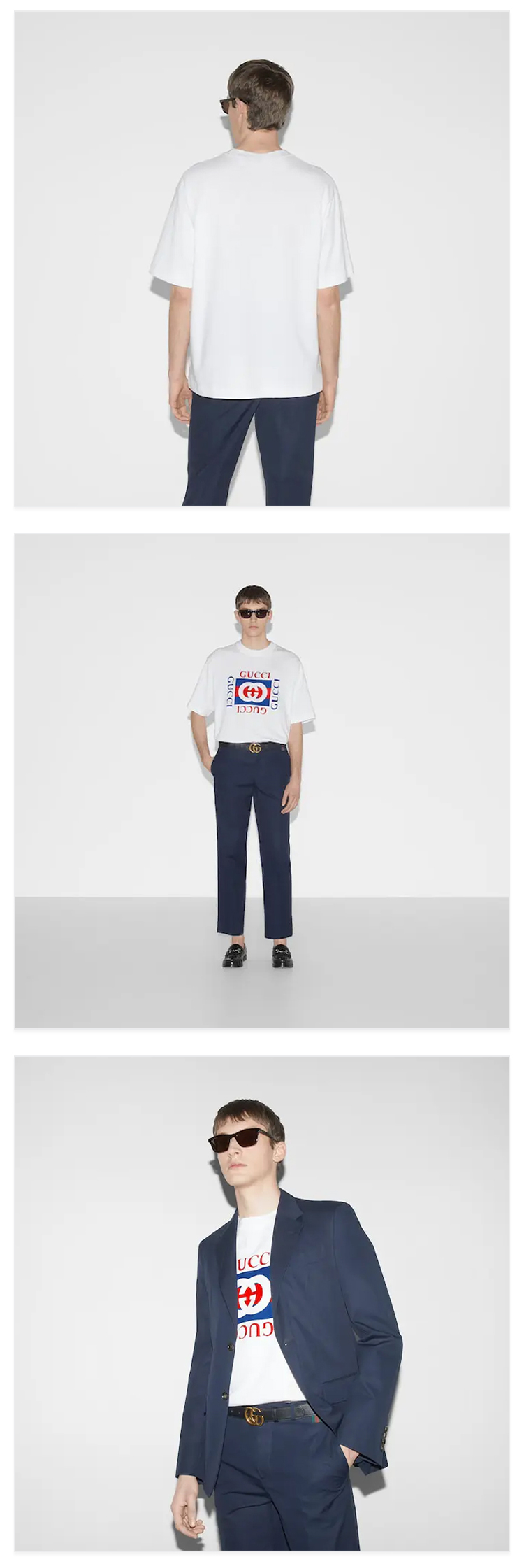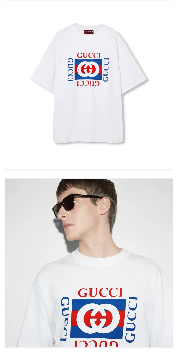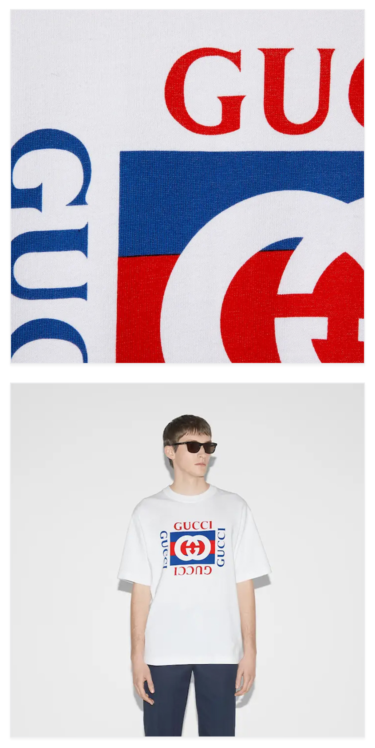 GUCCI 古驰 男士字母徽标印花针织棉质圆领短袖T恤 白色 784361 XJGKA 9074