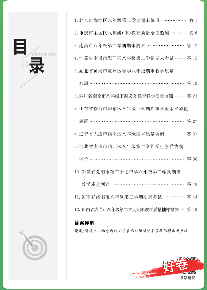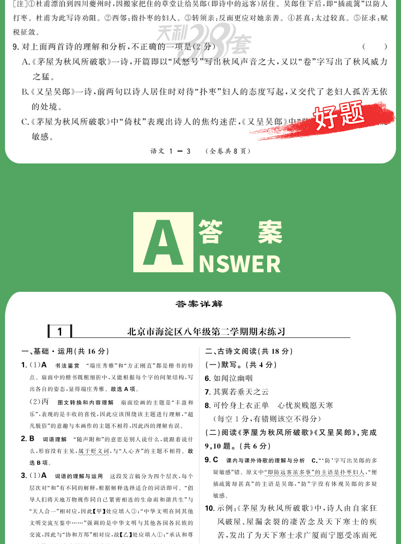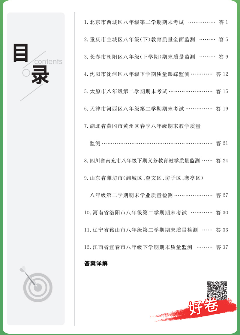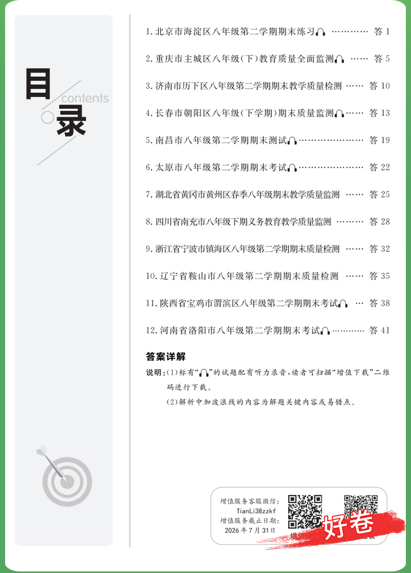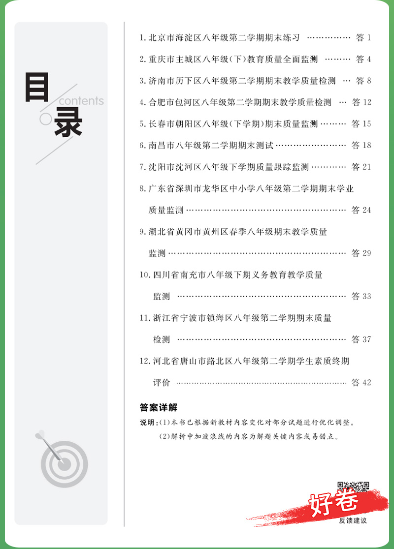 天利38套 2024初中期末联考测试卷 人教版 七年级下 八年级下