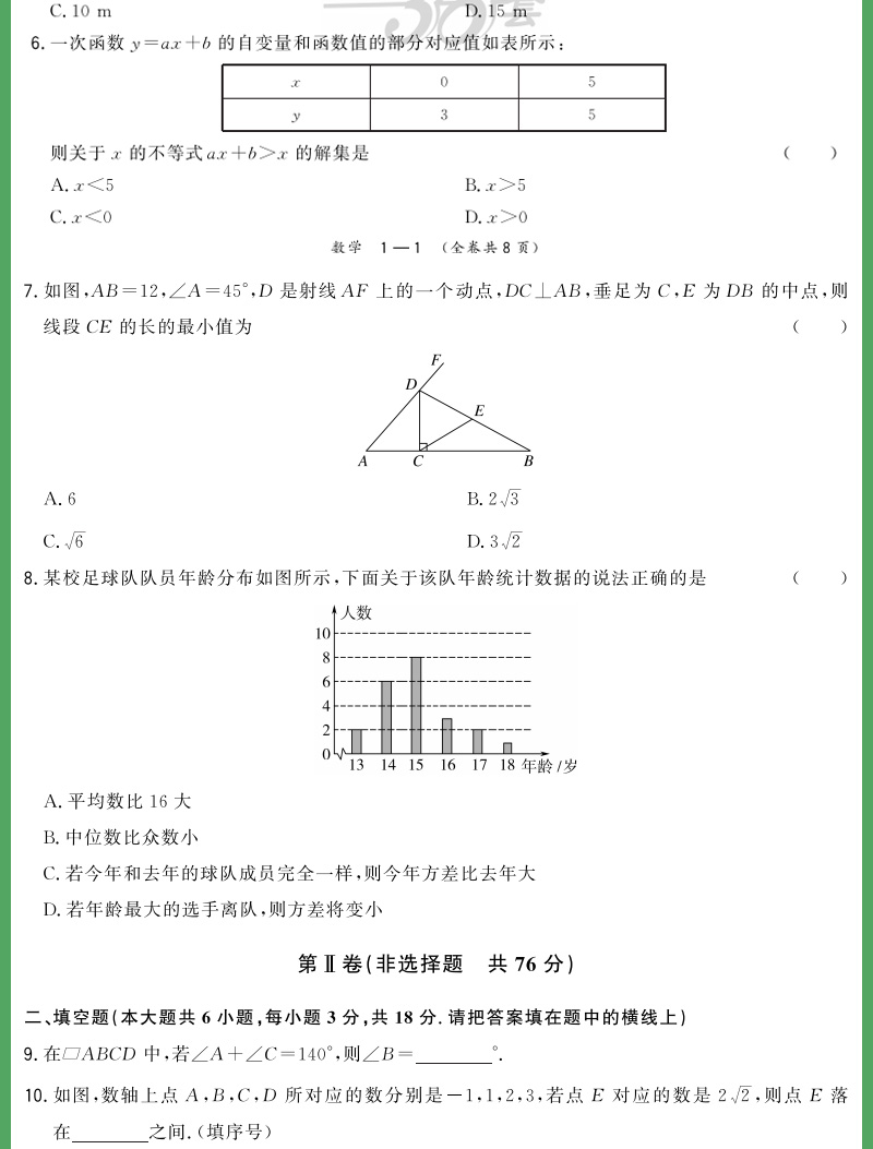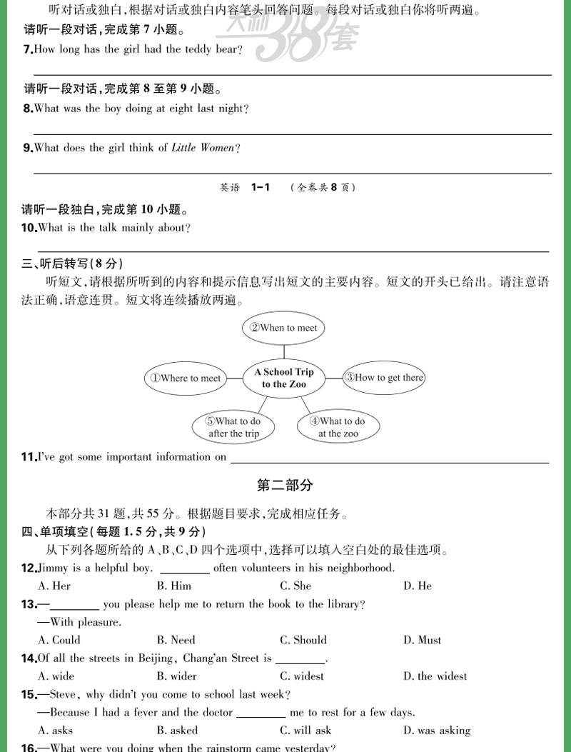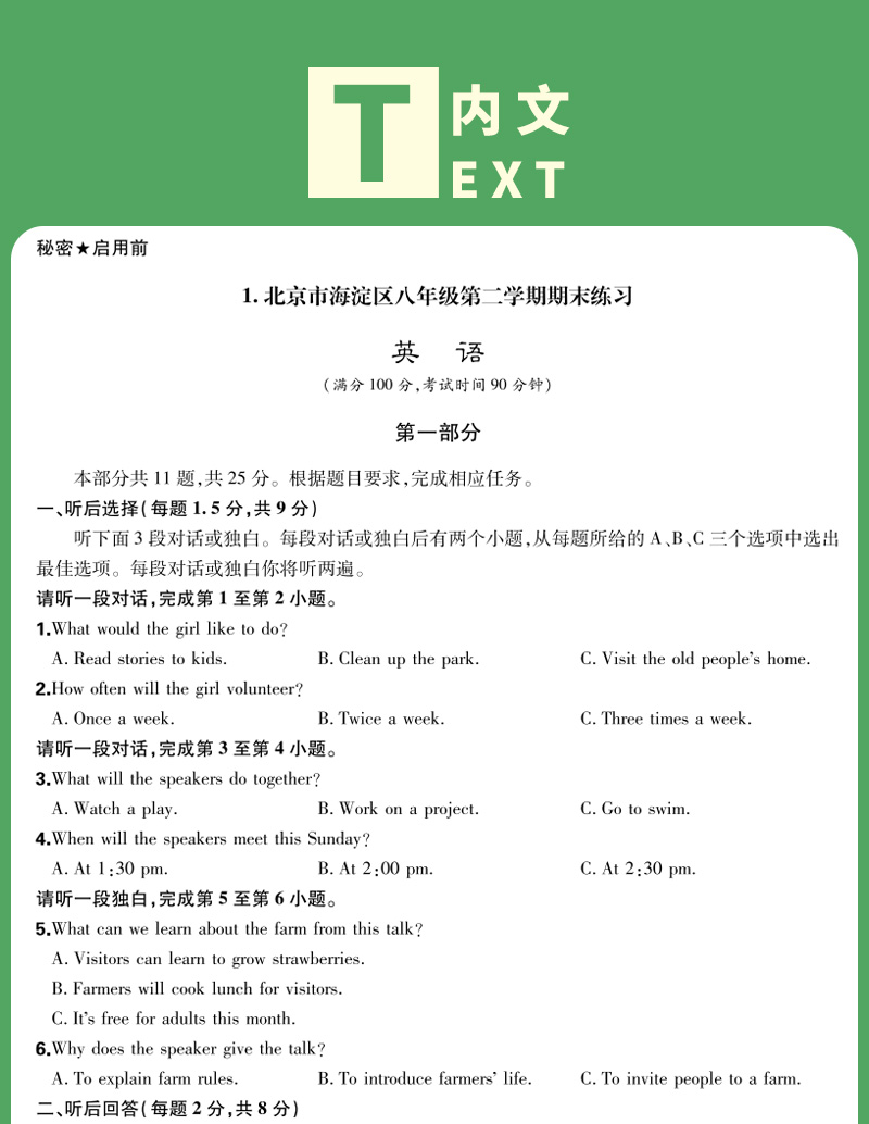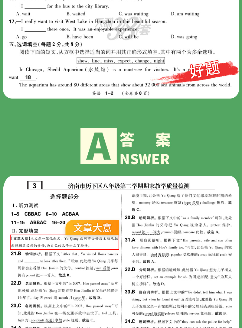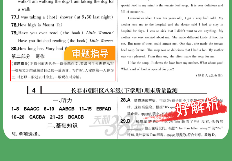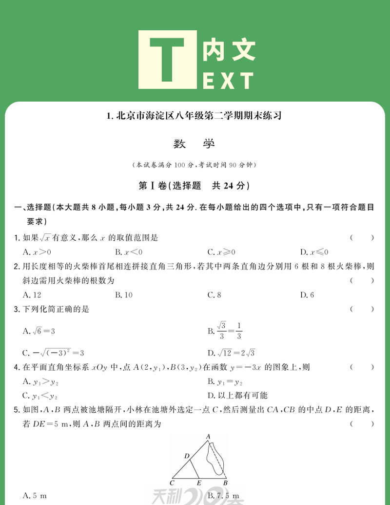 天利38套 2024初中期末联考测试卷 人教版 七年级下 八年级下