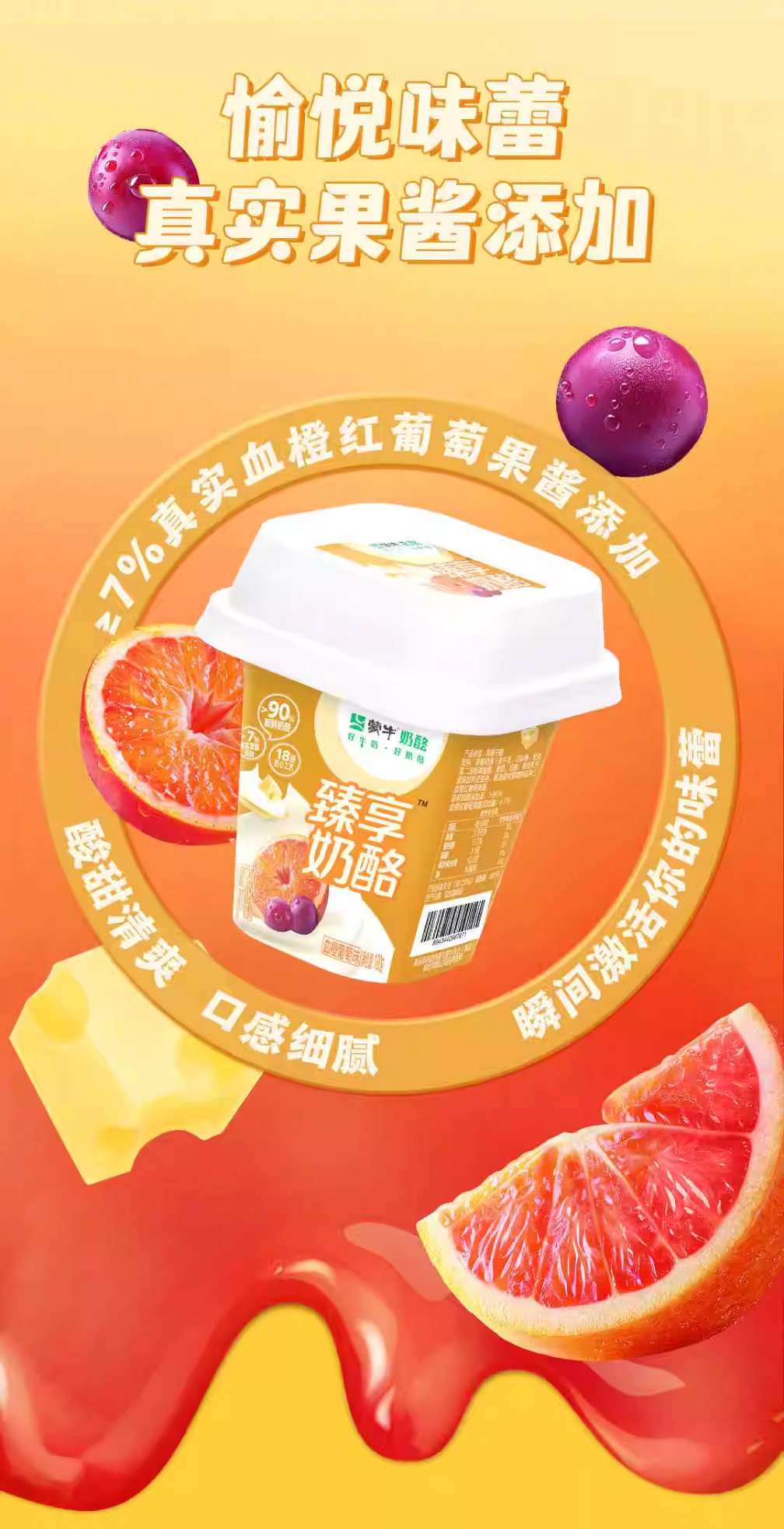 蒙牛新鲜奶酪原味|臻享奶酪血橙葡萄味180g