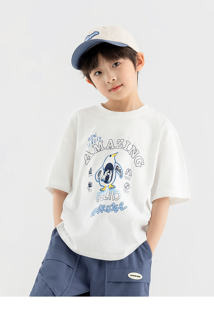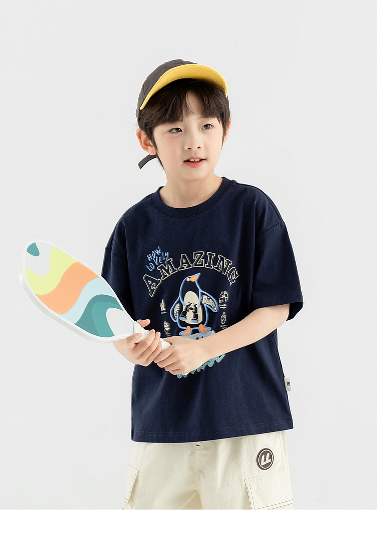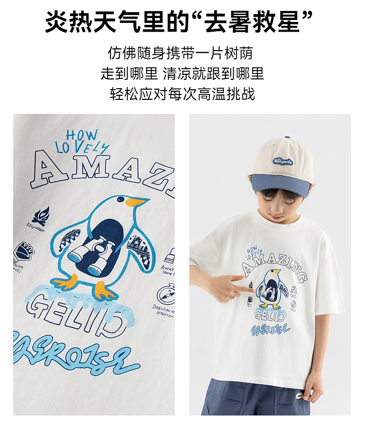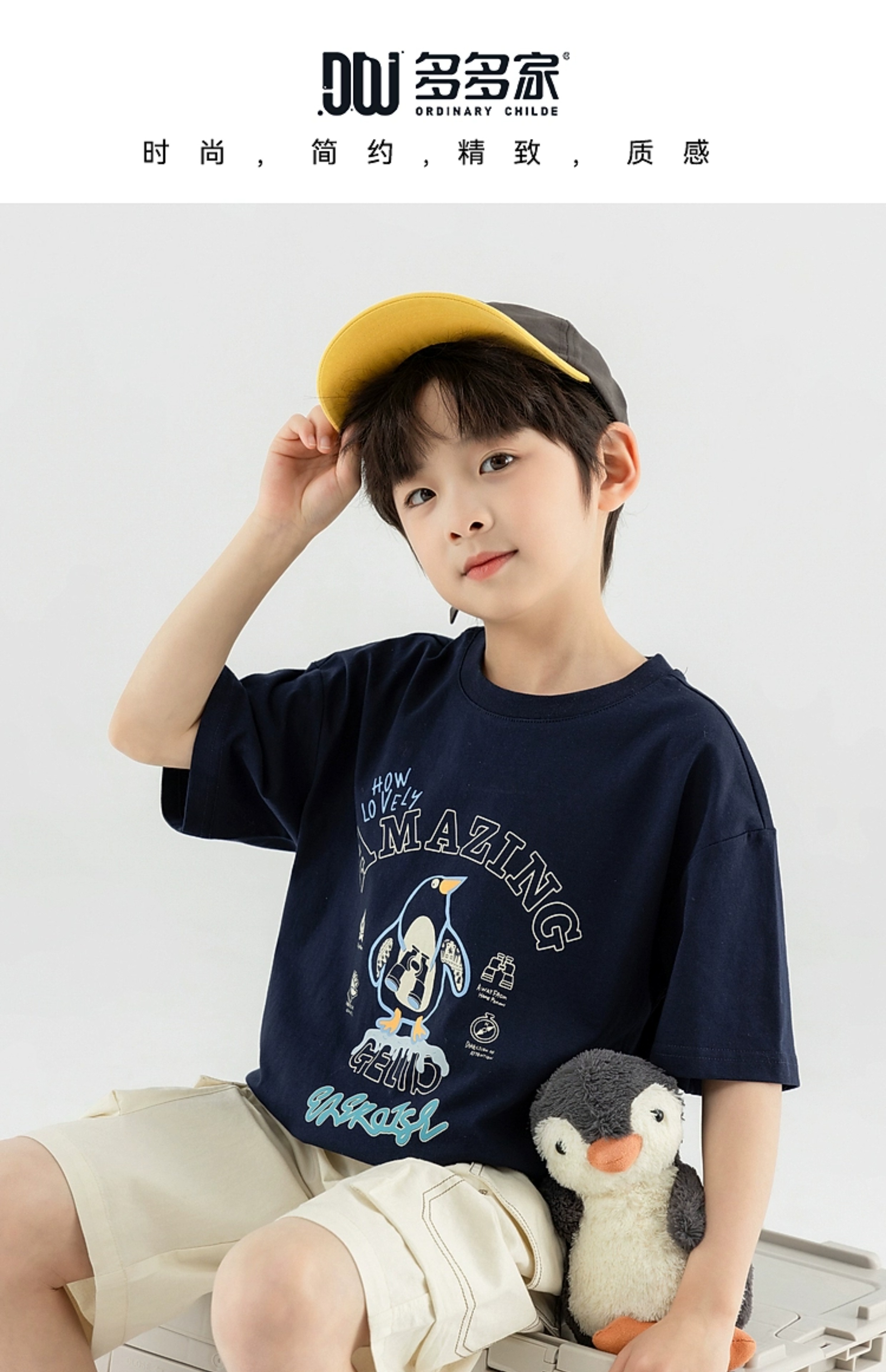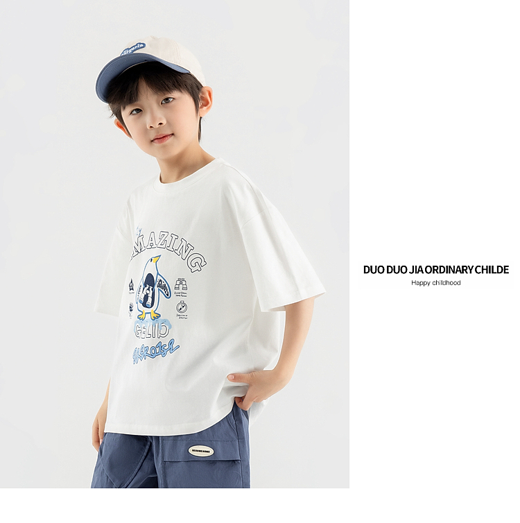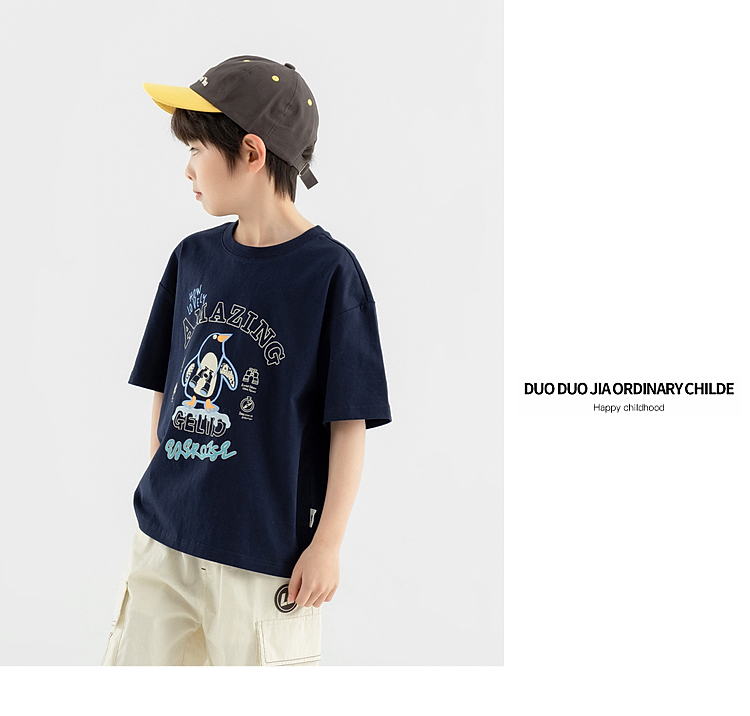 【件件底价~团购24.9元】多多家男童短袖T恤凉感2025新款夏装儿童纯棉半袖中大童企鹅上衣10526