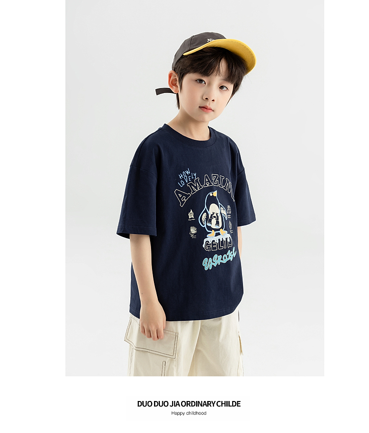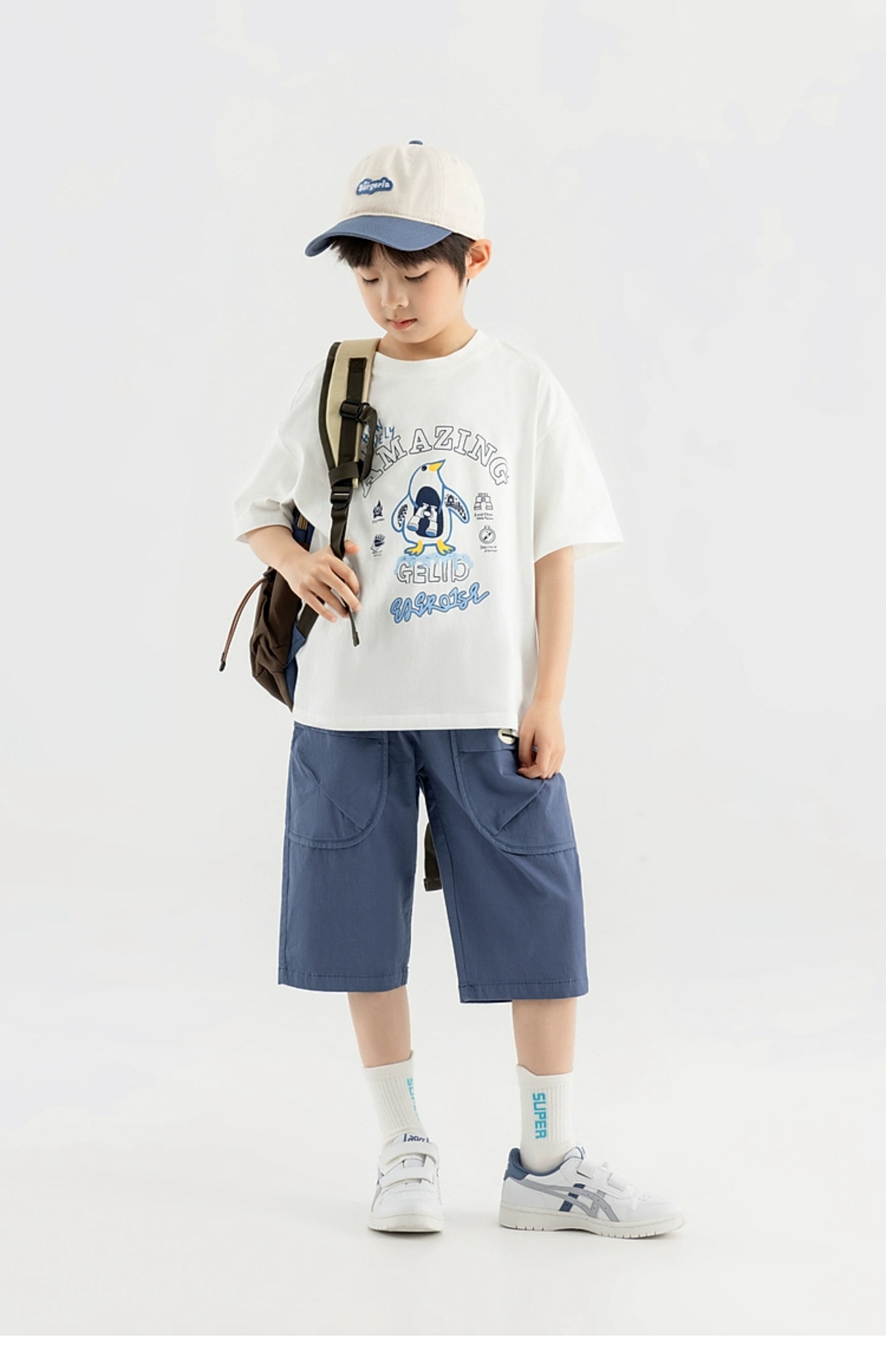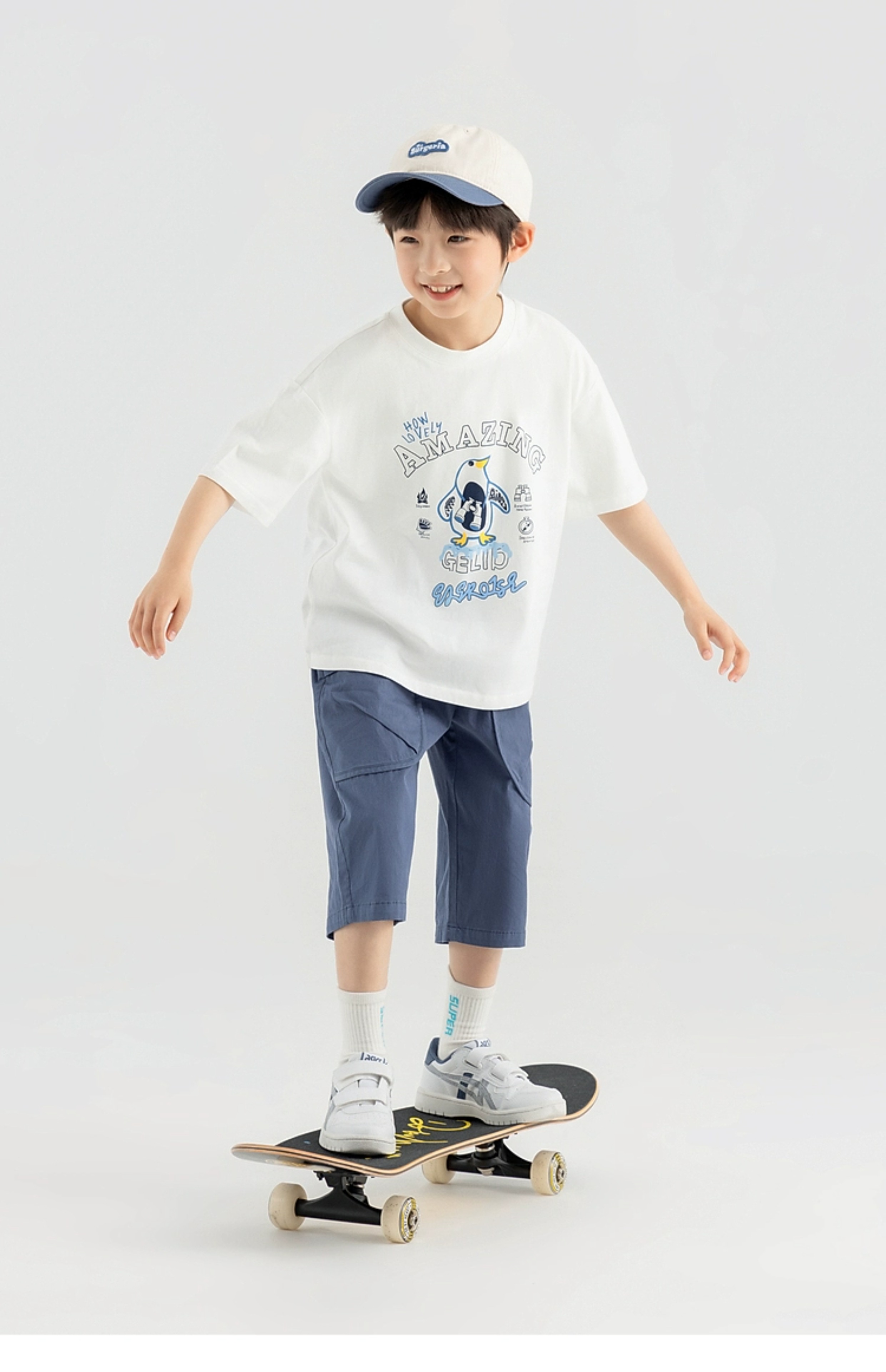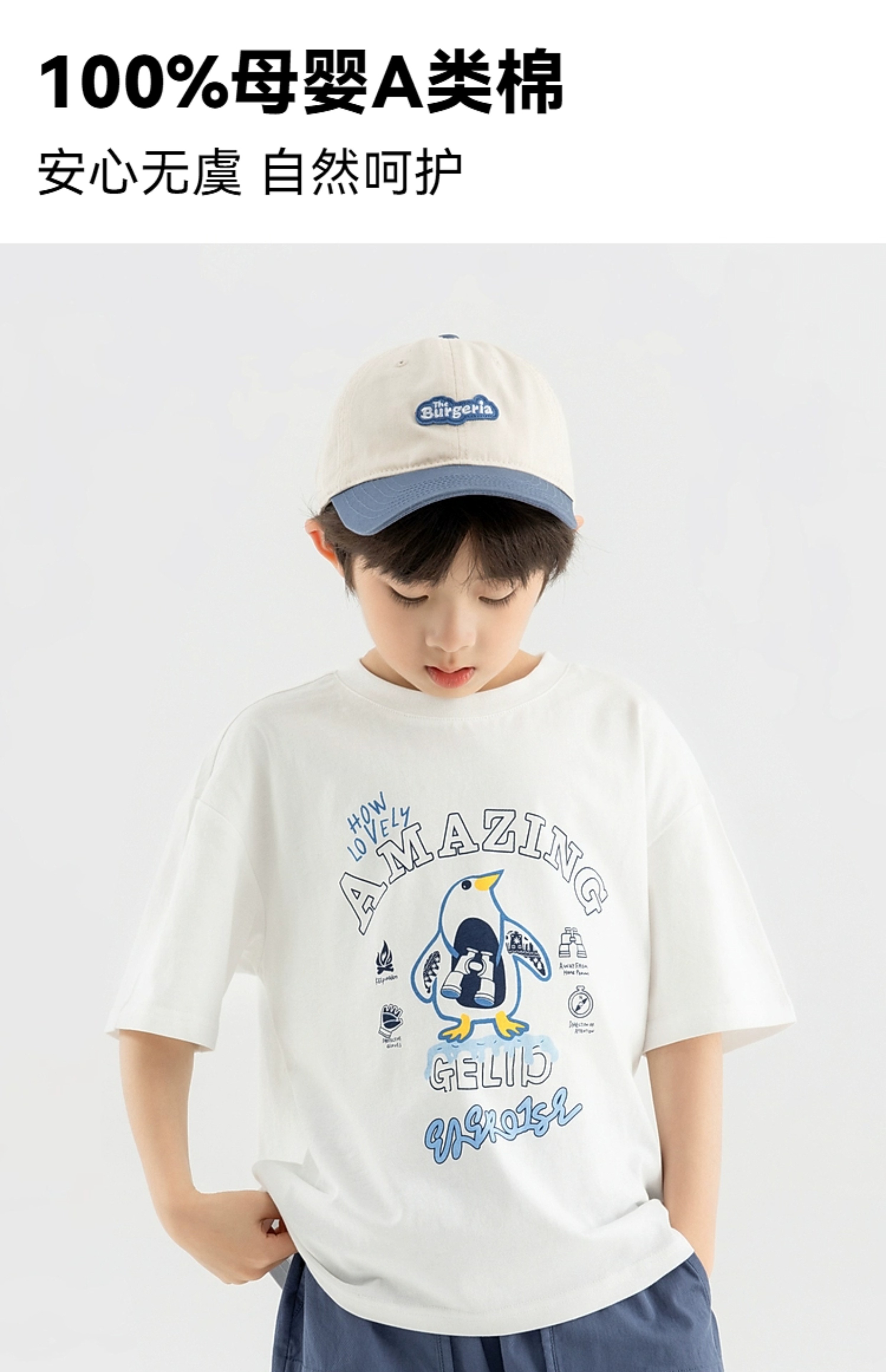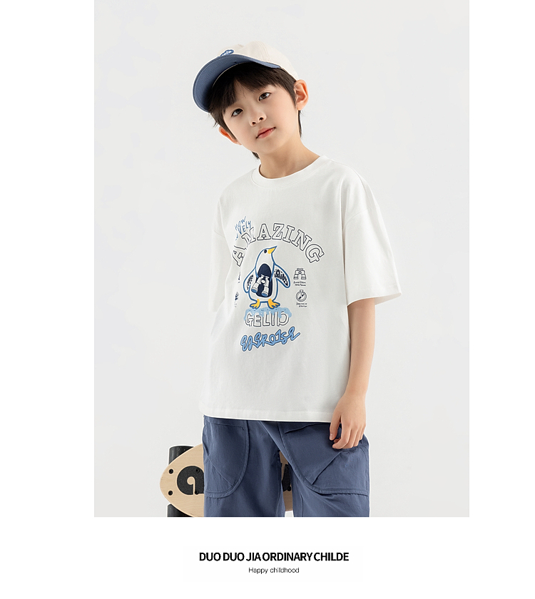 【件件底价~团购24.9元】多多家男童短袖T恤凉感2025新款夏装儿童纯棉半袖中大童企鹅上衣10526