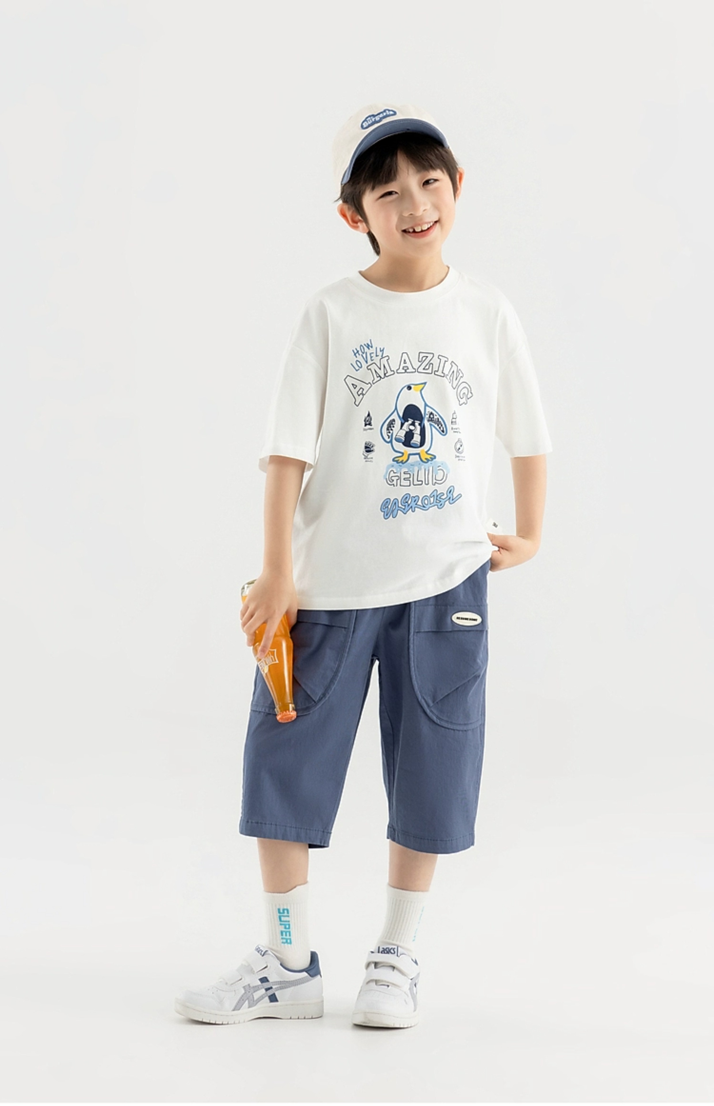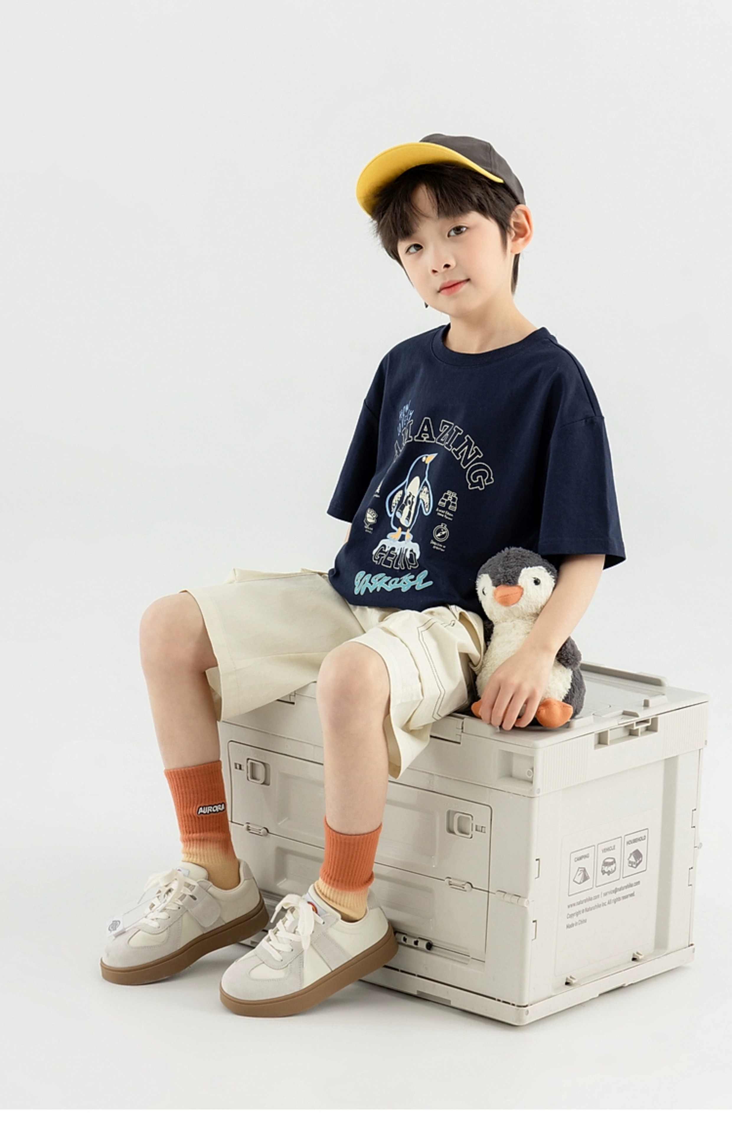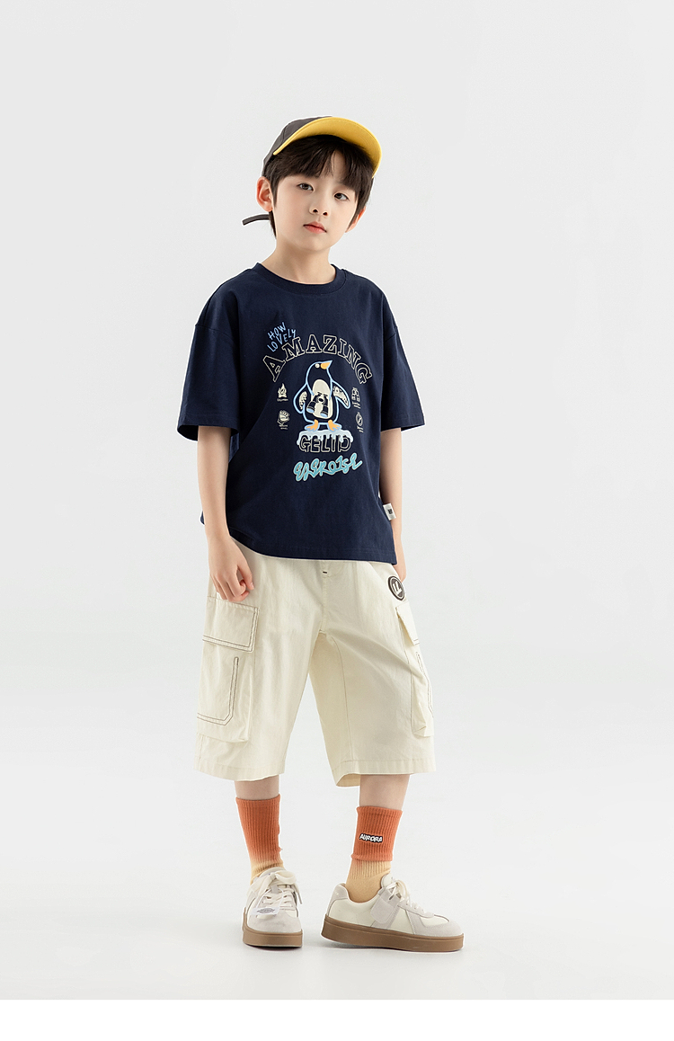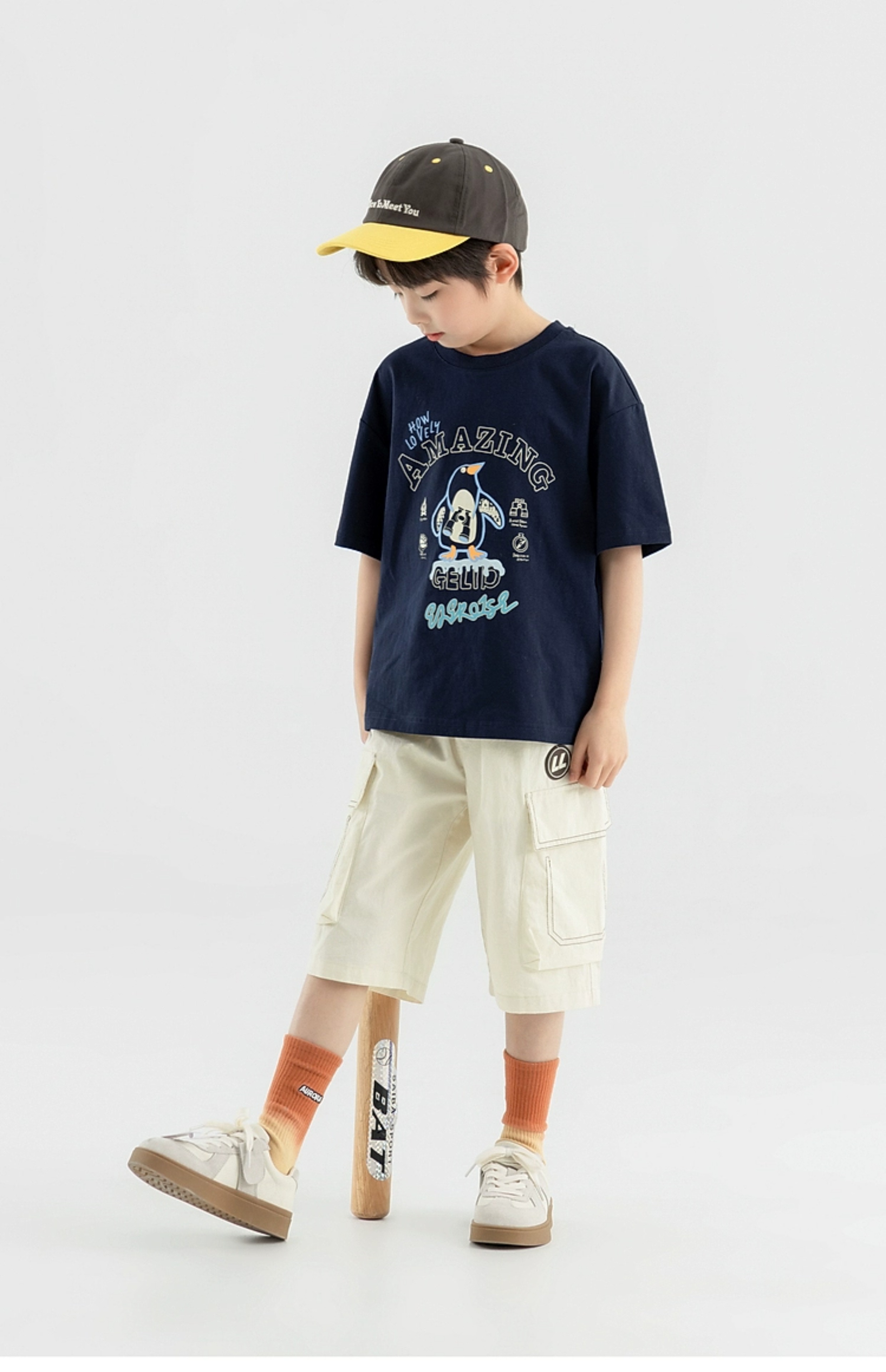 【件件底价~团购24.9元】多多家男童短袖T恤凉感2025新款夏装儿童纯棉半袖中大童企鹅上衣10526