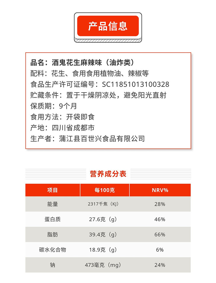 百世兴酒鬼麻辣花生(麻辣味)400g/盒