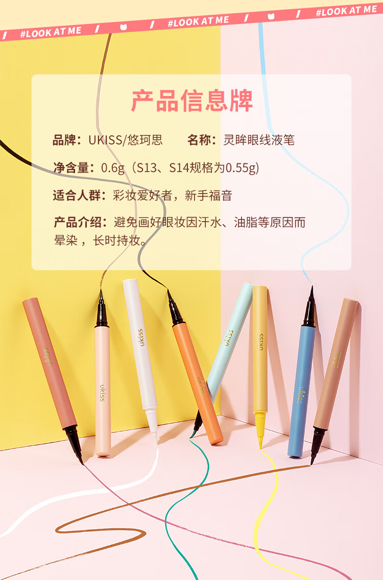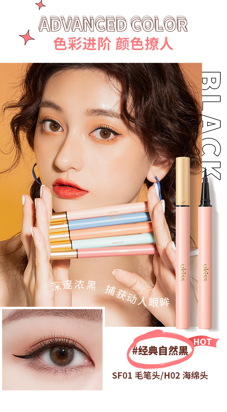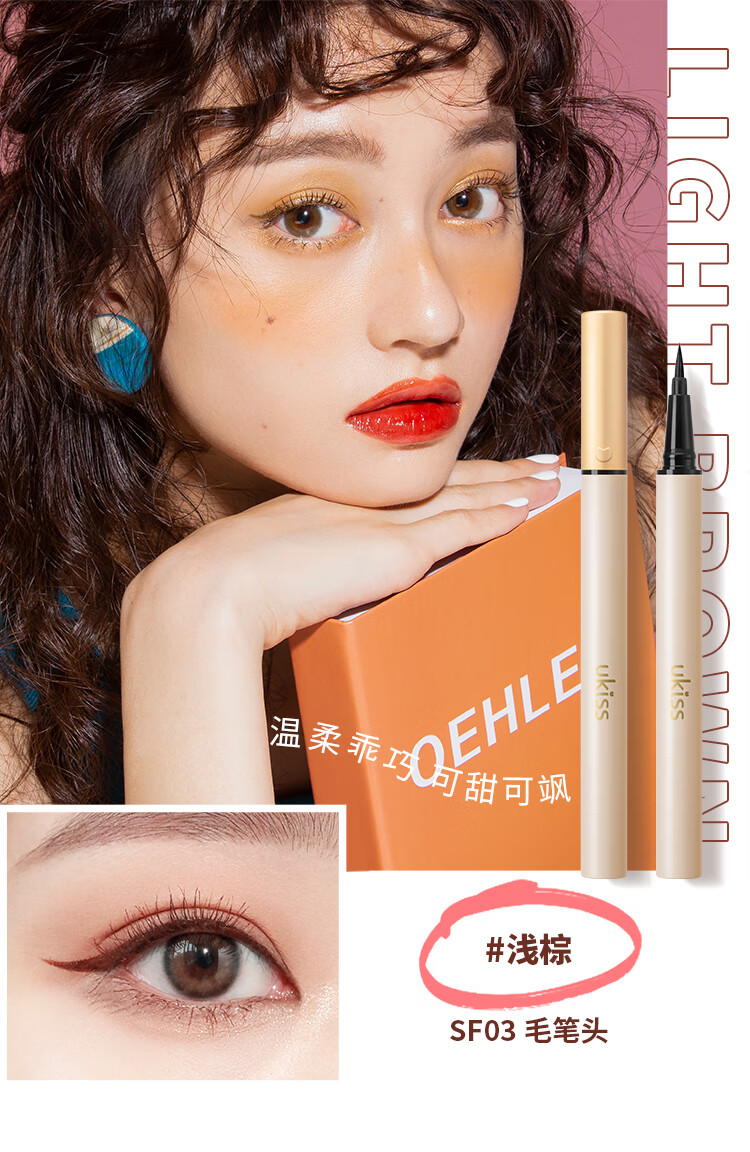 悠珂思(ukiss)灵眸眼线液笔SF12#黑棕软头0.6g 极细顺滑显色防水防汗不晕染