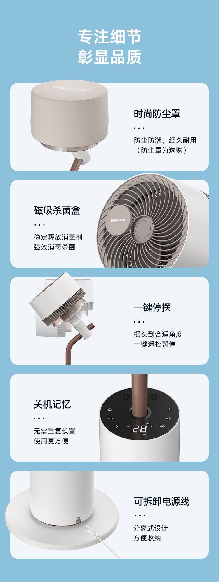 大宇 空气循环扇卧室轻音立式小电风扇摇头落地扇智能语音遥控
