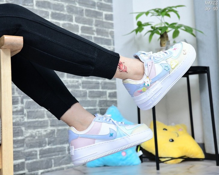 Air Force 1 Shadow 拼接马卡龙 奶油拼色 小菊花侧身 采用叠加的形式呈现,同时后跟也将标志性 “AIR” 字样叠加搭配丰富色彩仙女配色推荐上脚 年初最火爆系列款式