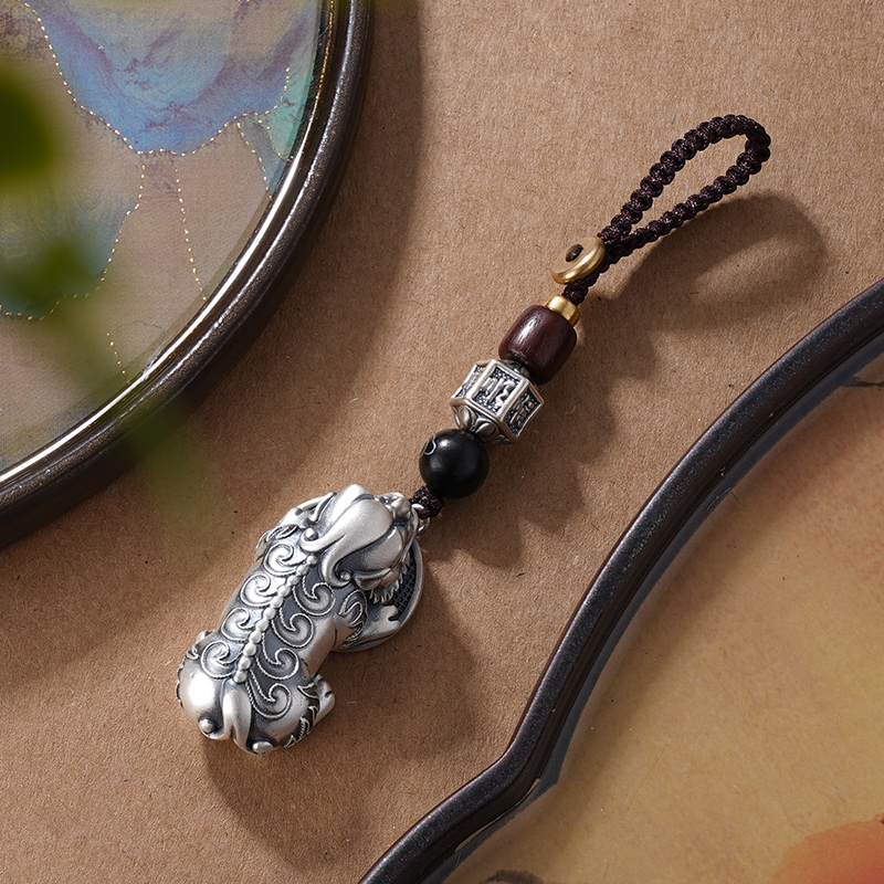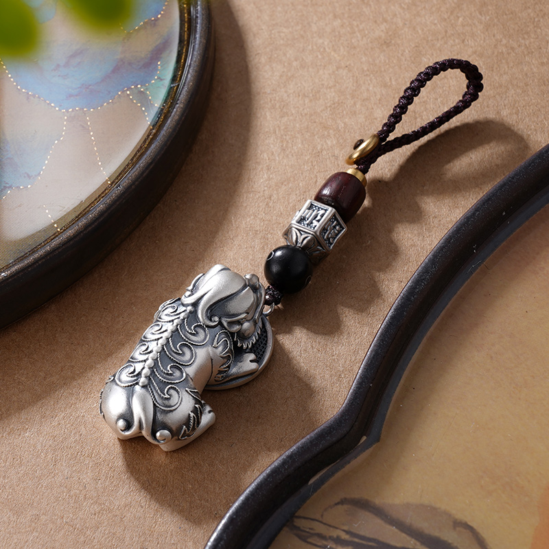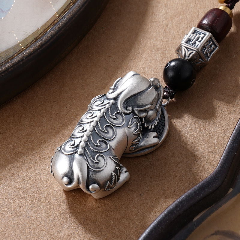 【寓意】:作品灵感源自貔貅,足银材质,饱满立体。貔貅匍匐于铜钱之上,兼具设计感的同时,寓意招财进宝,吉祥守护。