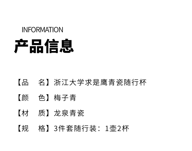 【浙大文创】浙江大学求是鹰青瓷随行杯(一壶两杯)