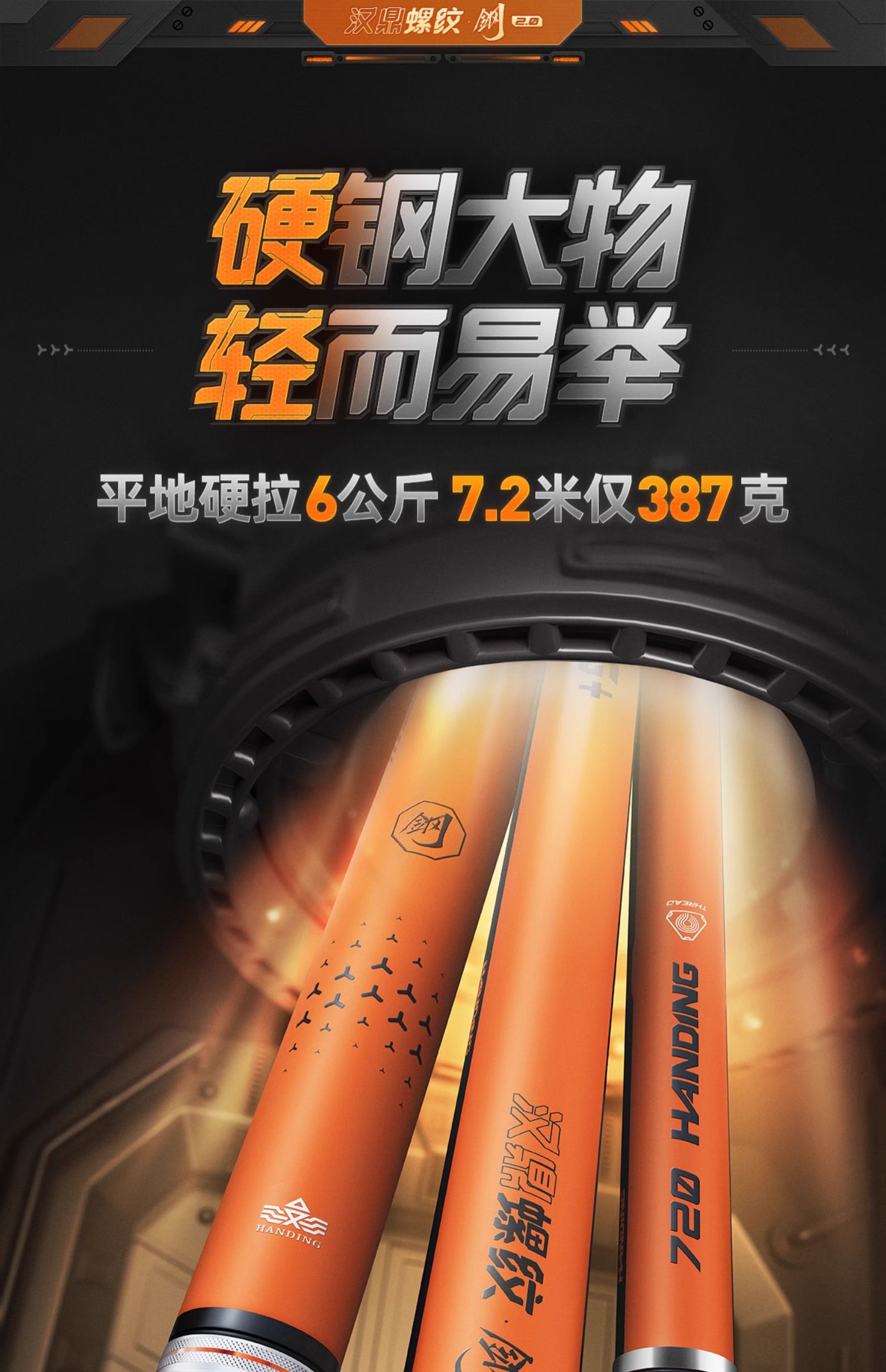 汉鼎鱼竿手竿超硬大物竿青鲟巨物杆鱼杆台钓竿碳素手杆螺纹钢二代