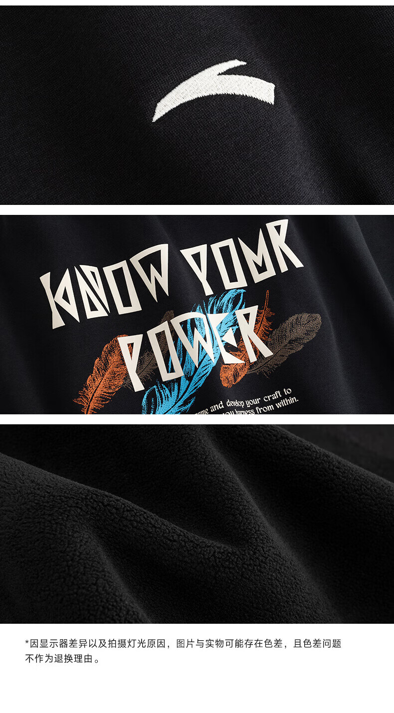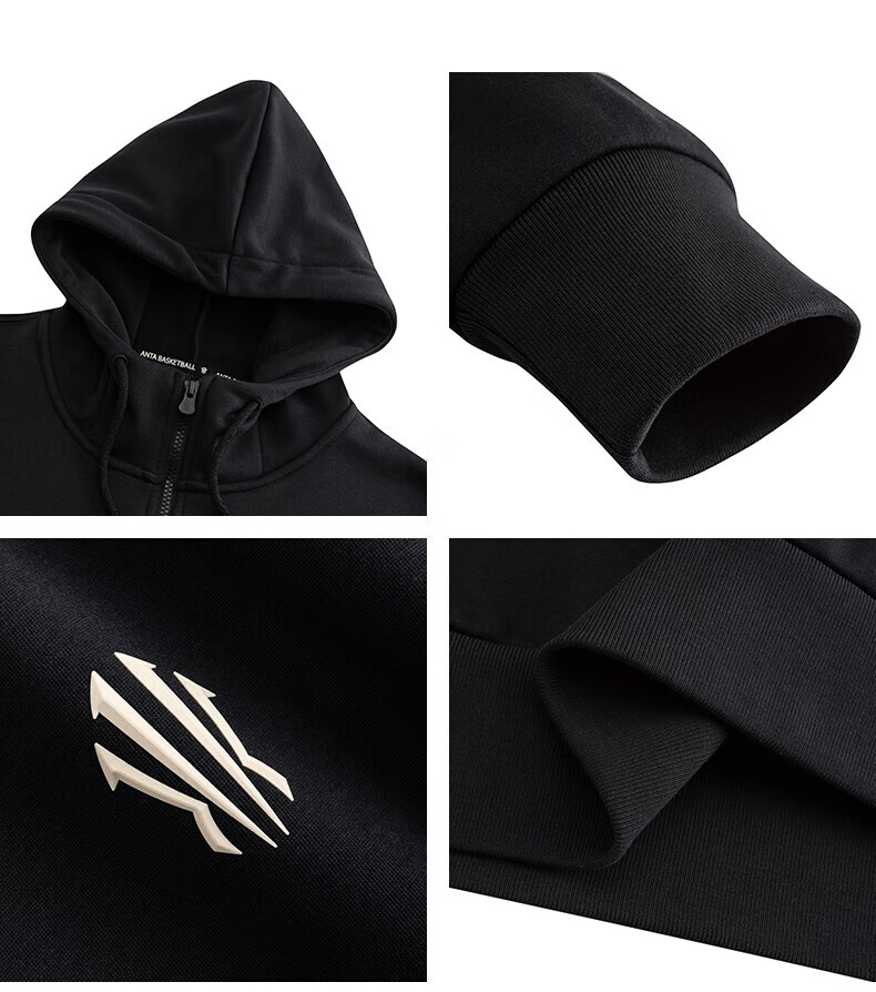 安踏凯里·欧文系列丨美式连帽卫衣男子加绒纯棉套头衫172541708N 基础黑-3