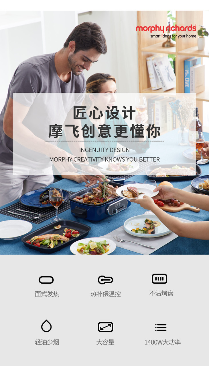 英国摩飞多功能锅烧烤炉火锅料理锅电烤炉家用网红一体电烤锅魔飞MR9088