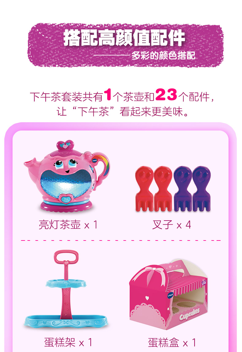 3岁+ | VTech伟易达 下午茶套装儿童玩具女孩迷你厨房益智过家家反震玩 36个月+