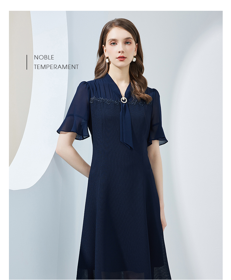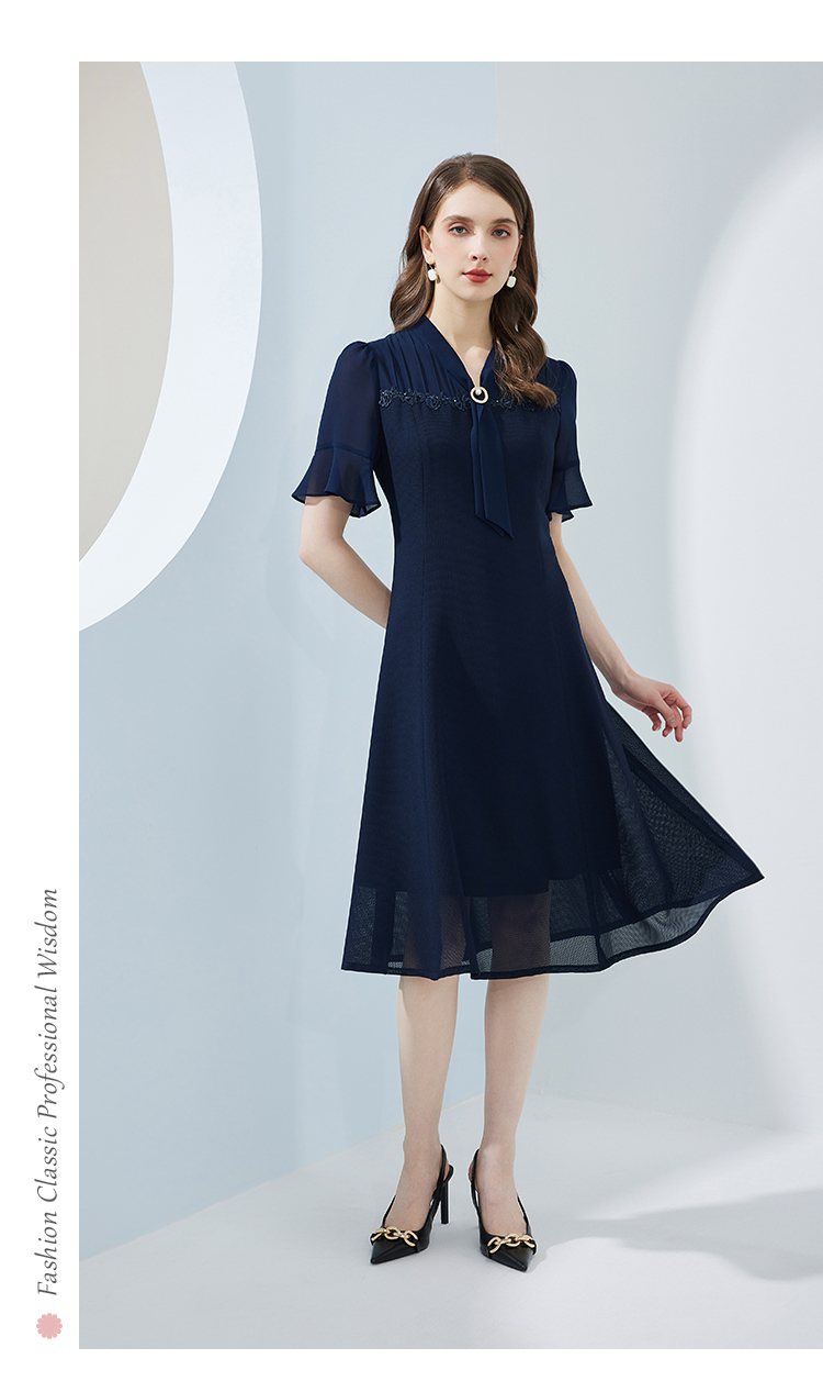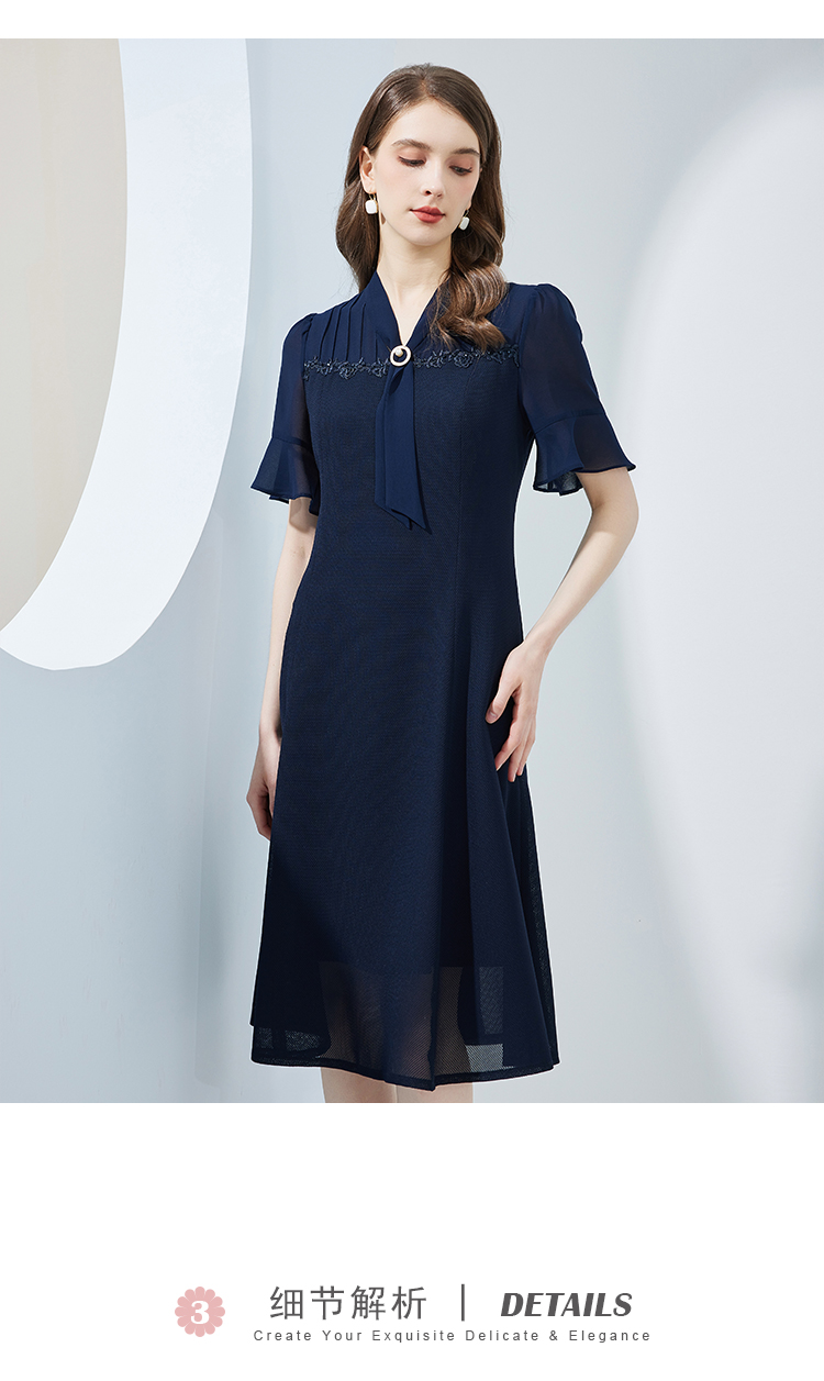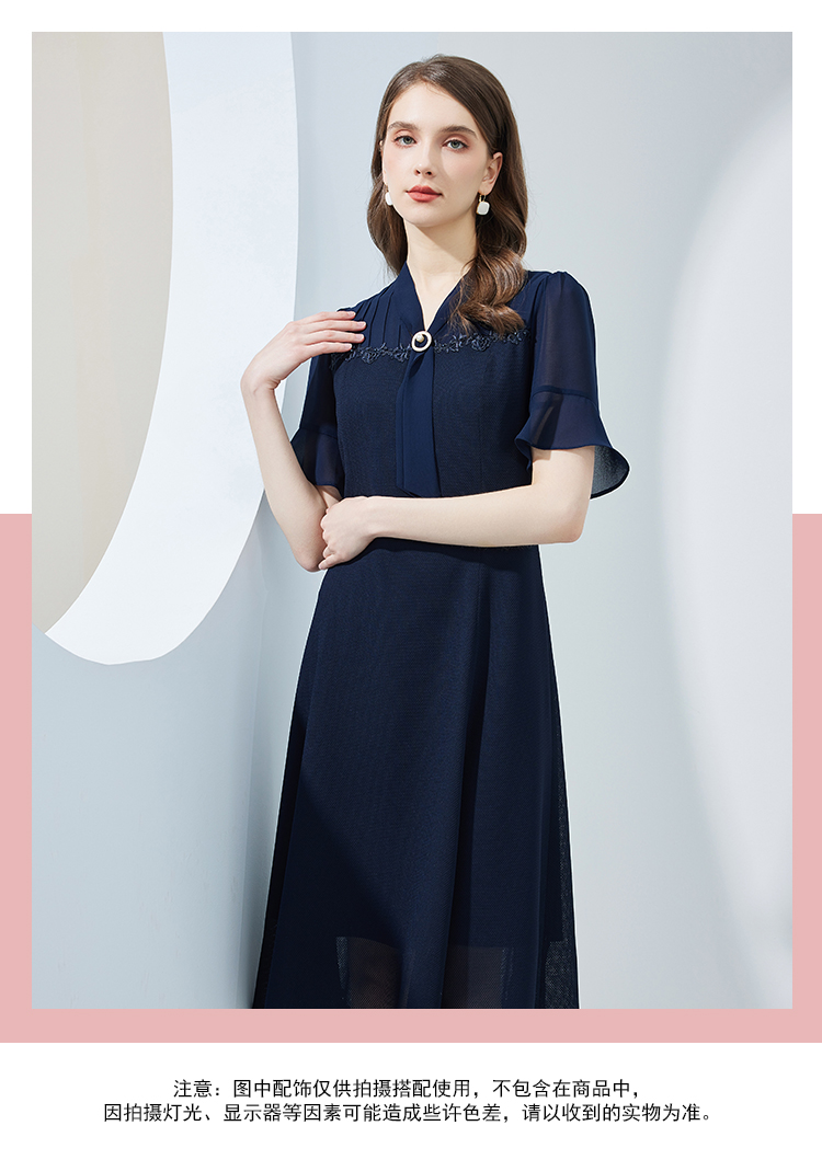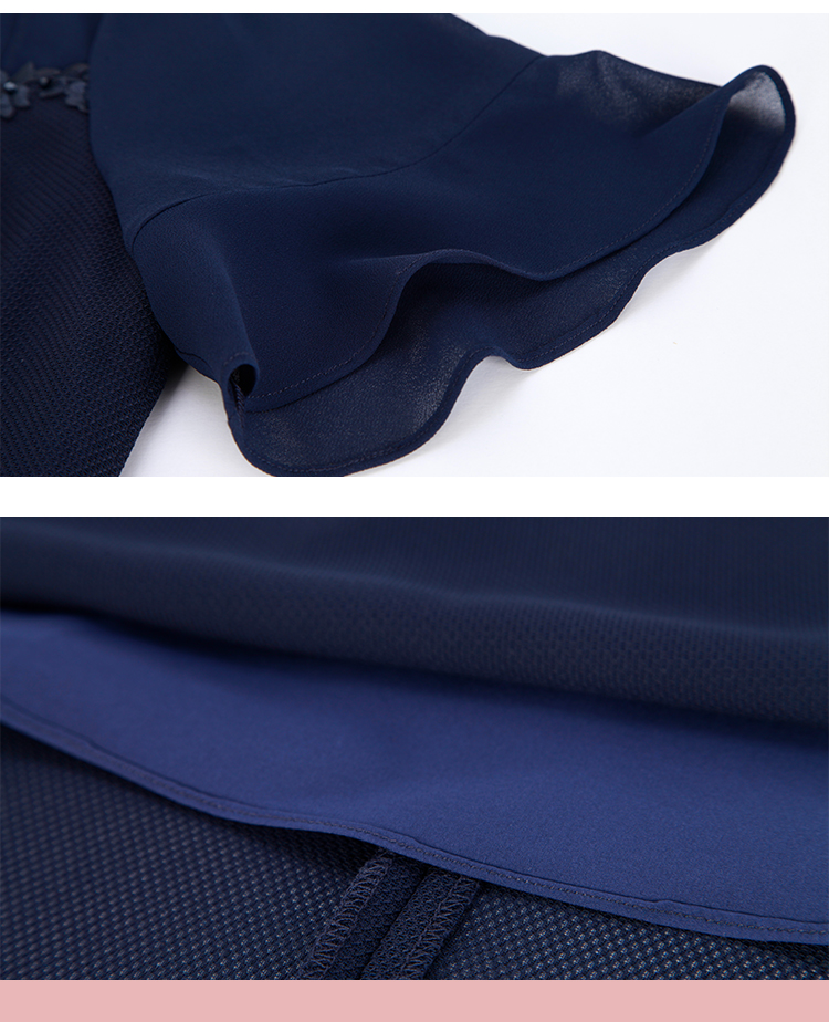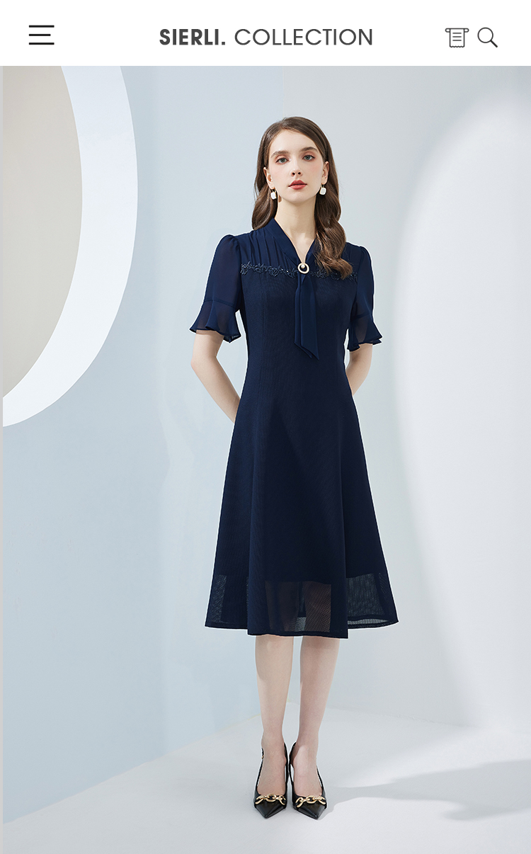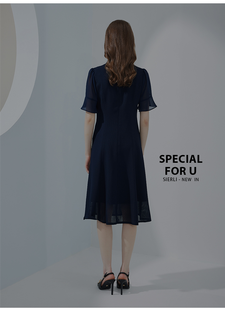 NF8Q5斯尔丽瑟俪2023新款拼接荷叶边袖型收腰散摆通透凉爽连衣裙