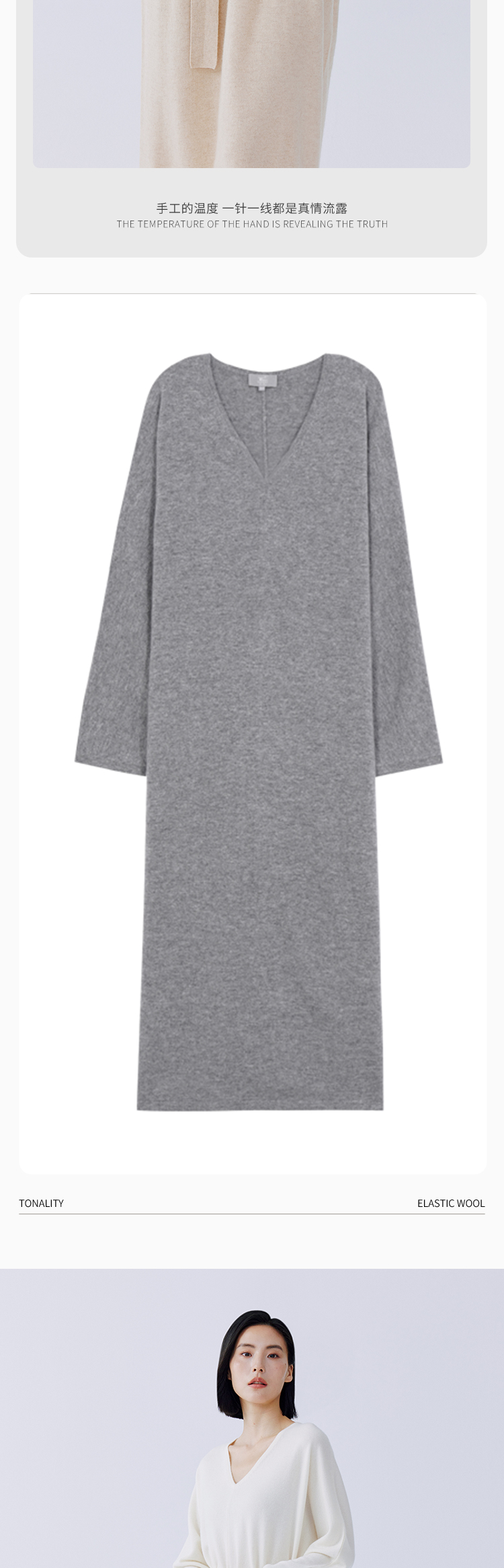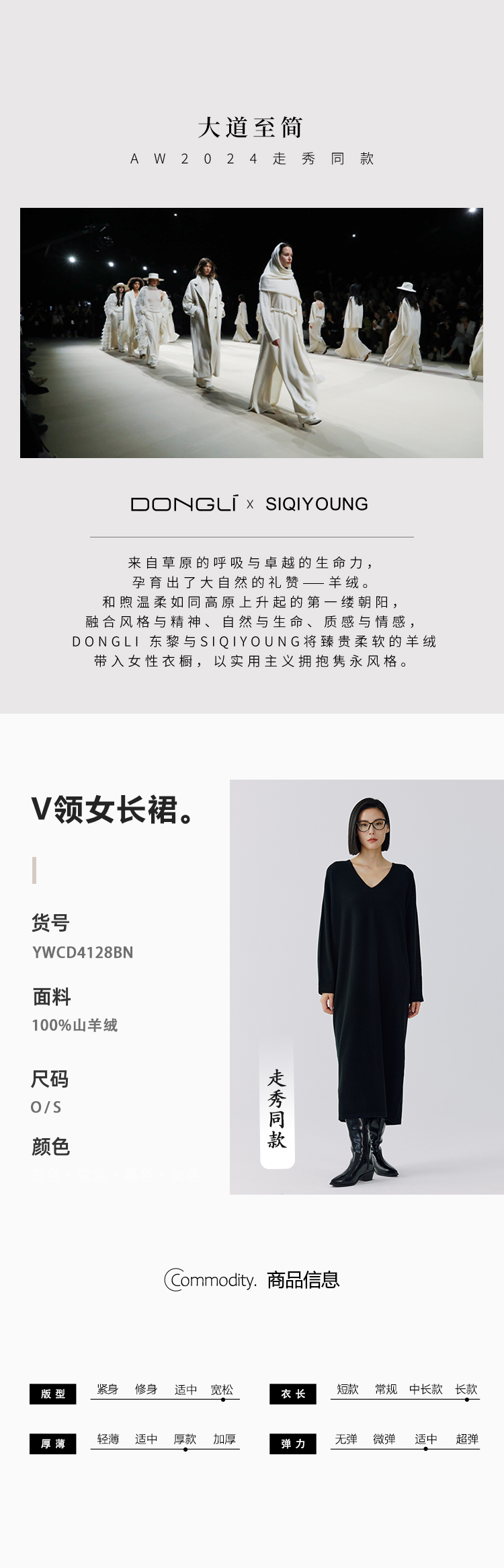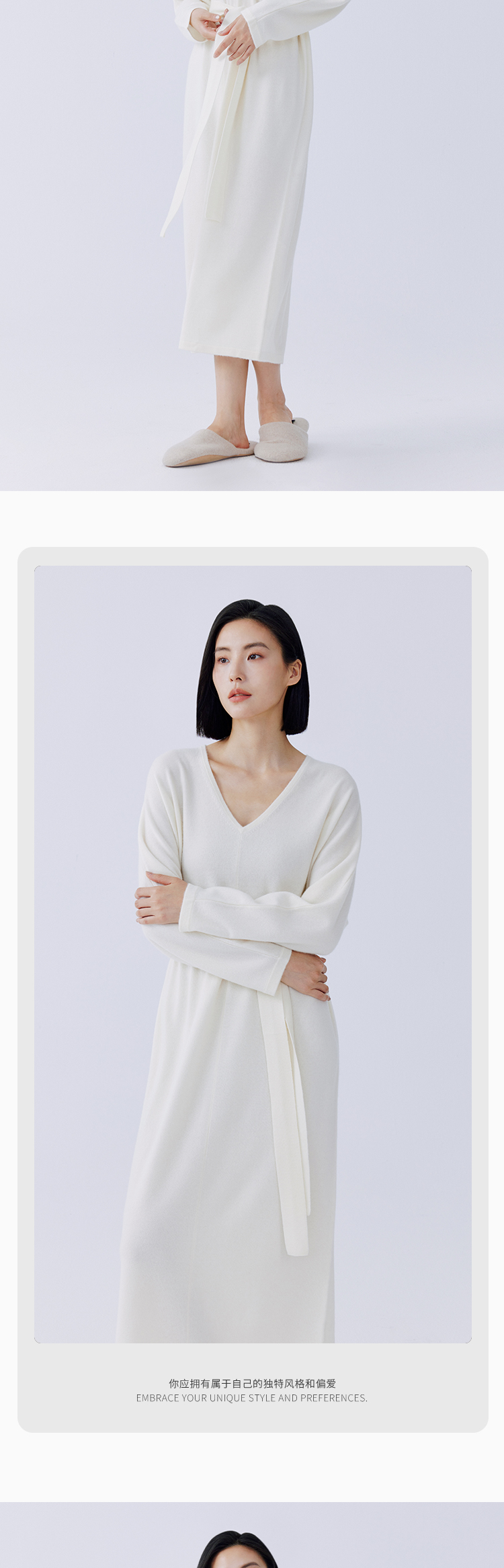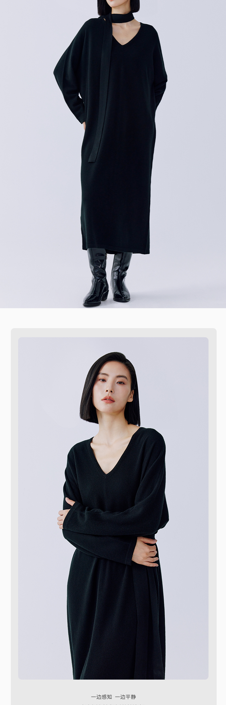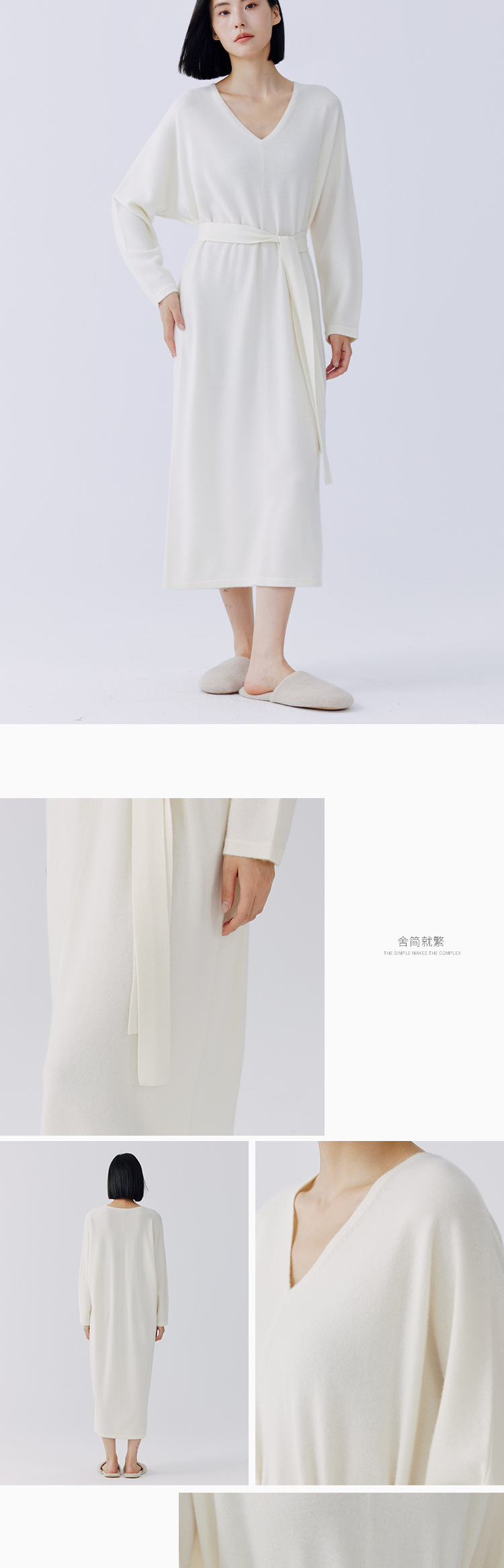 东黎 • 秀场同款 山羊绒女士秋季针织V领连衣裙 4128