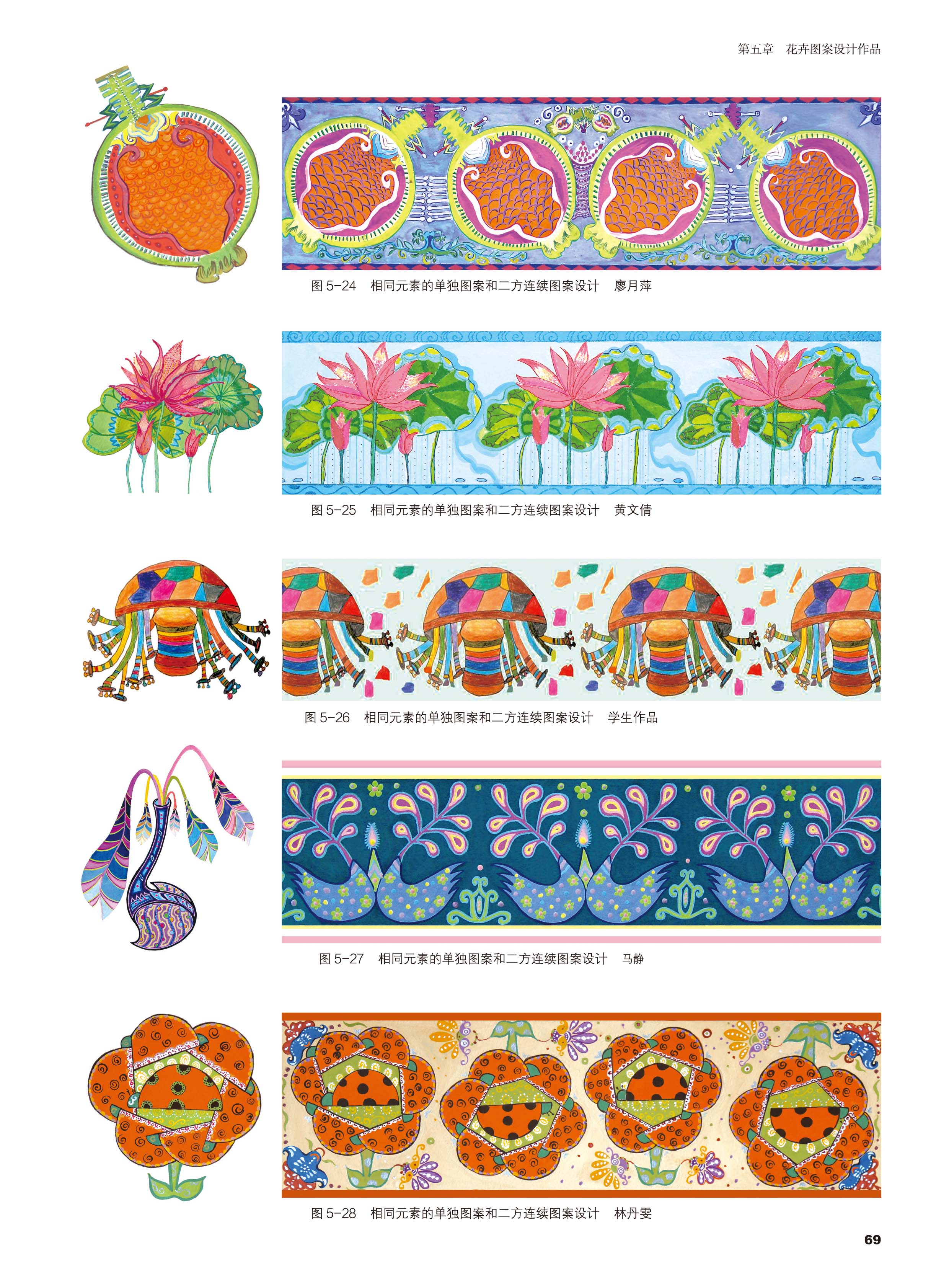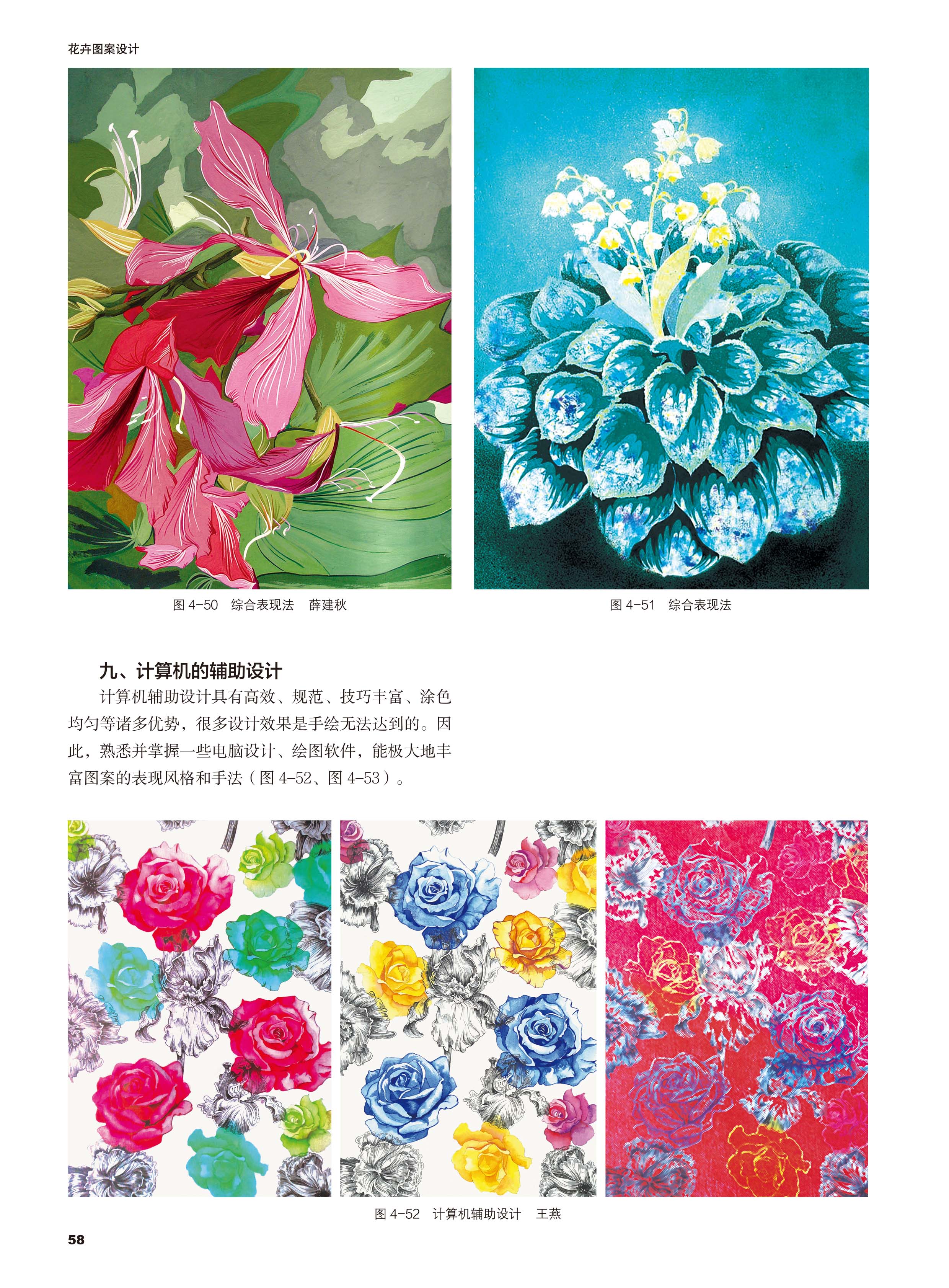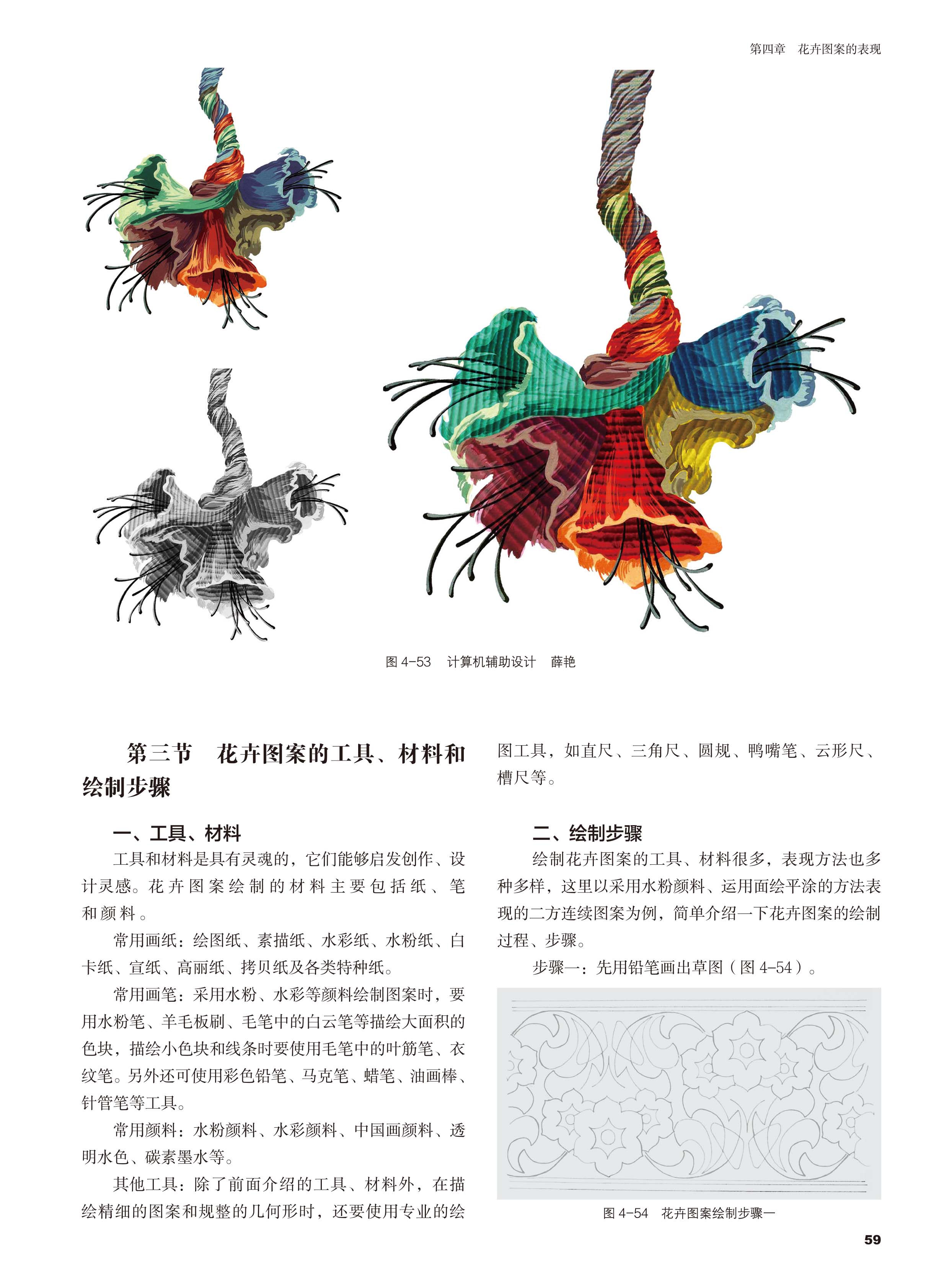 花卉图案设计薛艳 以图为主内容既强化专业基本知识和技能训练注重创意设计思维的培养 广大高等艺术设计专业学生