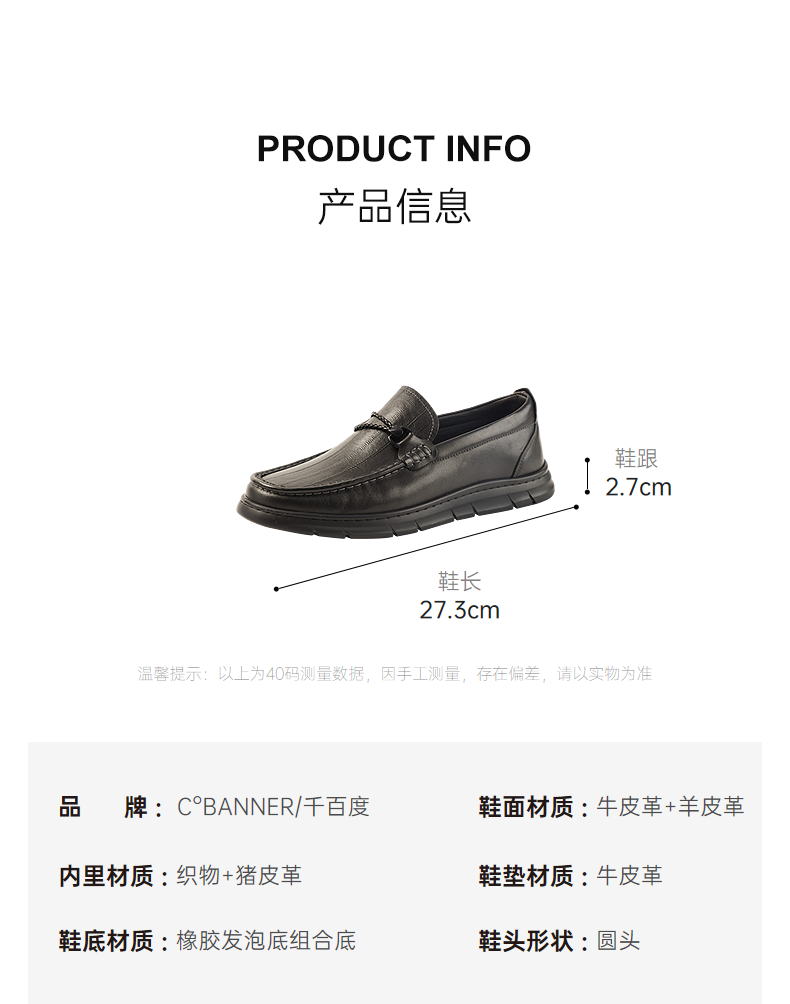 千百度2026春季男鞋质感牛皮鞋面 柔韧耐穿不变形柔感鞋A26133131