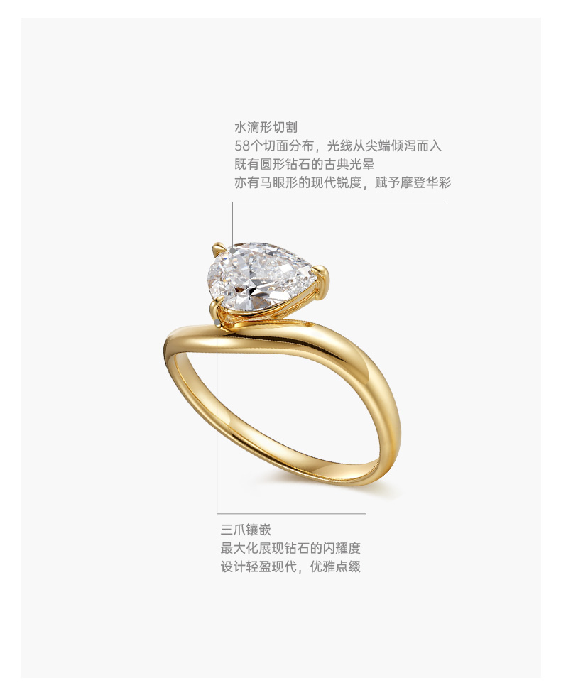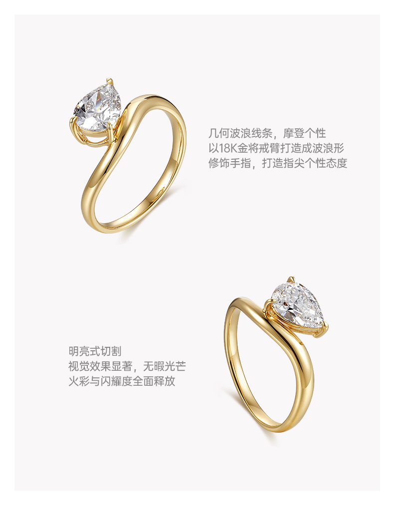 ShiningHouse[培育] 18k金钻石戒指 水滴形1克拉钻人工真钻人造钻石K金戒指设计感简约钻石戒指悦己送礼臻选【此商品不支持7天无理由退货退款】预计3日发货