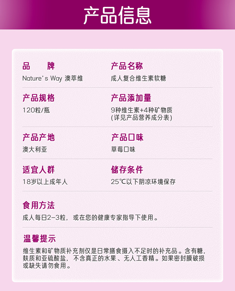 【跨境进口】Nature's way澳萃维成人复合维生素软糖120粒|报关后不支持退换货 介意慎拍