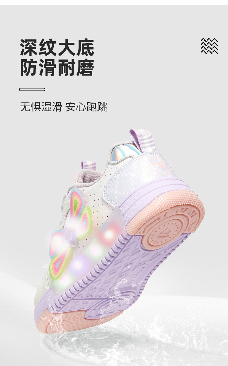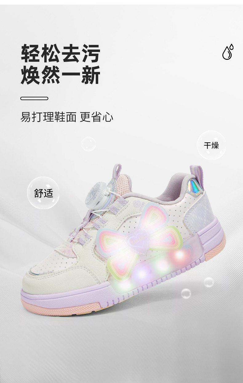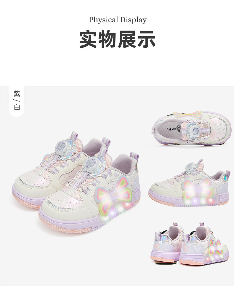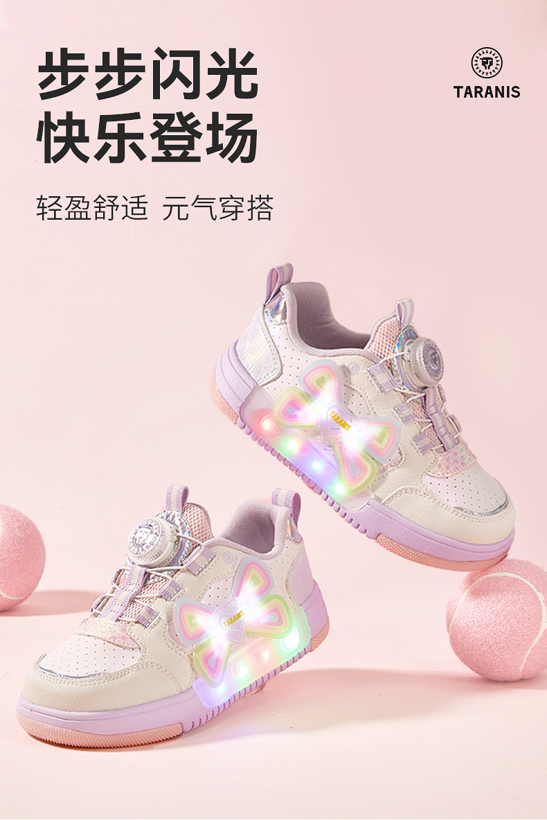 泰兰尼斯儿童闪灯板鞋春季新款女童休闲板鞋柔软舒适儿童发光鞋子T02X6A8704
