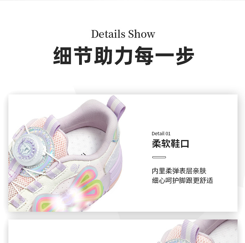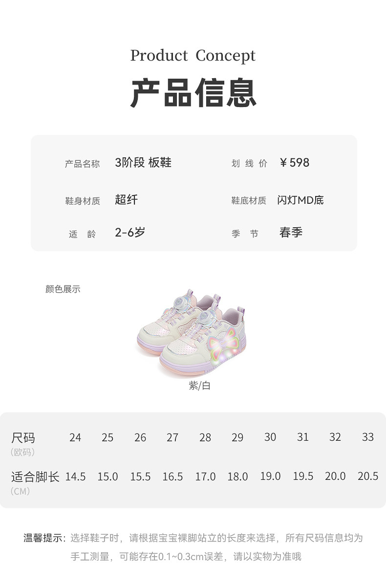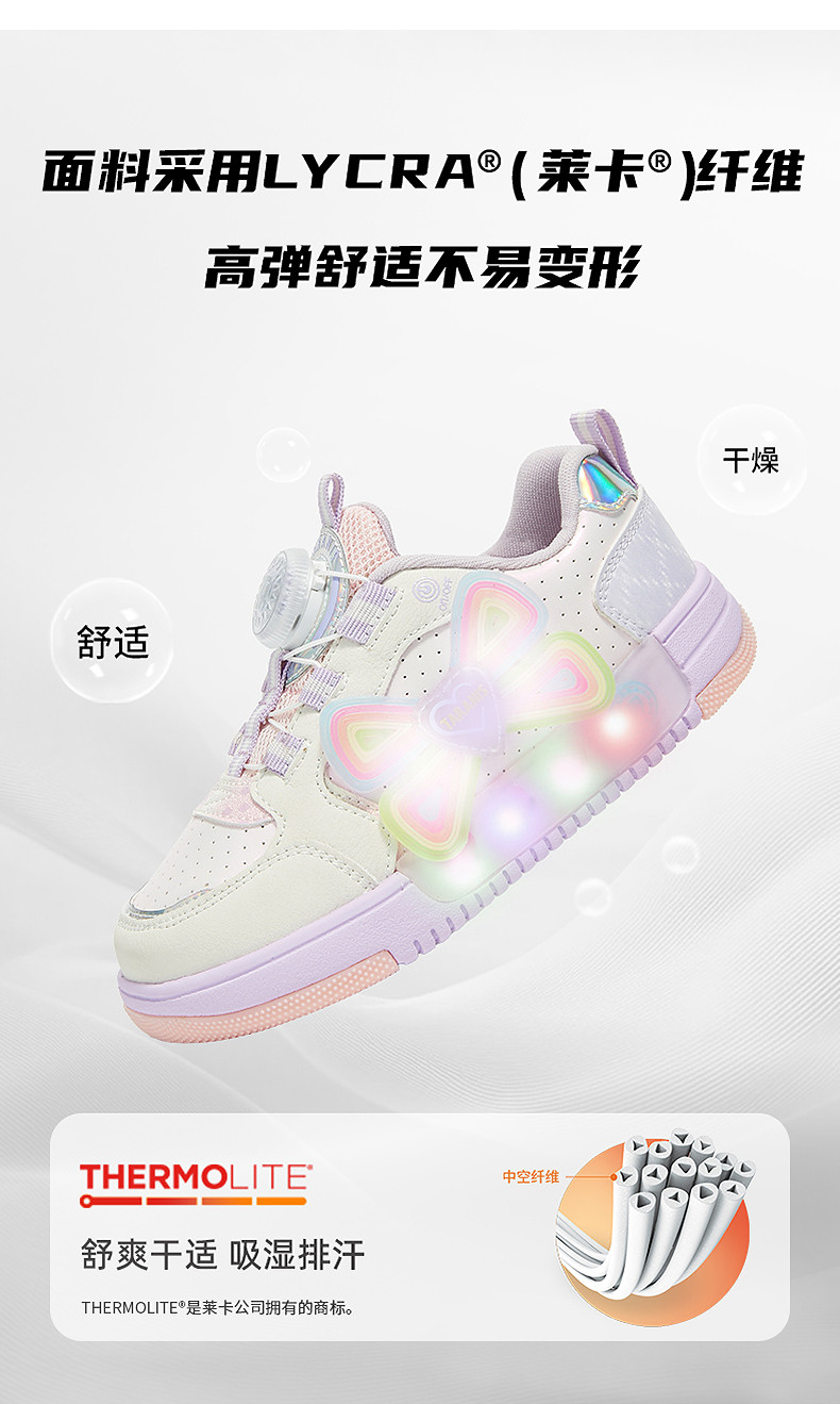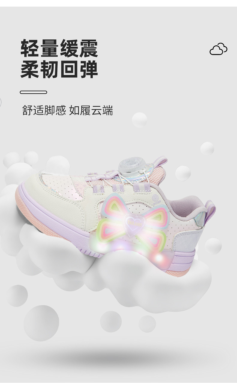 泰兰尼斯儿童闪灯板鞋春季新款女童休闲板鞋柔软舒适儿童发光鞋子T02X6A8704