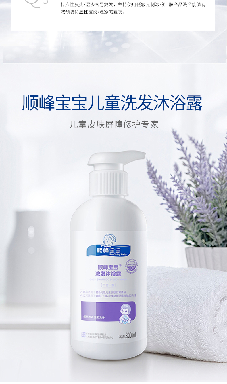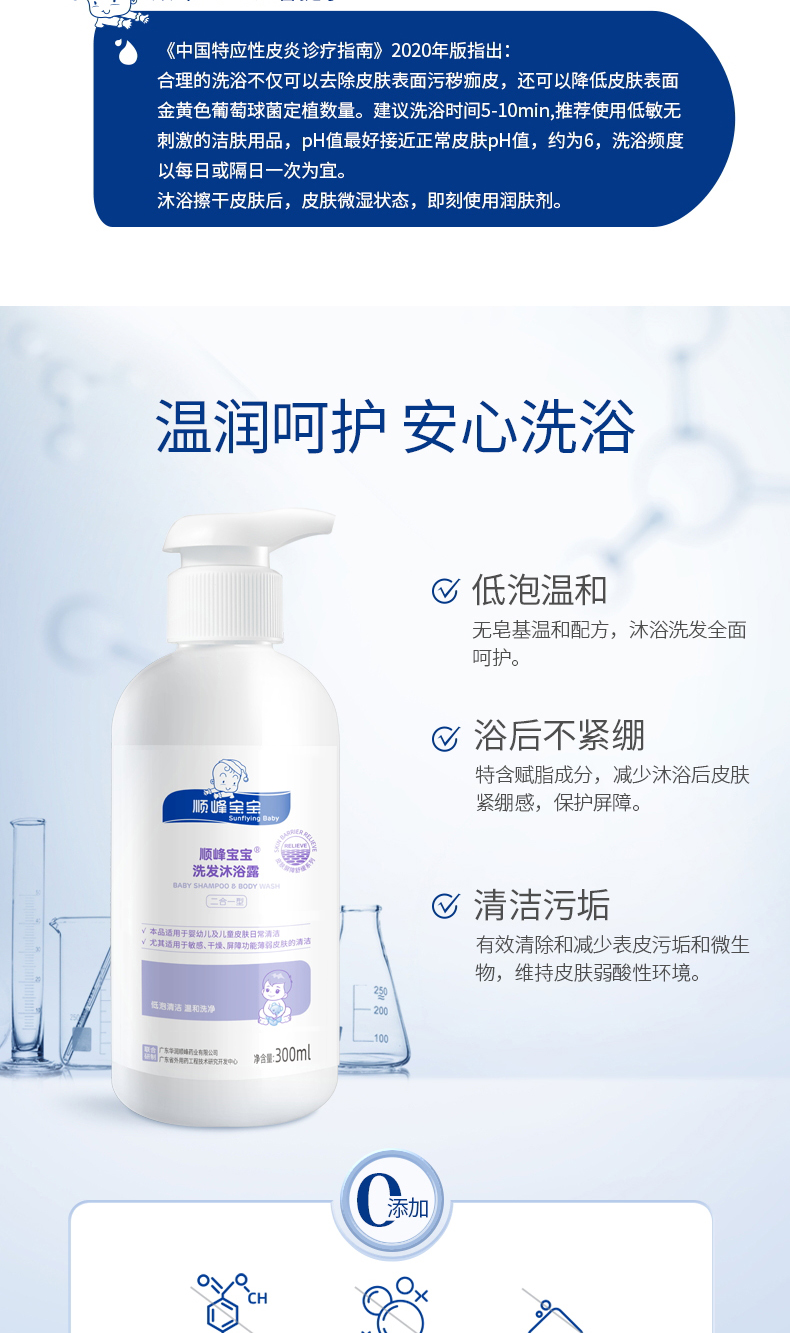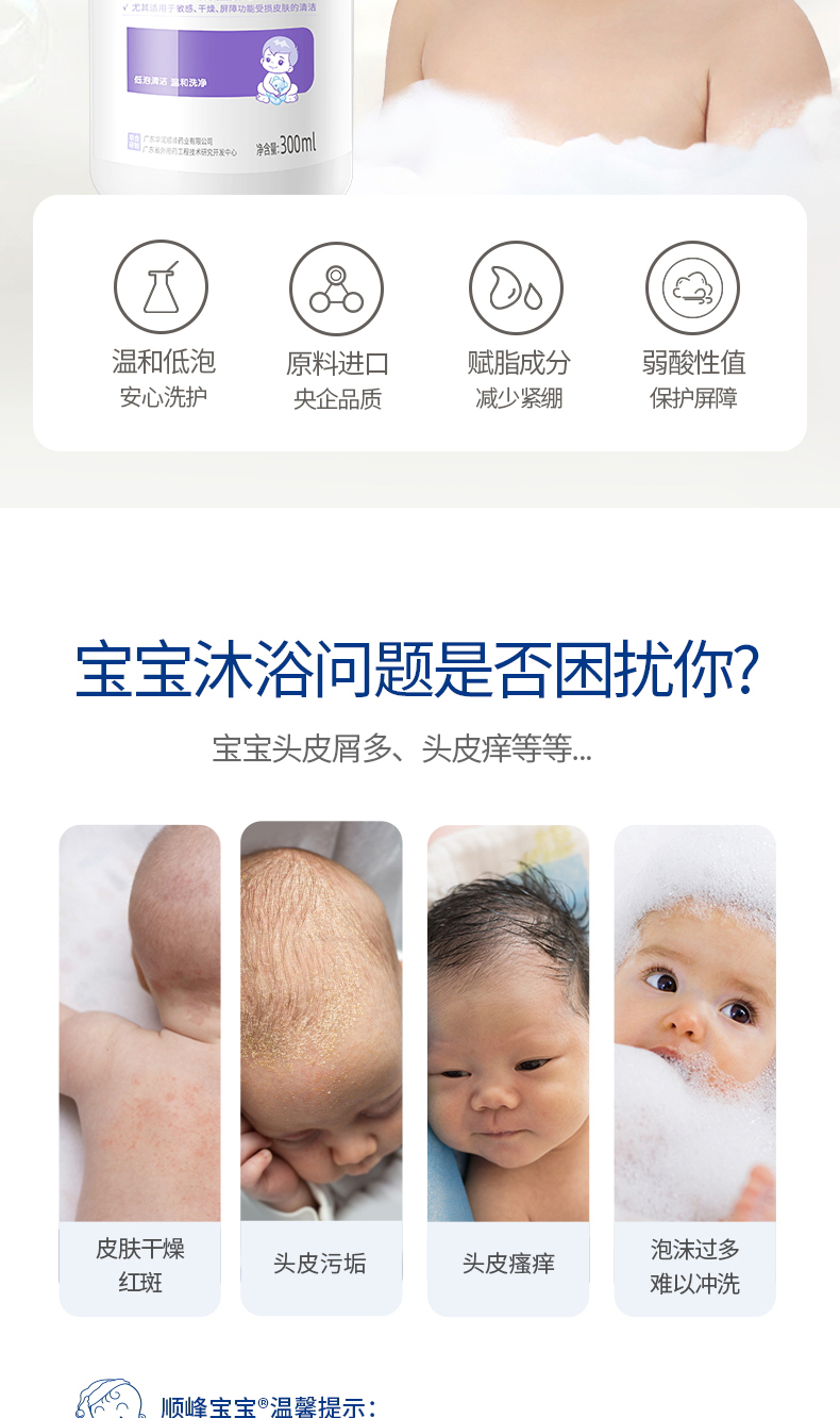 顺峰宝宝儿童洗发沐浴露新生婴幼儿弱酸低泡温和清洁舒缓干燥