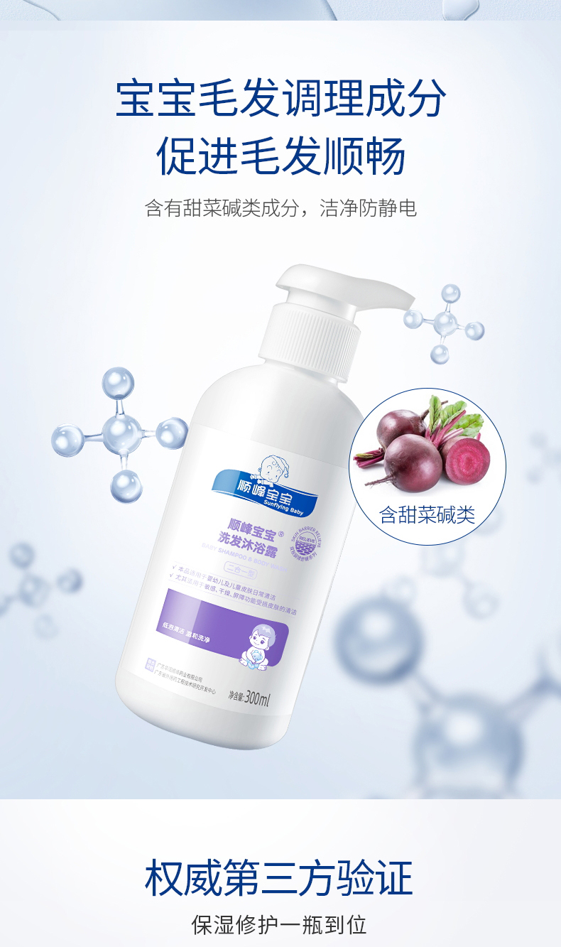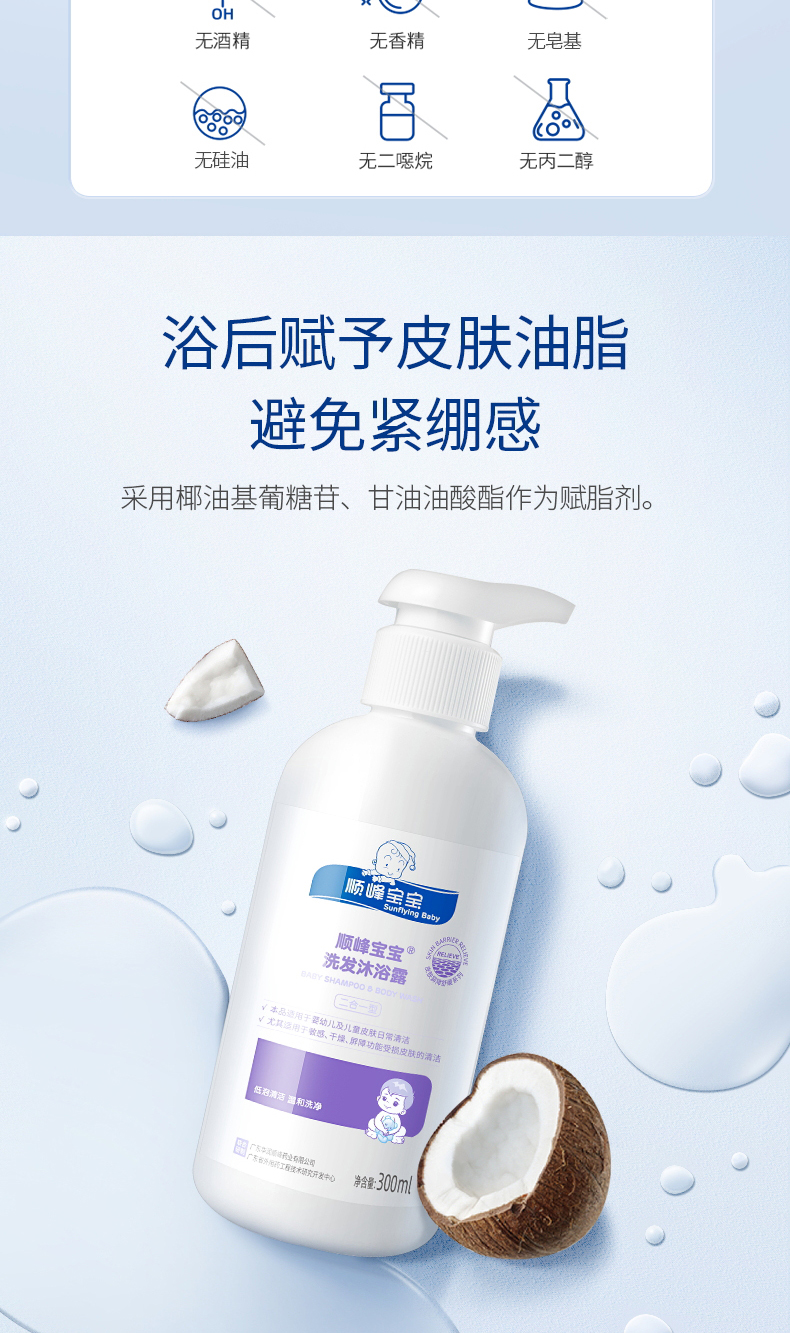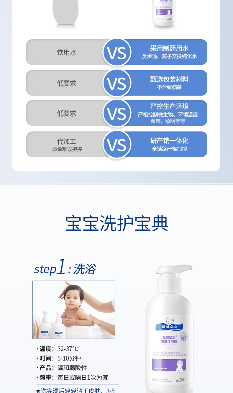 顺峰宝宝儿童洗发沐浴露新生婴幼儿弱酸低泡温和清洁舒缓干燥