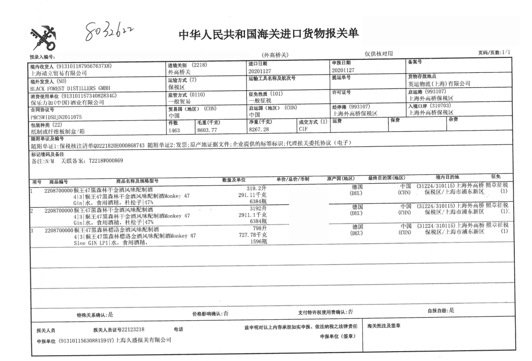 猴王47黑森林干金酒