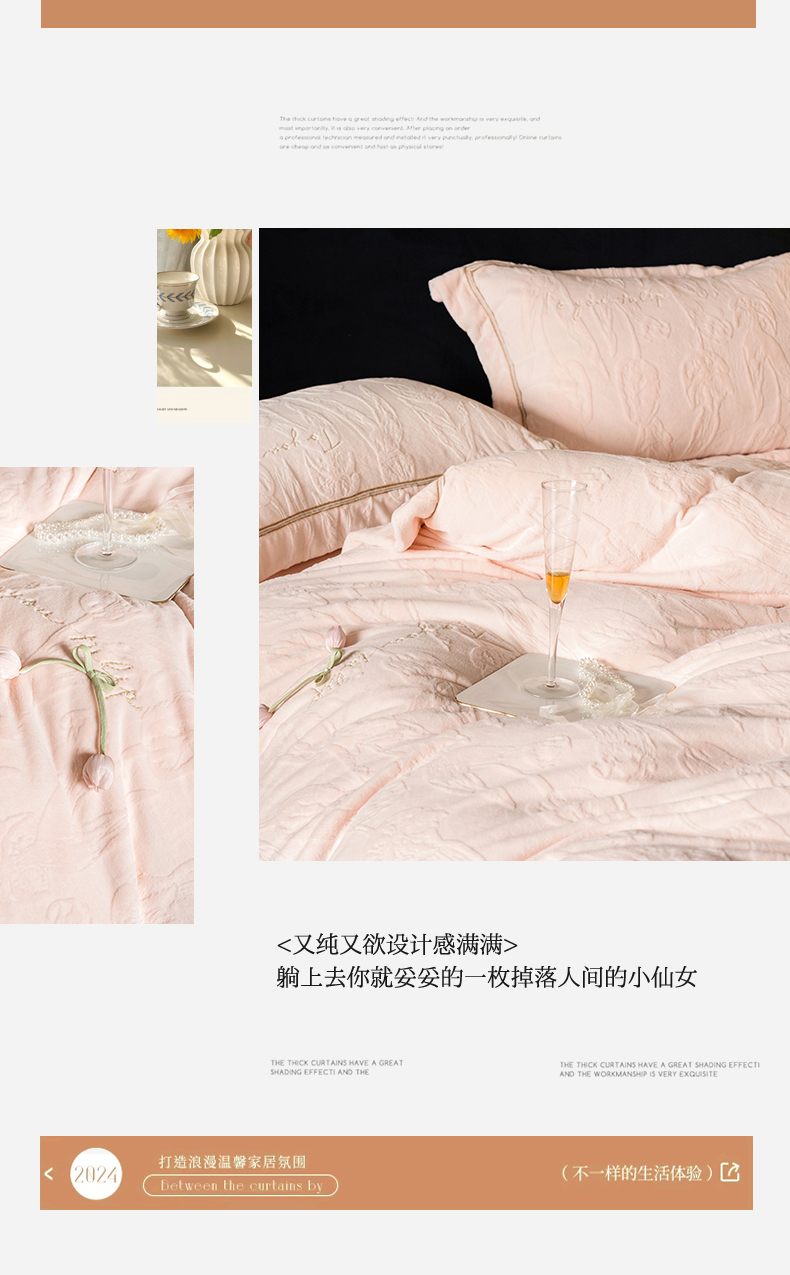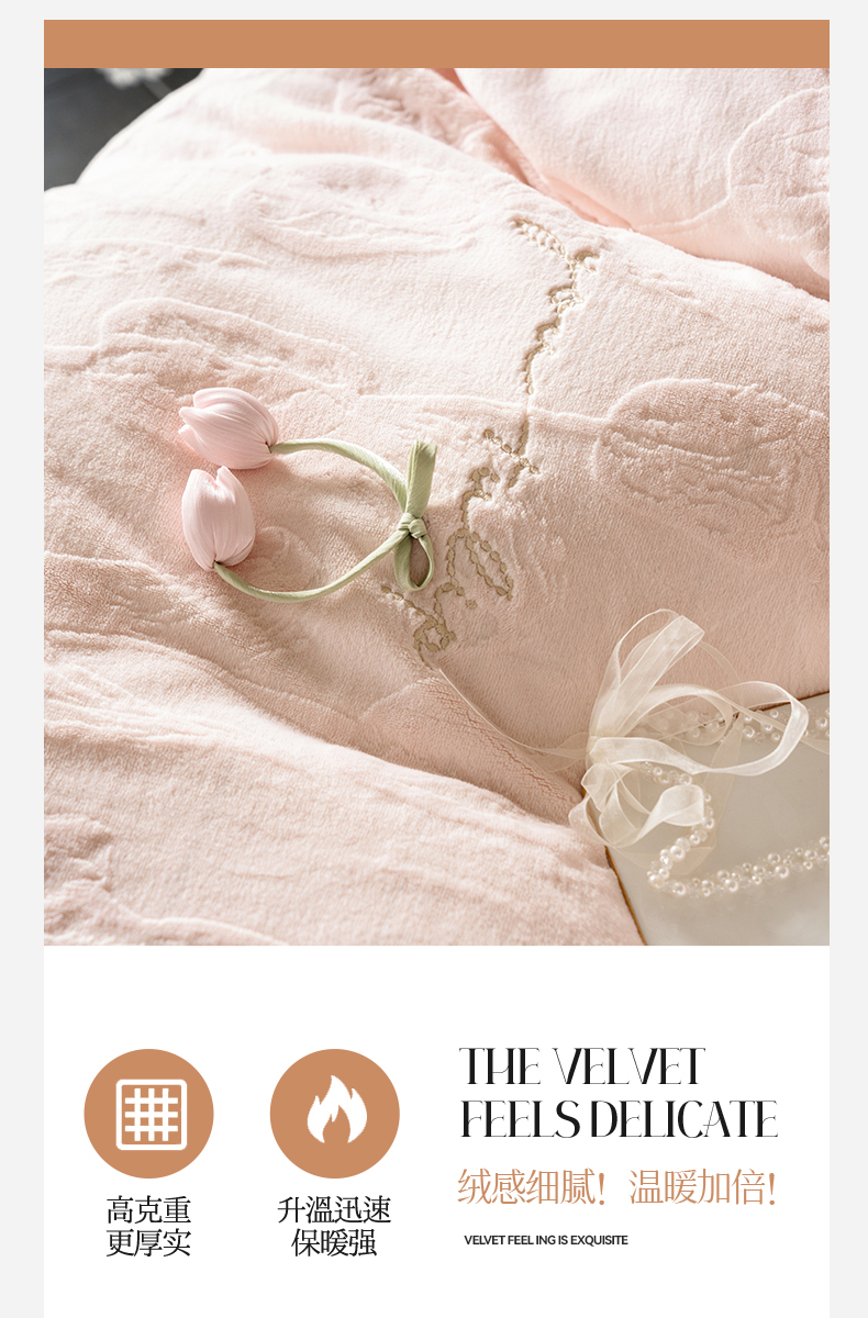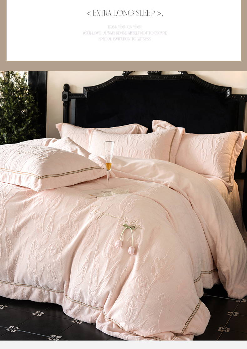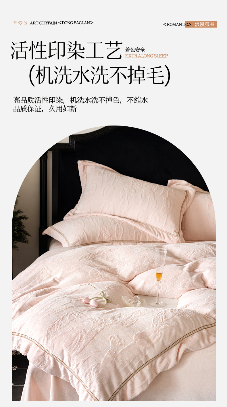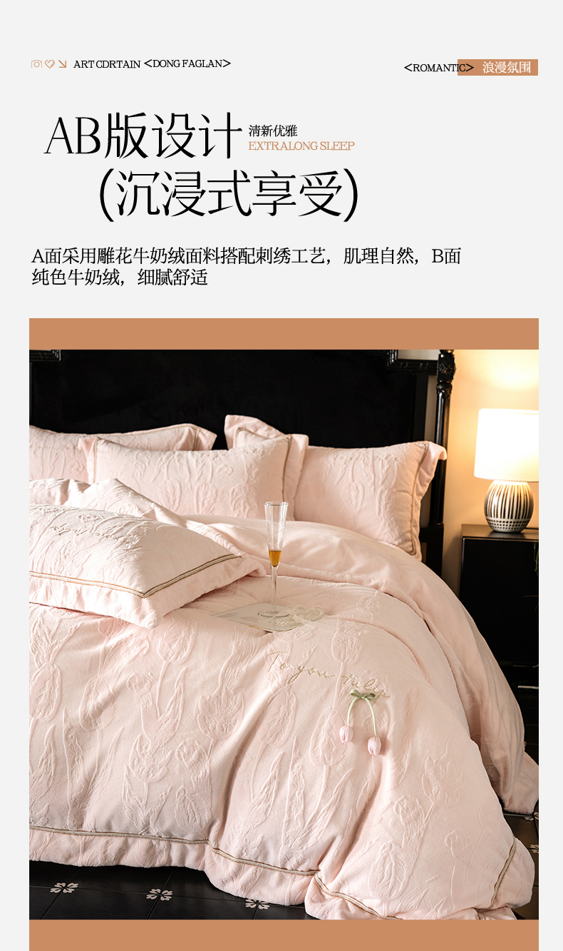 顶柔牛奶绒雕花绒刺绣四件套芙拉系列-TJ1548