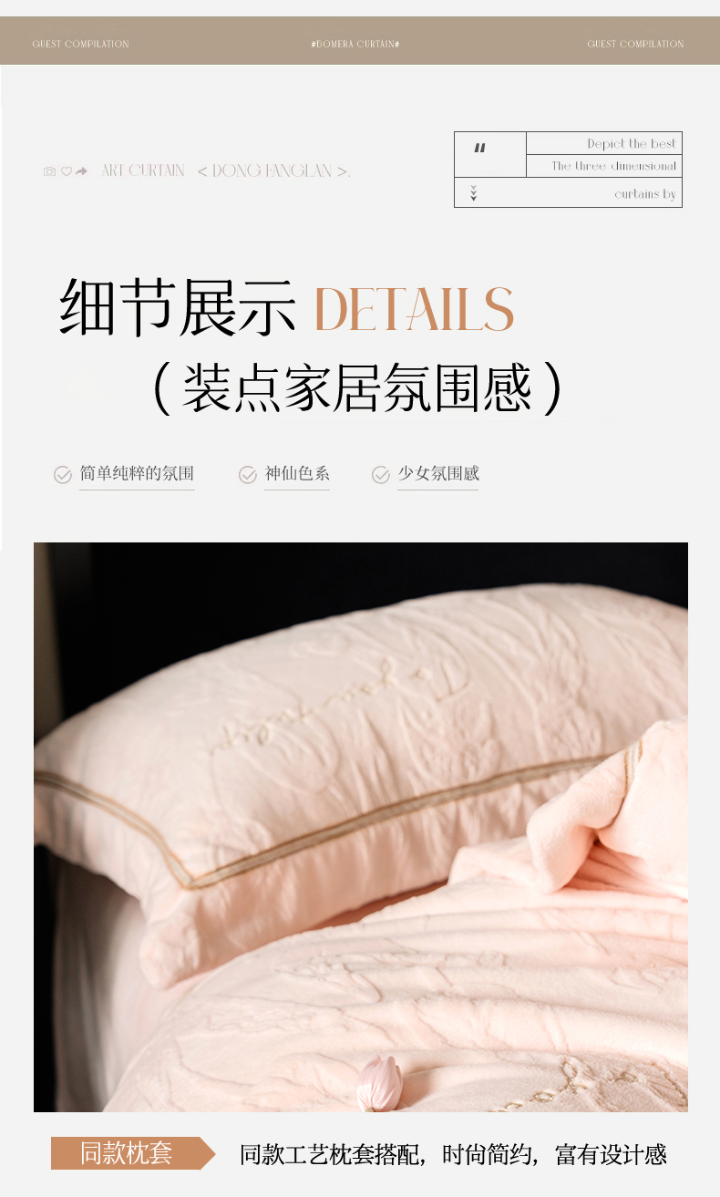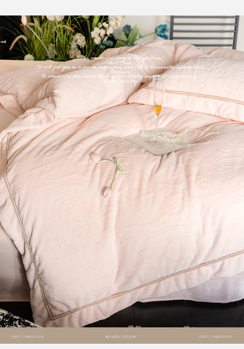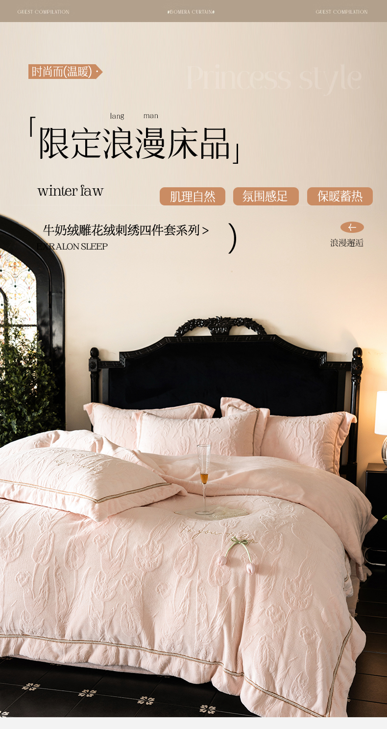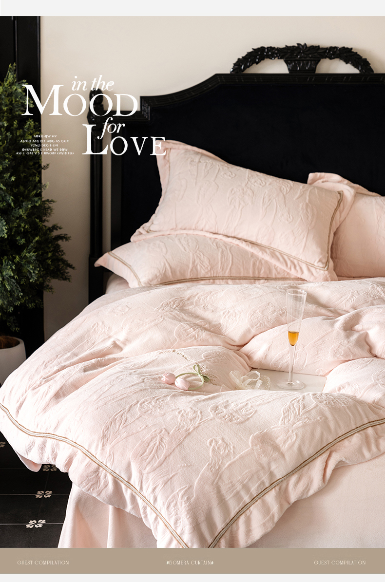 顶柔牛奶绒雕花绒刺绣四件套芙拉系列-TJ1548