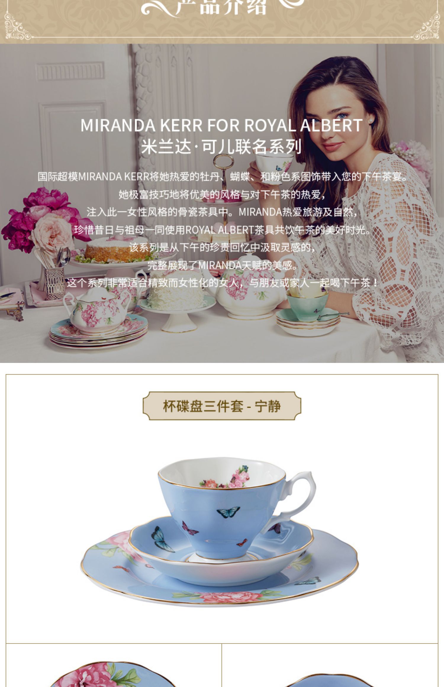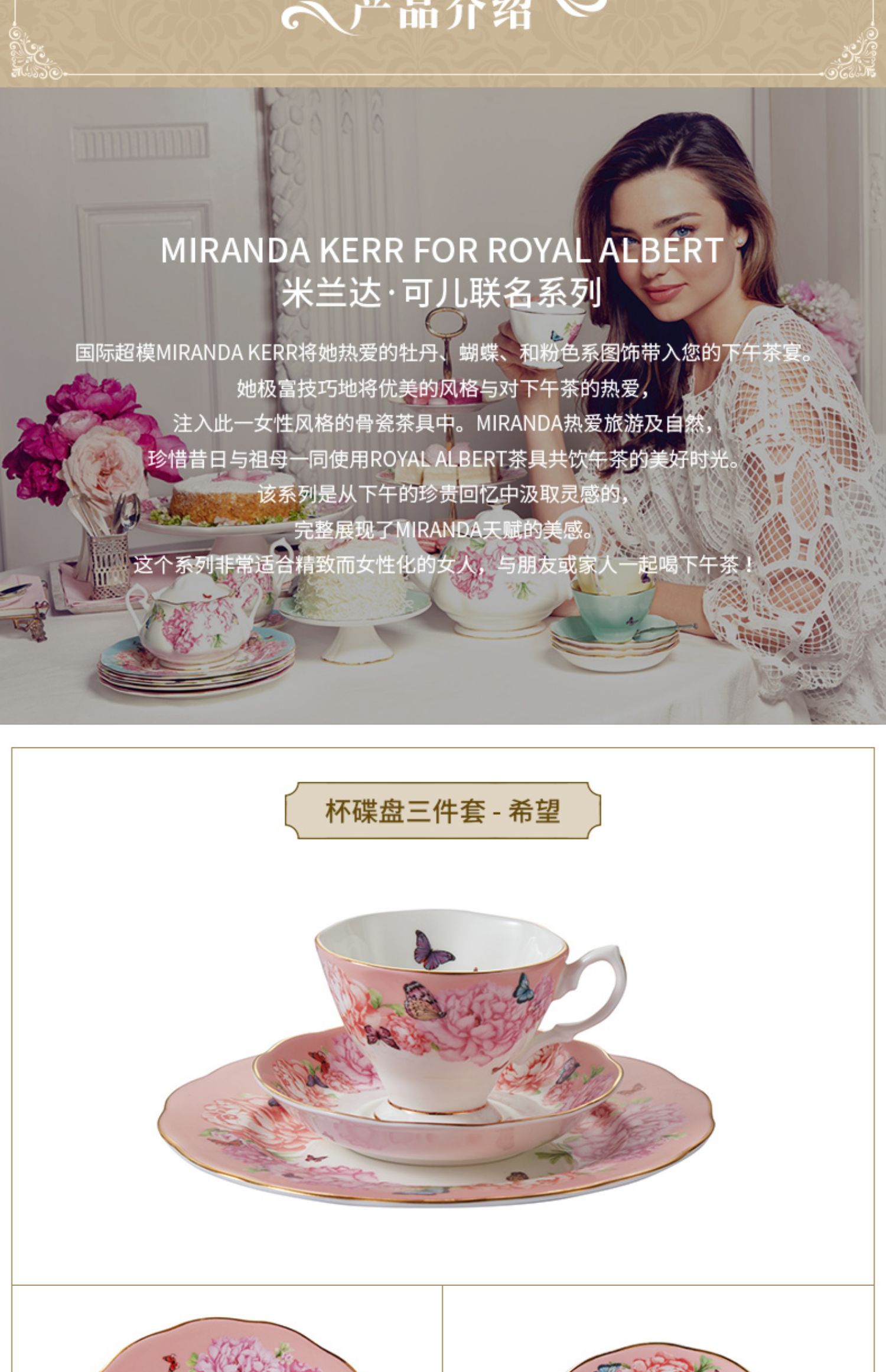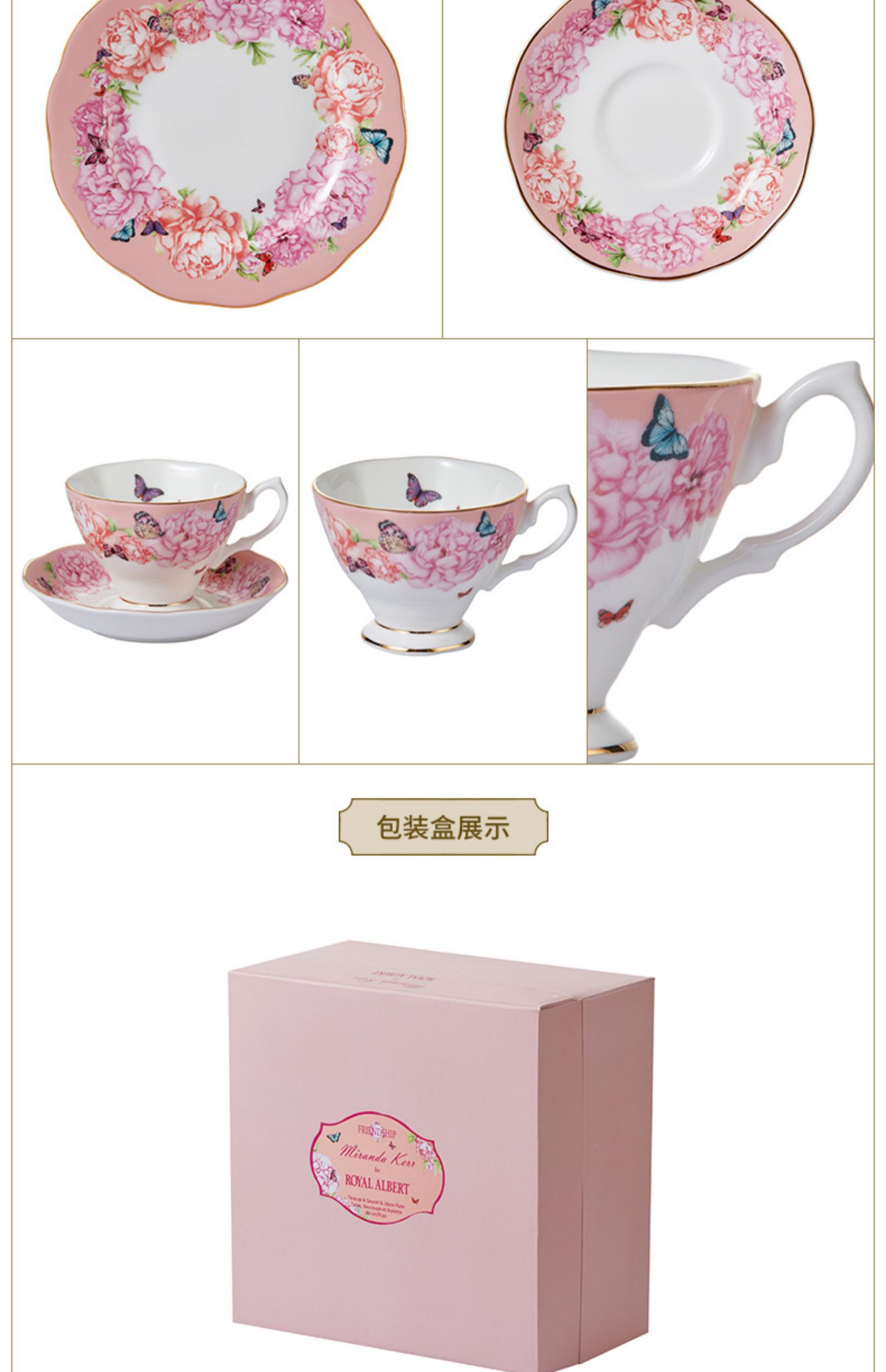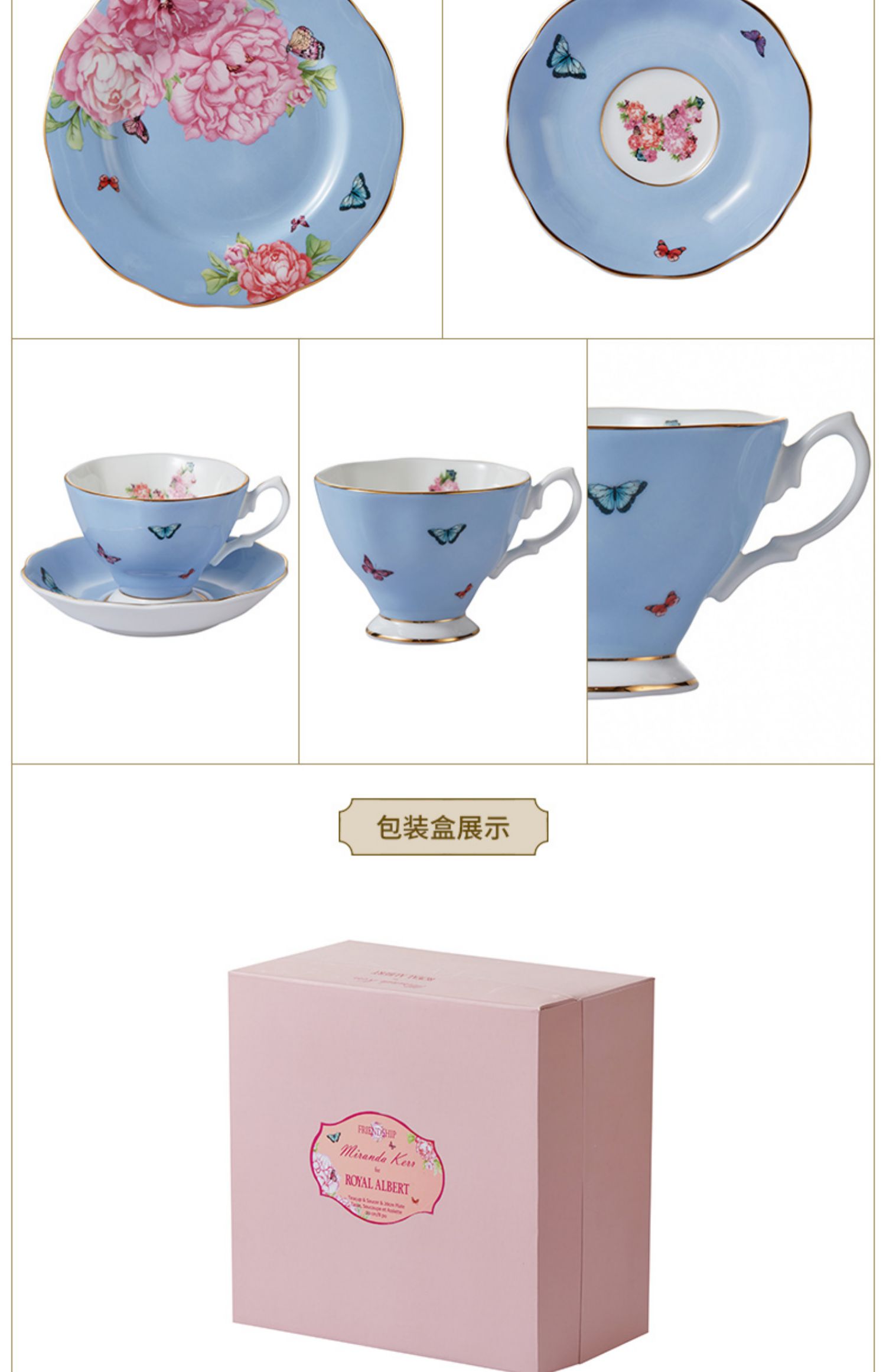 Royal Albert 杯碟盘三件套装 米兰达可儿友谊系列 皇家阿尔伯特米兰达联名骨瓷咖啡杯碟茶杯三件套礼盒