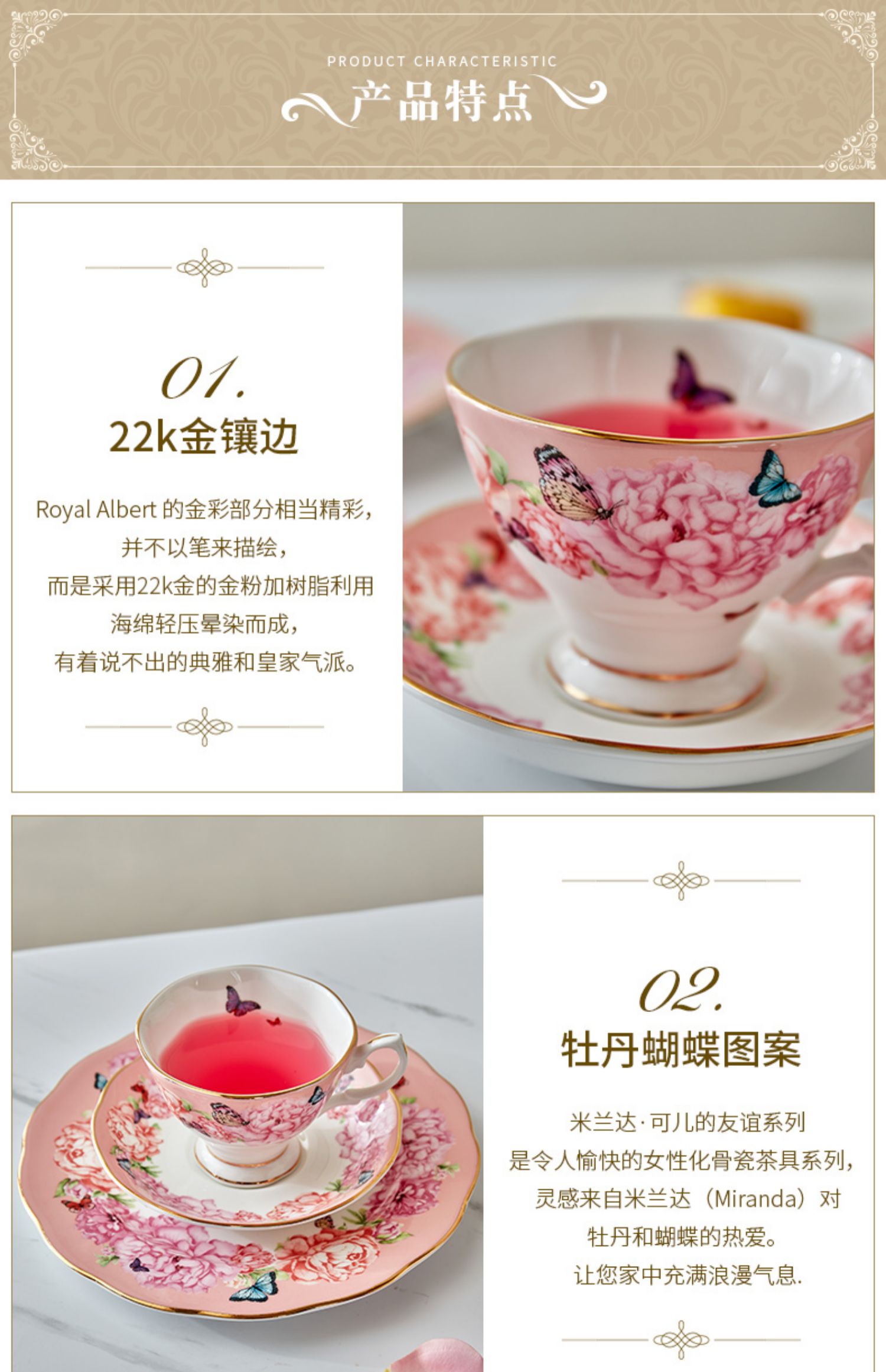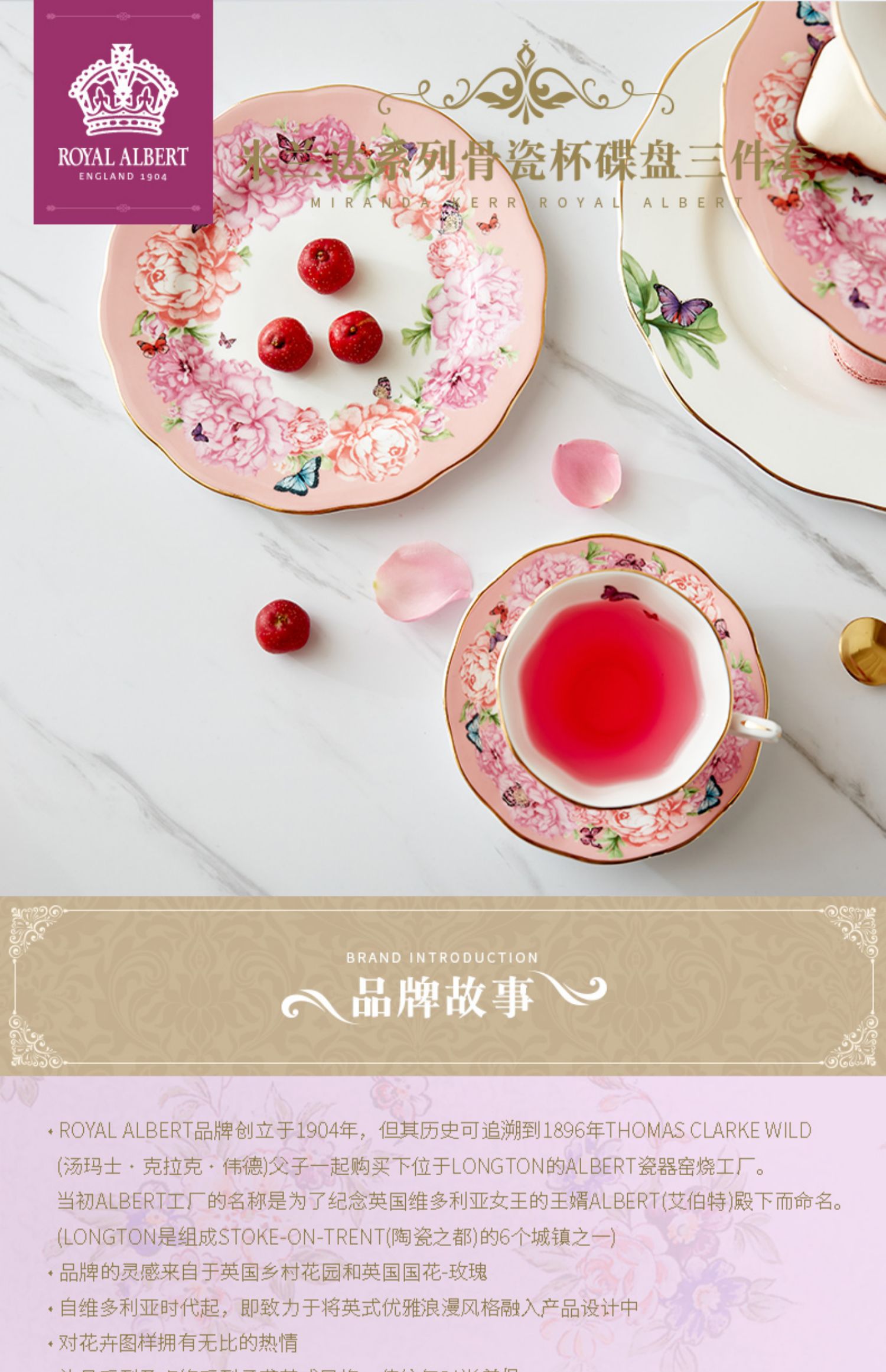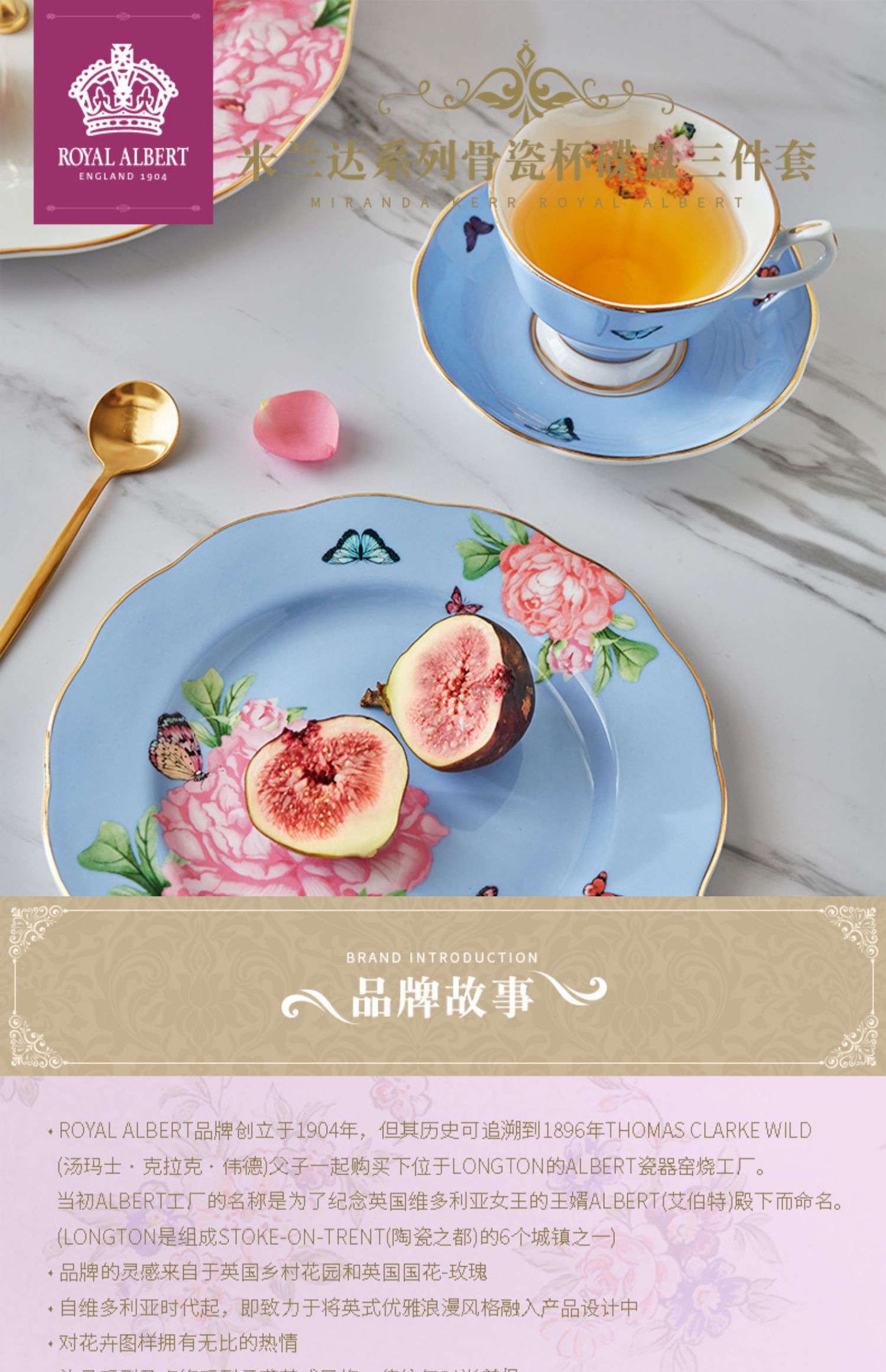 Royal Albert 杯碟盘三件套装 米兰达可儿友谊系列 皇家阿尔伯特米兰达联名骨瓷咖啡杯碟茶杯三件套礼盒
