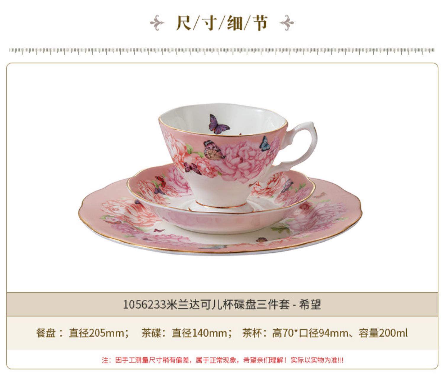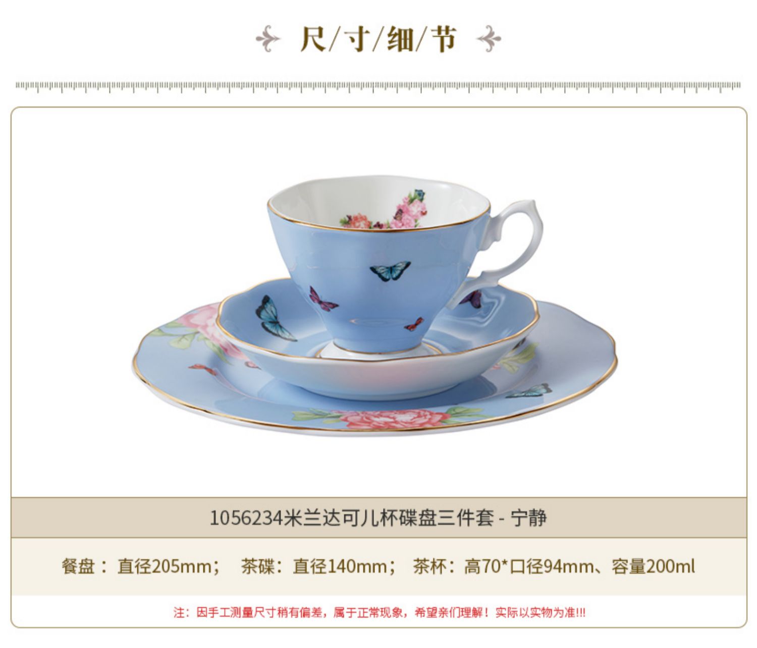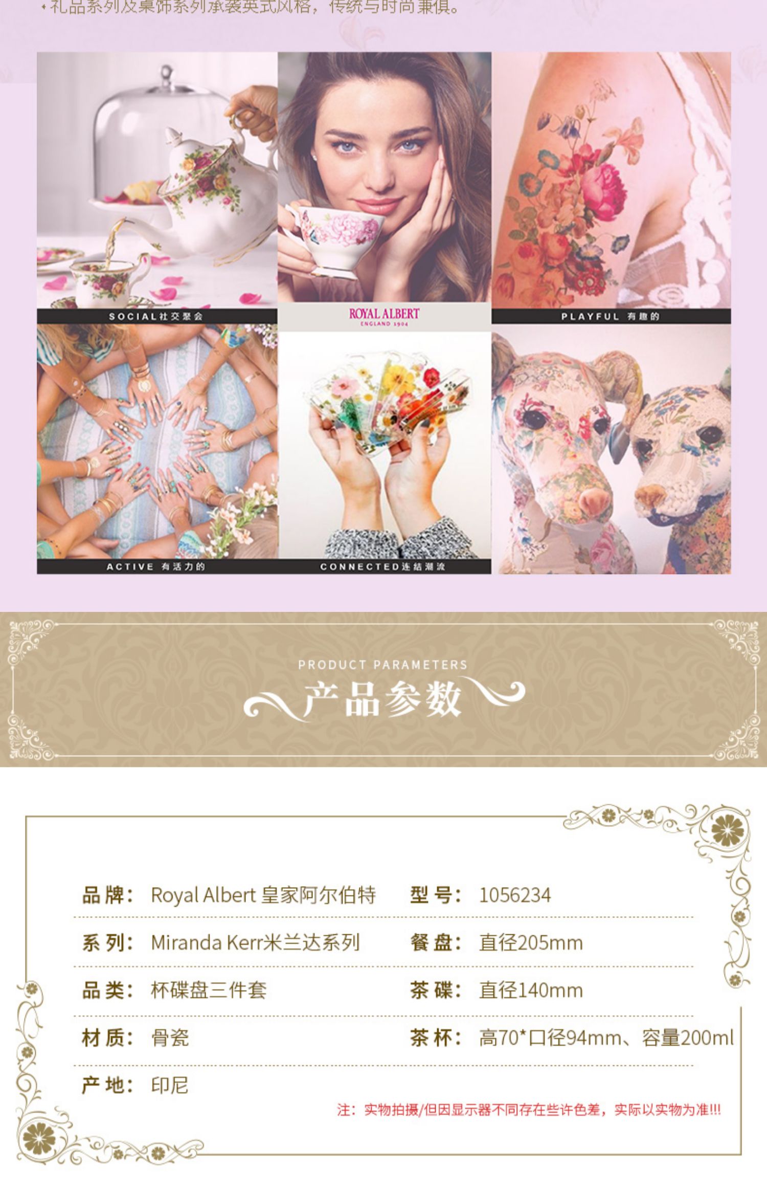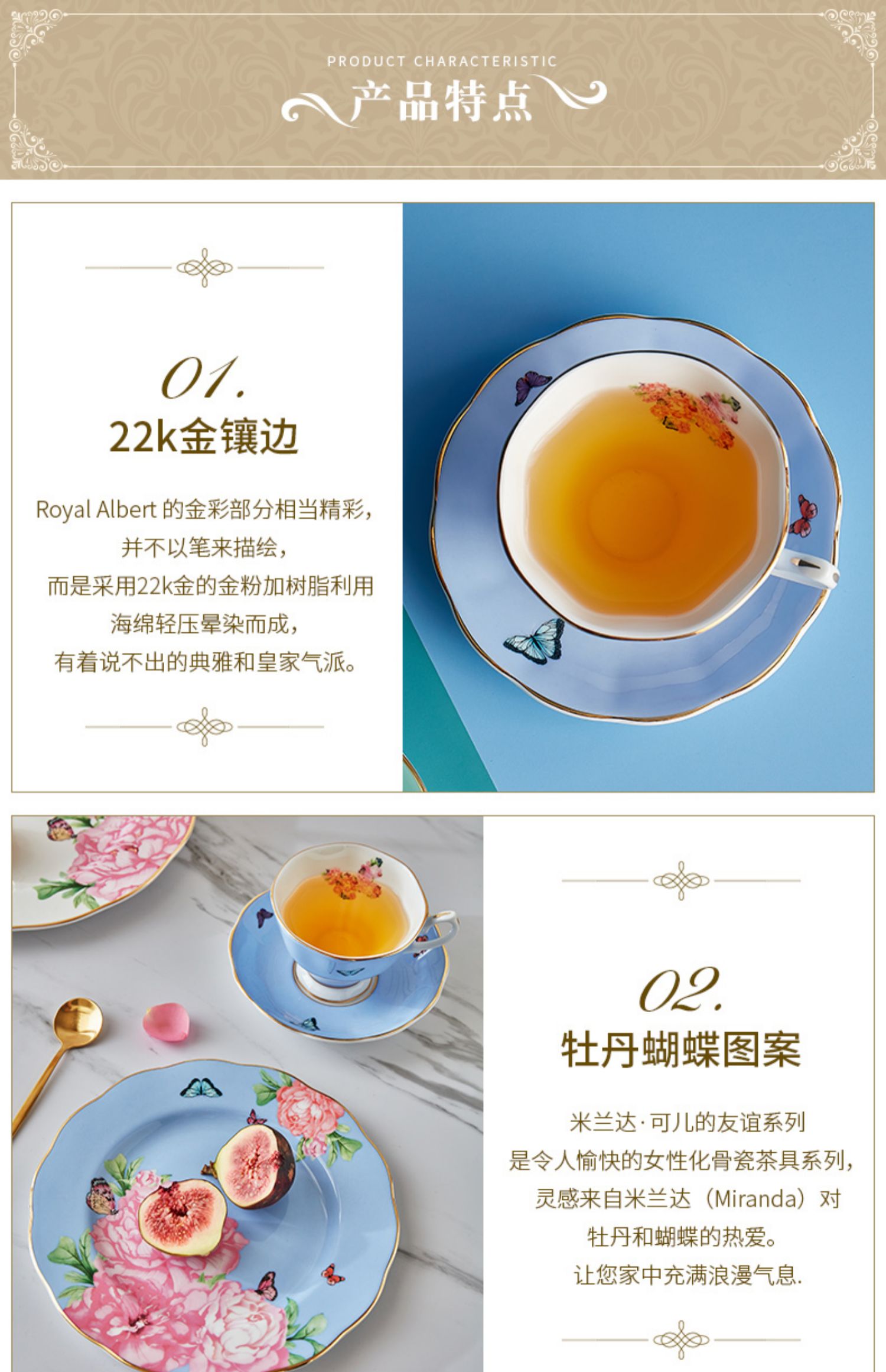 Royal Albert 杯碟盘三件套装 米兰达可儿友谊系列 皇家阿尔伯特米兰达联名骨瓷咖啡杯碟茶杯三件套礼盒