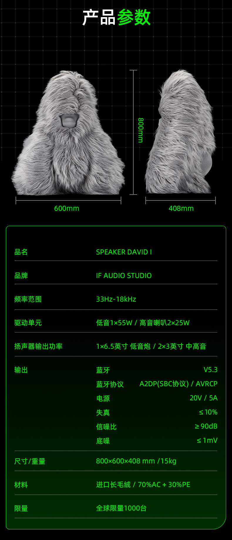 IF SPEAKER 大猩猩音响 灰色 大卫猿猩猩毛绒高保真蓝牙HIFI重低音桌面音响箱