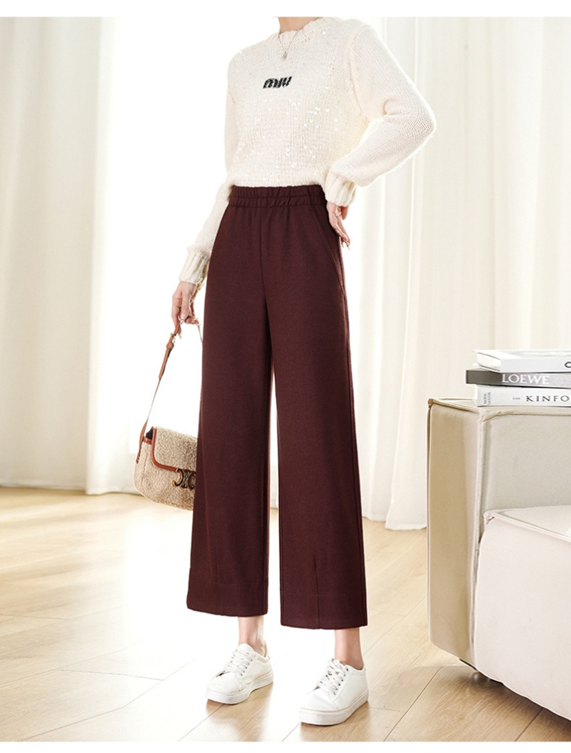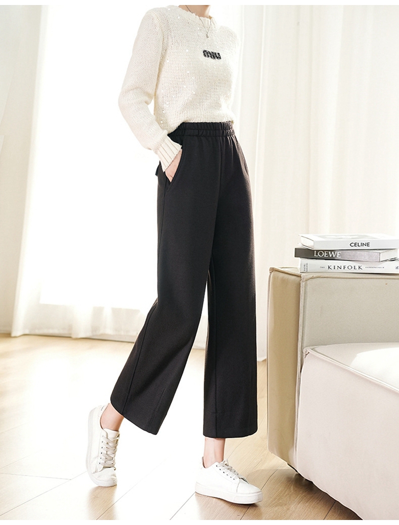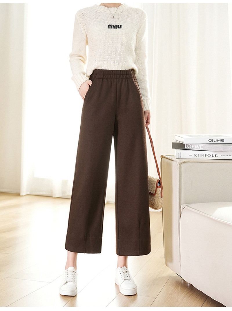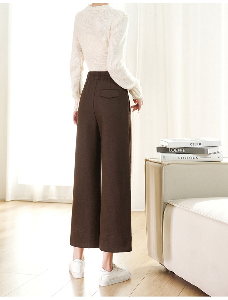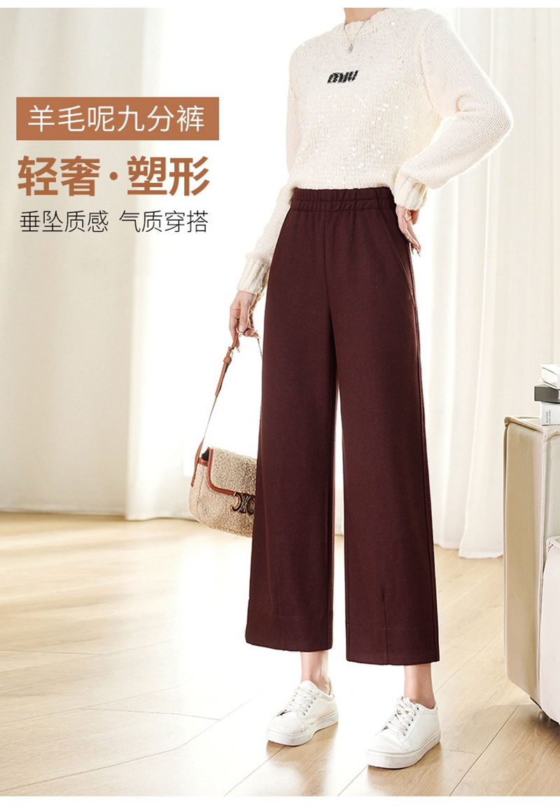 高腰松紧腰毛呢加厚直筒九分山本裤