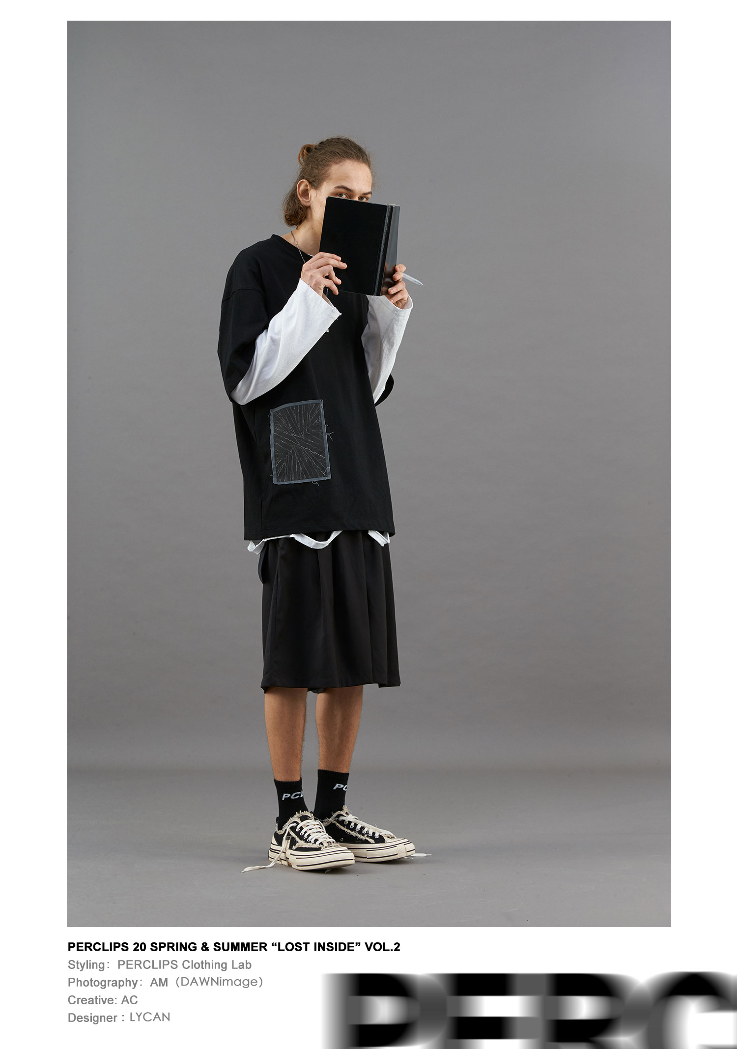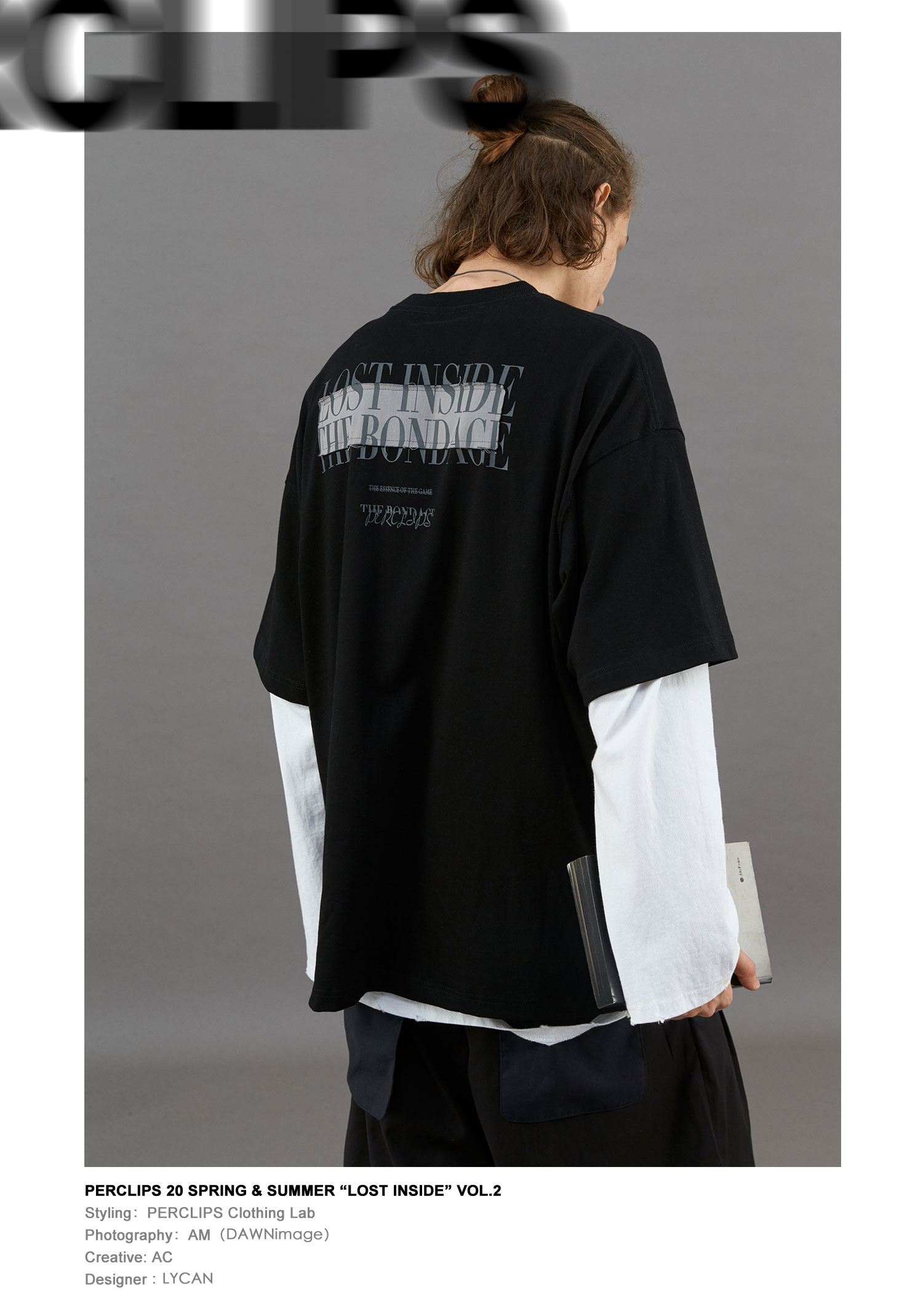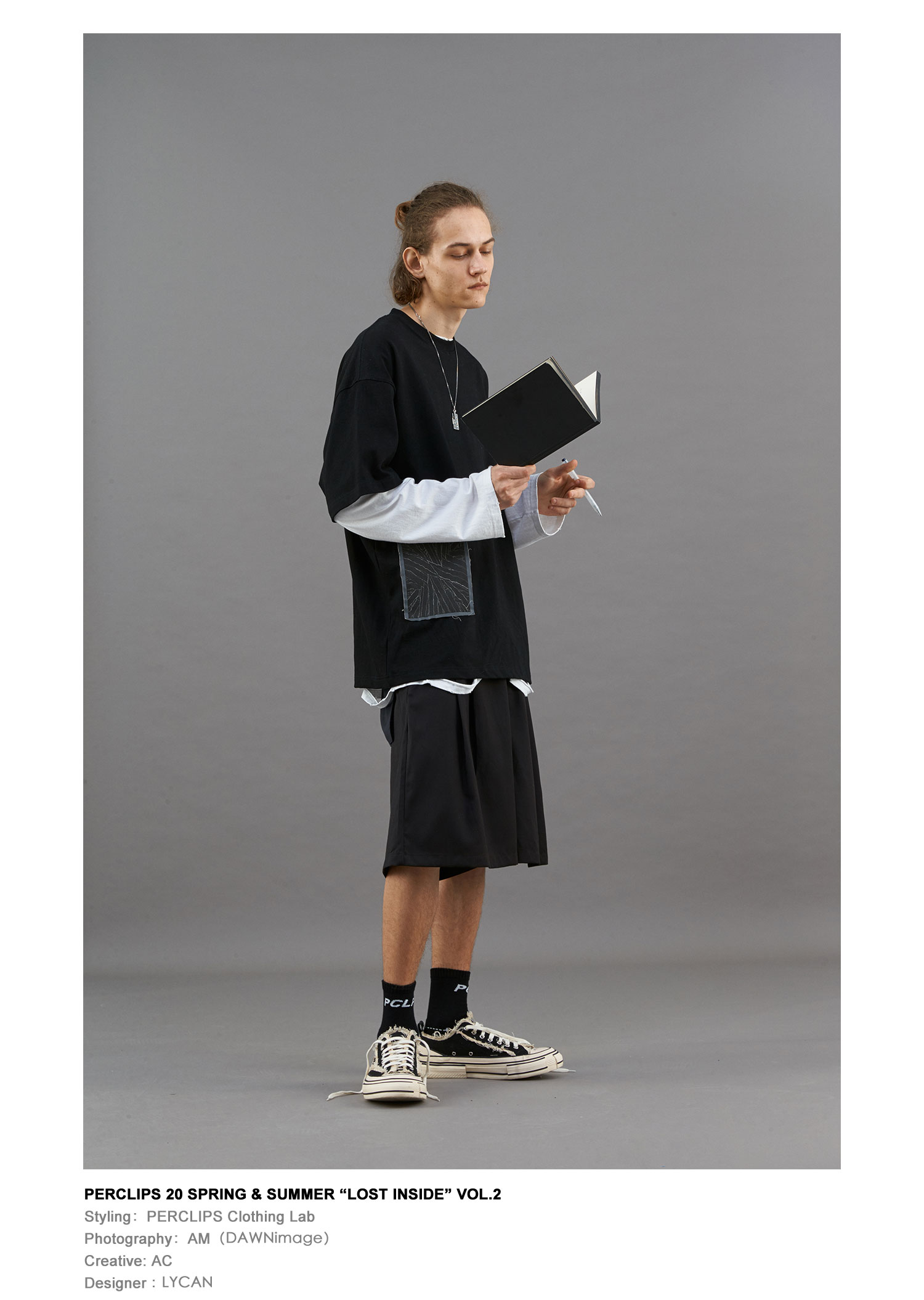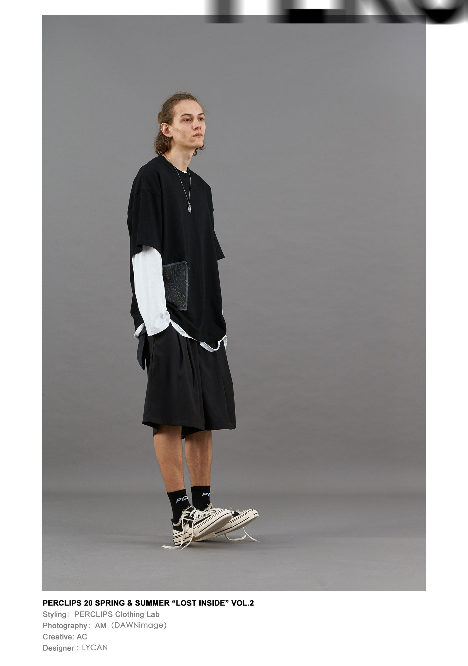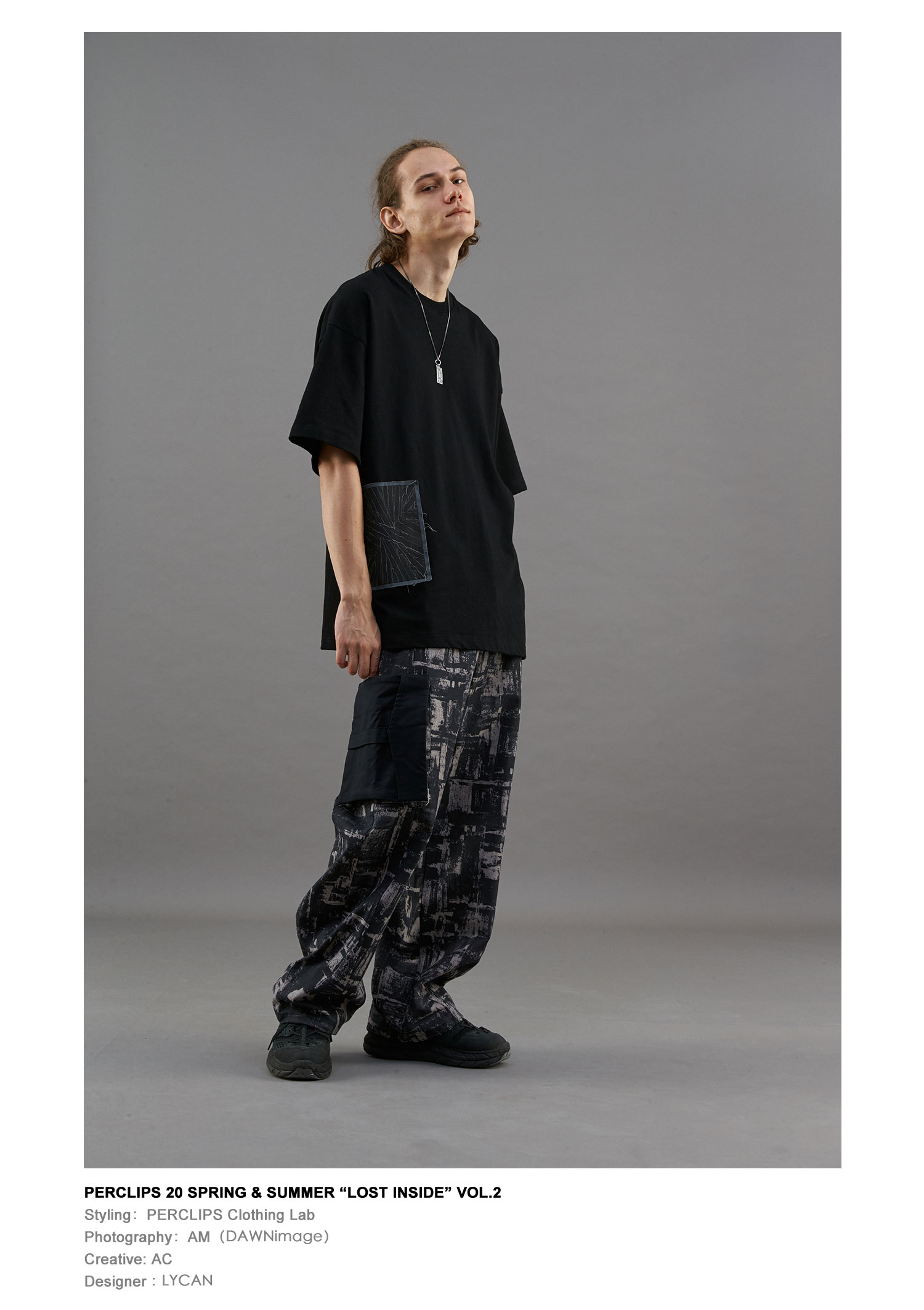 PCLP(PERCLIPS) 贴布破坏印花短袖 T恤TEE宽松国潮图案男潮流