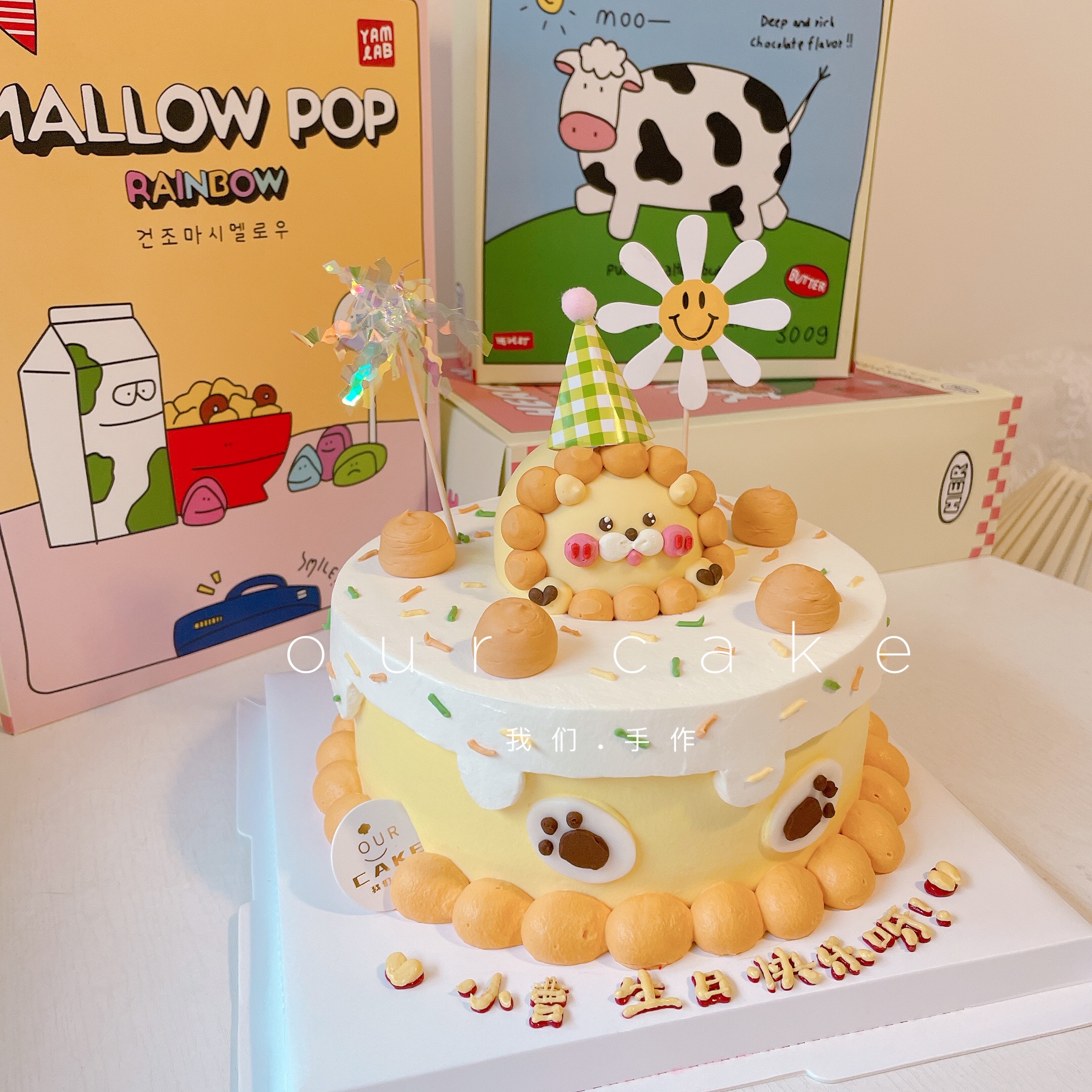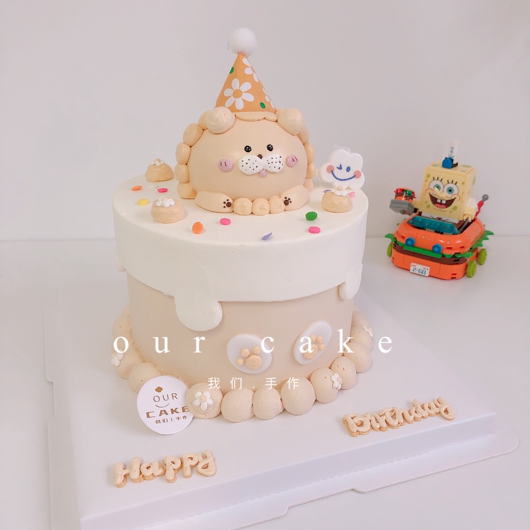 黄橙色立体小狮子蛋糕--低糖处理无添加