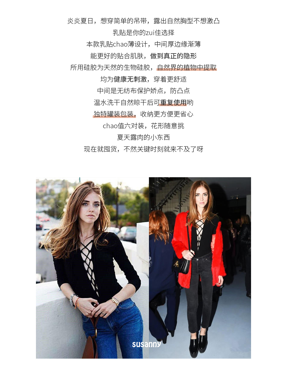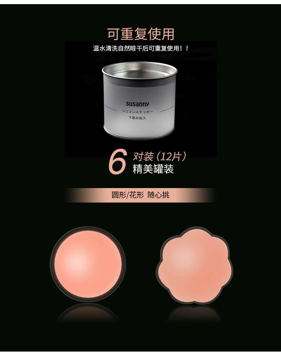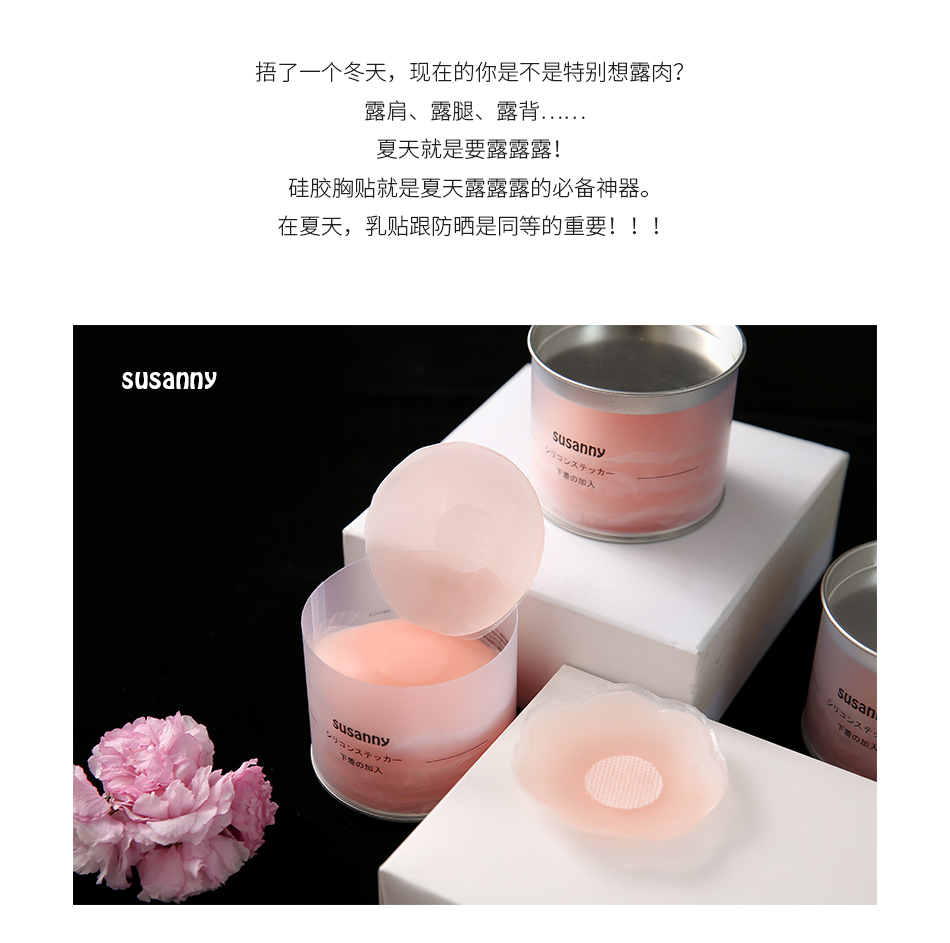 susanny 胸贴女婚纱用防凸点乳头贴吊带用隐形超薄款夏季硅胶乳贴 6对/盒