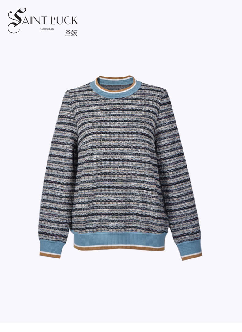 SAINT L’UCK/圣媛女装 时尚休闲罗纹领彩条针织套头衫SA320A01
