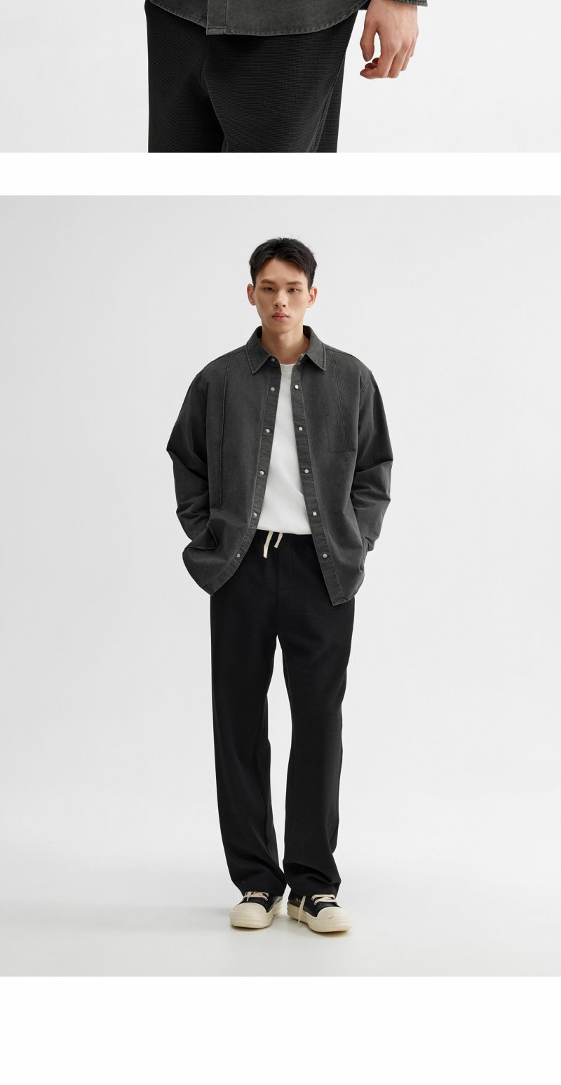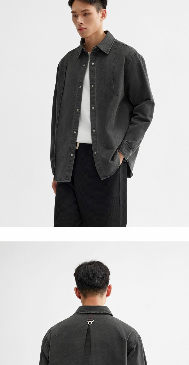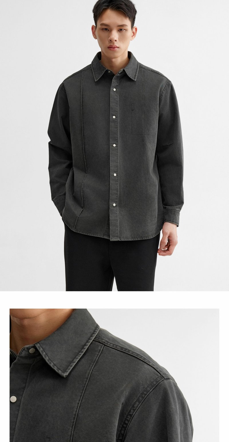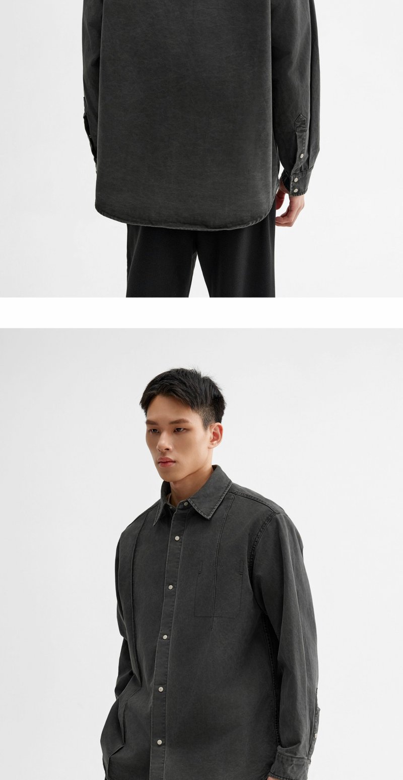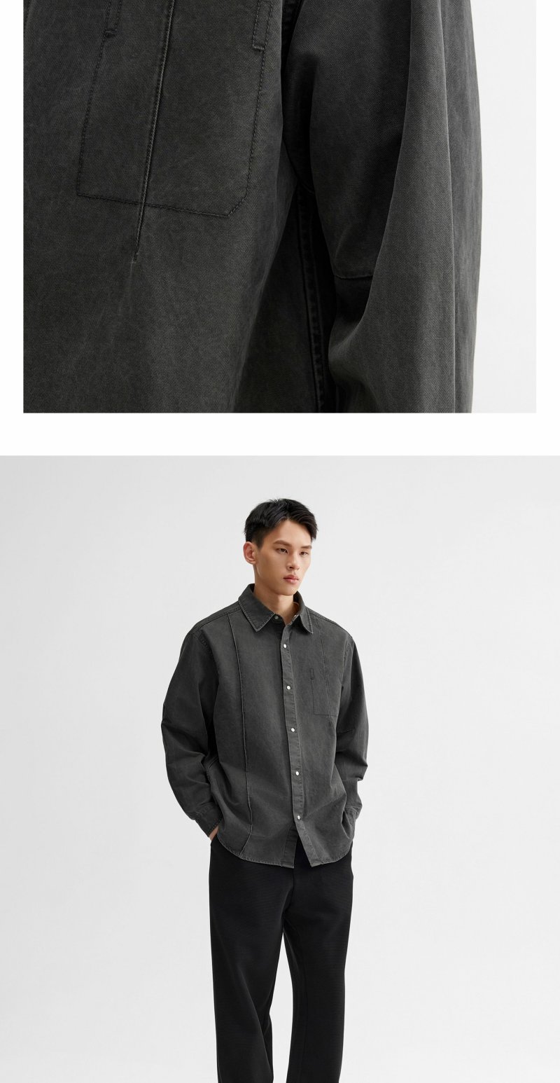 CHINISM折扣季 牙签褶宽松休闲长袖衬衫男春季纹理水洗男士衬衣