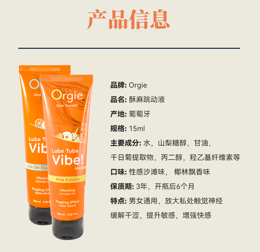 葡萄牙原装Orgie 酥麻跳动快感润滑液100ml