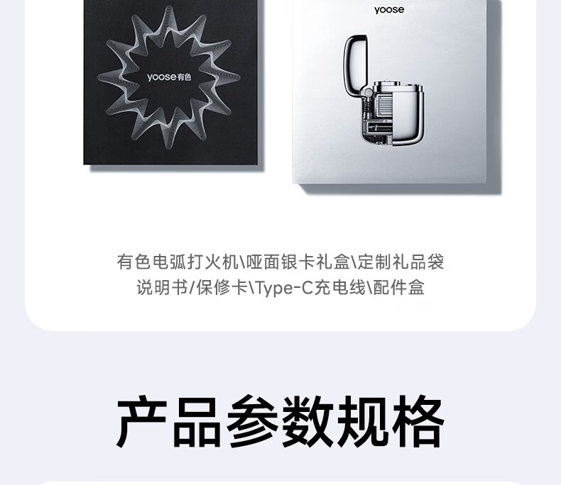 有色(yoose)充电打火机电子脉冲防风双电弧 送男友女友生日礼物 父亲节礼物