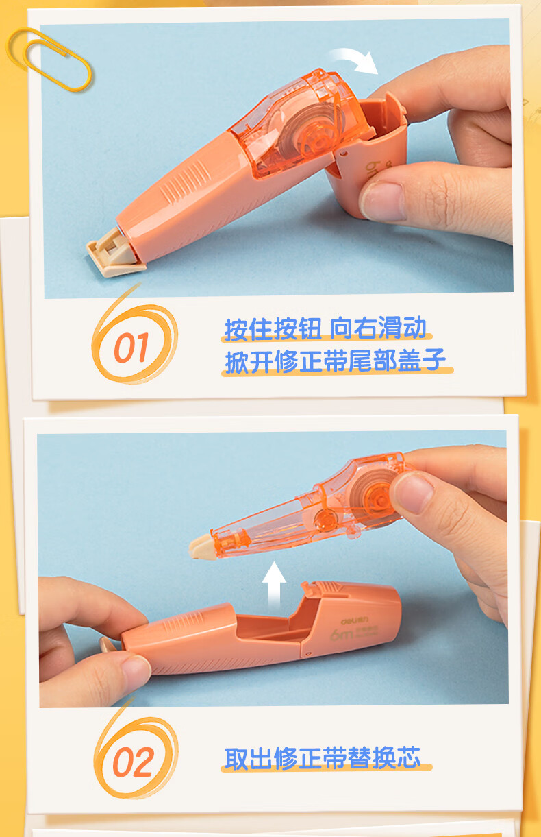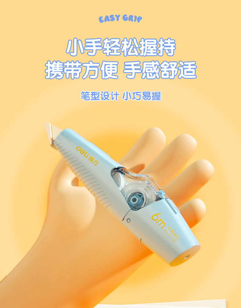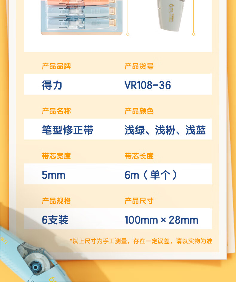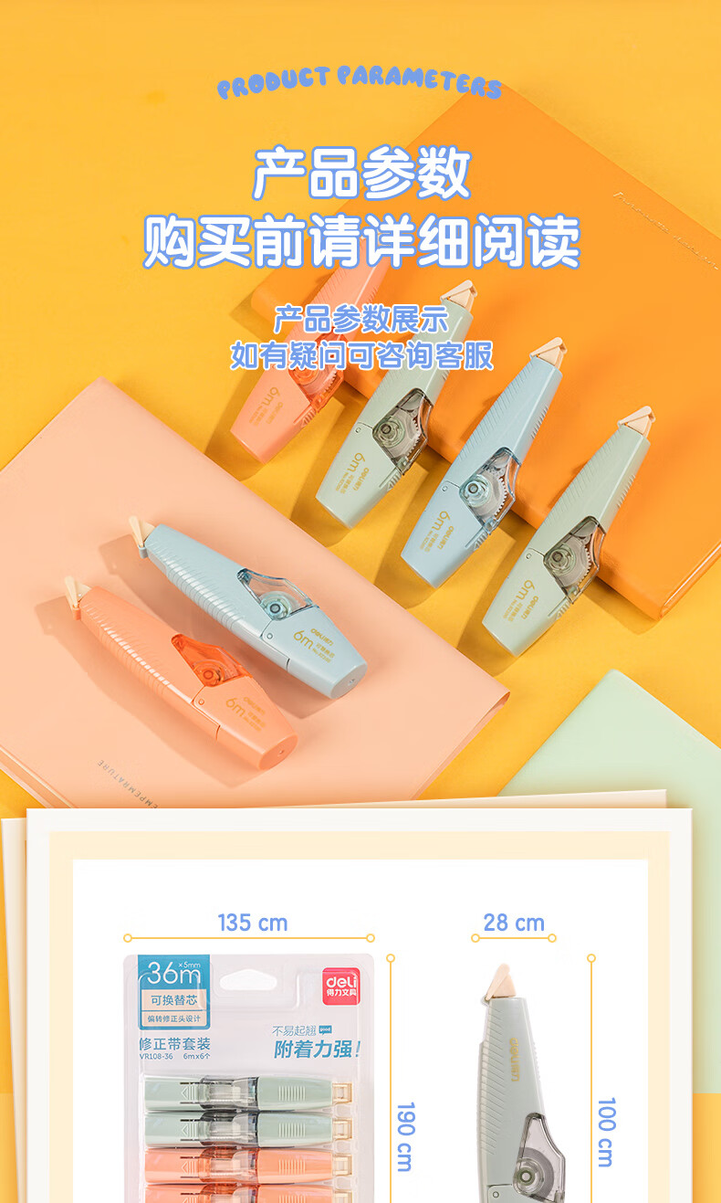 得力(deli)36m笔型修正带替芯 大容量可换替芯 学生开学文具用品涂改带改正带 6只装 100030624013