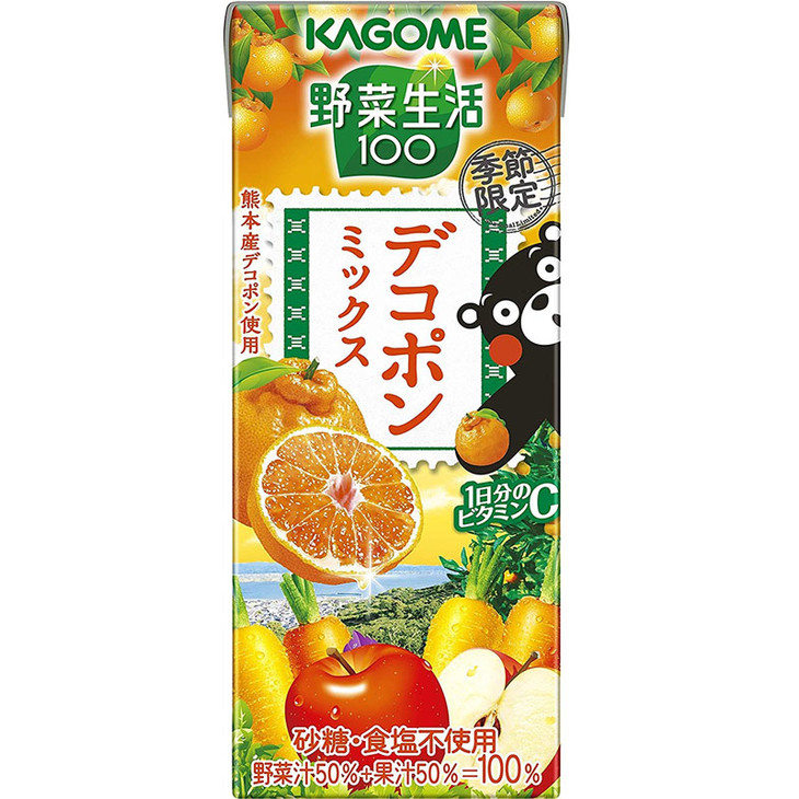 【5瓶】日本 可果美Kagome 野菜生活100系列野菜汁 低卡健康美味果汁 熊本熊柑橘味 195ml
