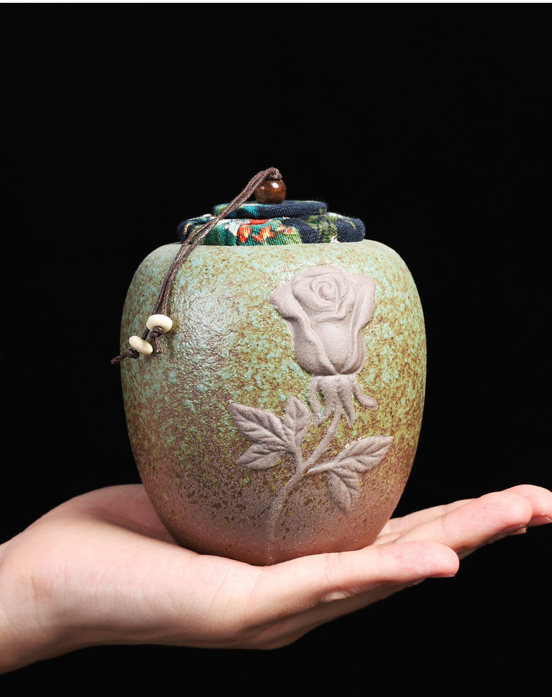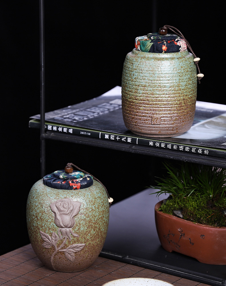装茶叶罐复古粗陶密封存茶罐小号储物罐普洱醒茶罐茶仓家用茶叶桶