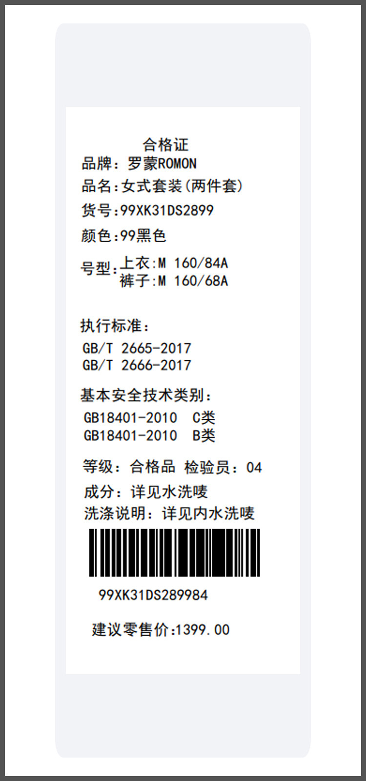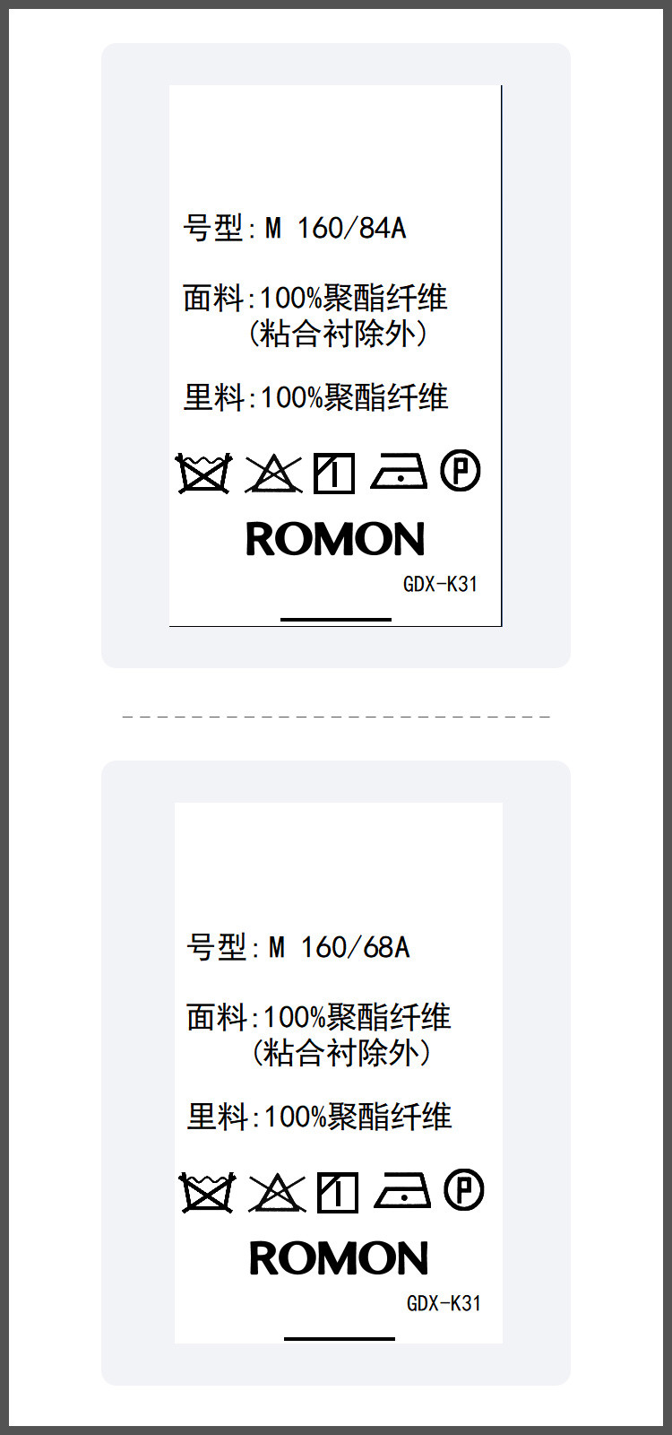 面料:100%聚酯纤维 (粘合衬除外) 里料:100%聚酯纤维