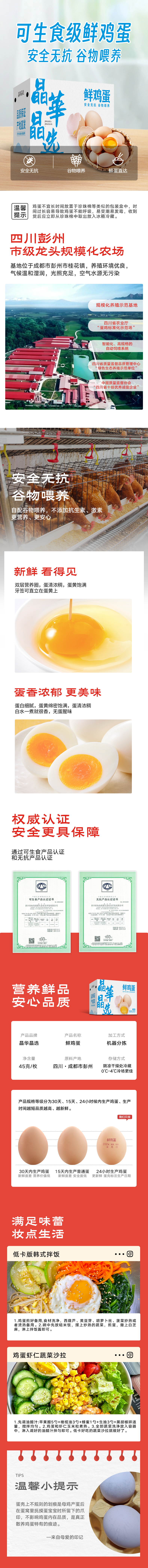 【四川帮扶】晶华·晶选 鲜鸡蛋30枚(可生食级)