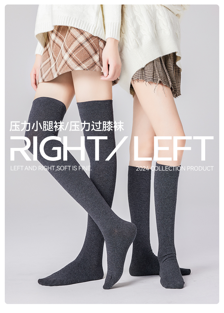 左分之右春夏款微压显瘦10A抗菌压力小腿袜黑色漫画腿jk日系长筒